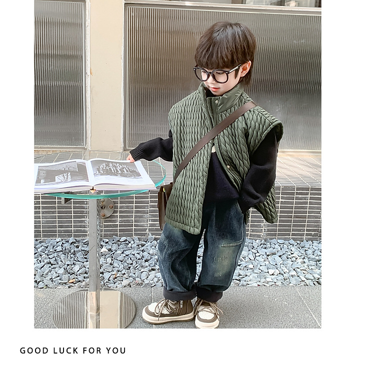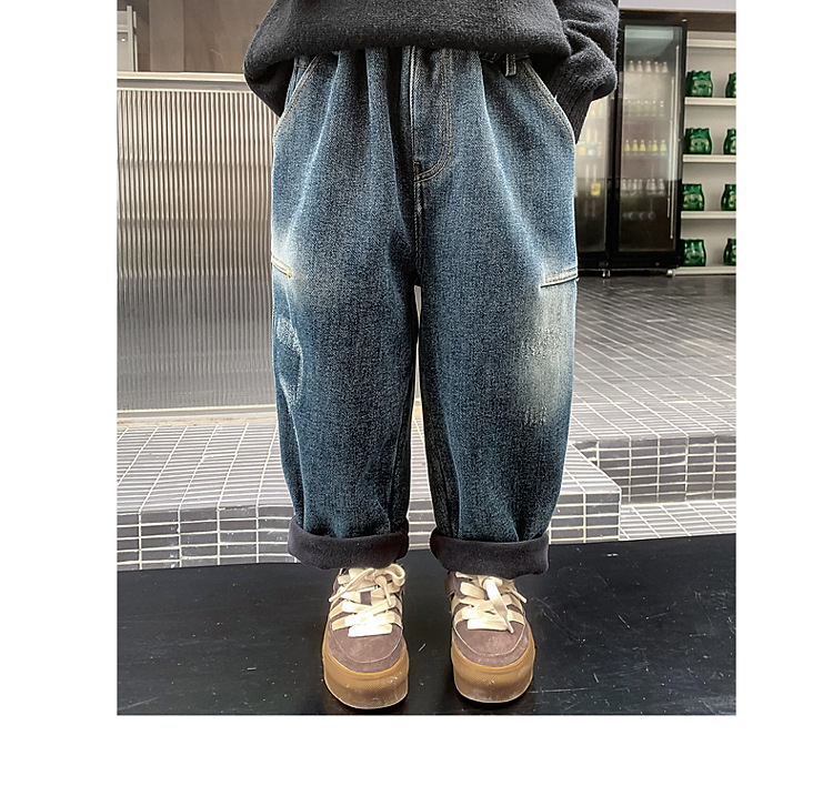 동화 속의 기억에 남는 큰 아이들을 위한 남아용 기모 데님 팬츠, 어린이 가을 겨울용 두꺼운 일체형 기모 베이비 데님 팬츠스토어 가기