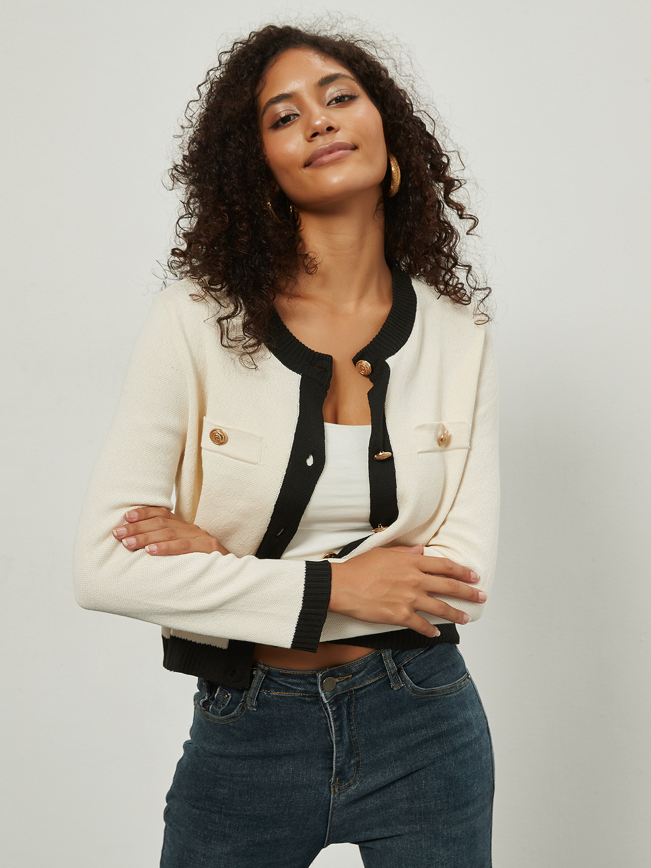 도매 AliExpress 국경 여성 의류 도매 기질 사교계 xiaoxiang 바람 컬러 싱글 브레스트 반팔 니트 재킷 가을스토어 가기