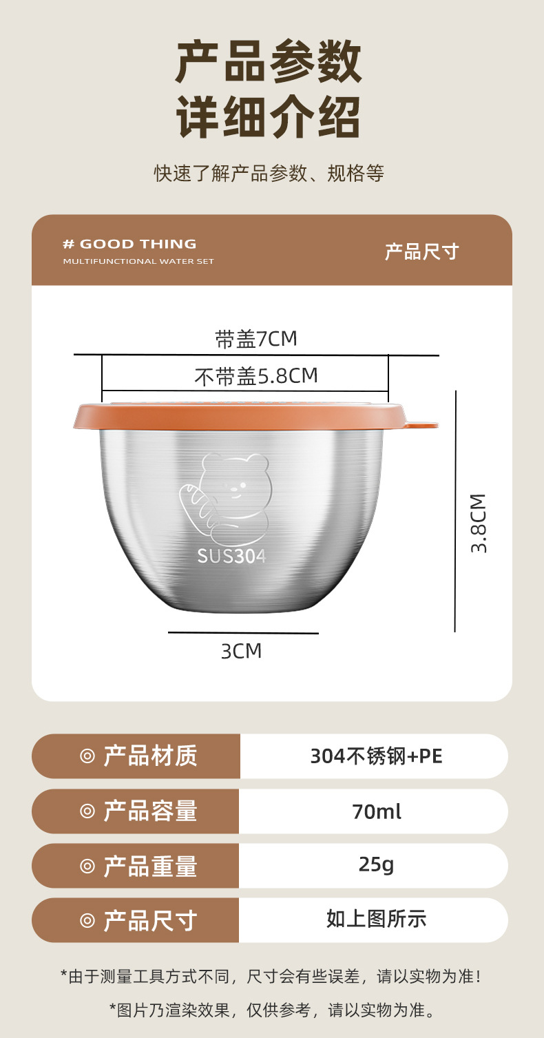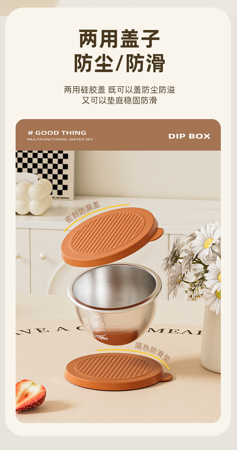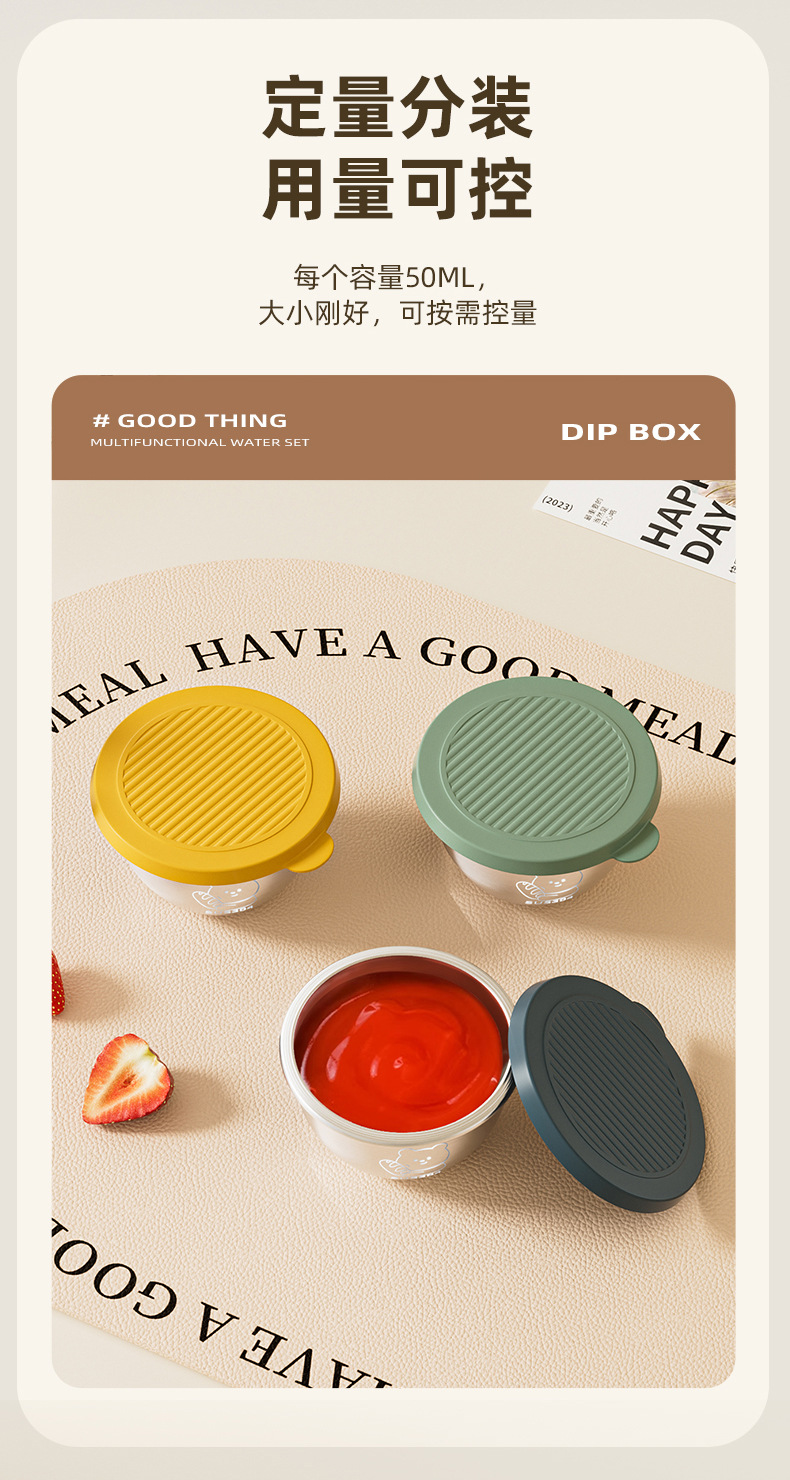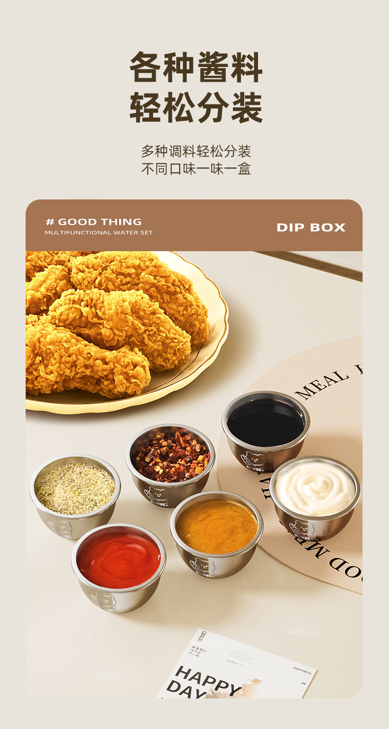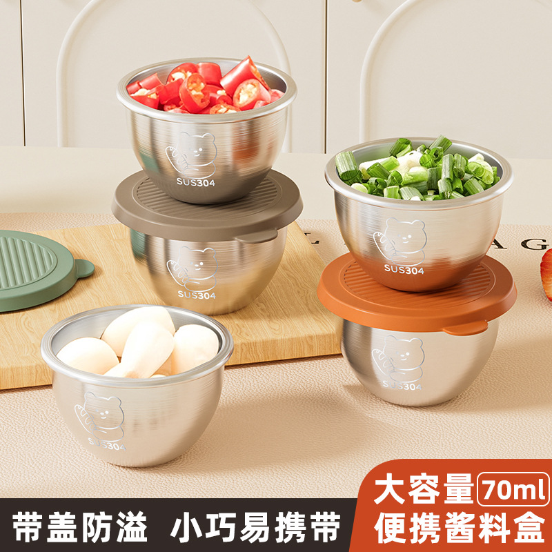 뚜껑이 있는 304 스테인레스 스틸 디핑 박스, 튀긴 닭고기 밀봉 소스 컵, 샐러드 토마토 소스 조미료 보존 용기, 크로스보더스토어 가기