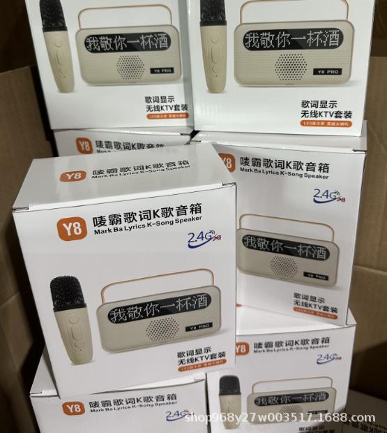 가사 디스플레이가 포함된 국경 간 새로운 Y8 블루투스 노래방 스피커 휴대용 무선 마이크 노래방 통합 오디오스토어 가기