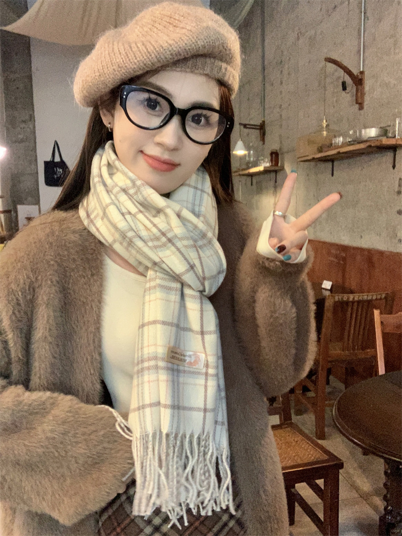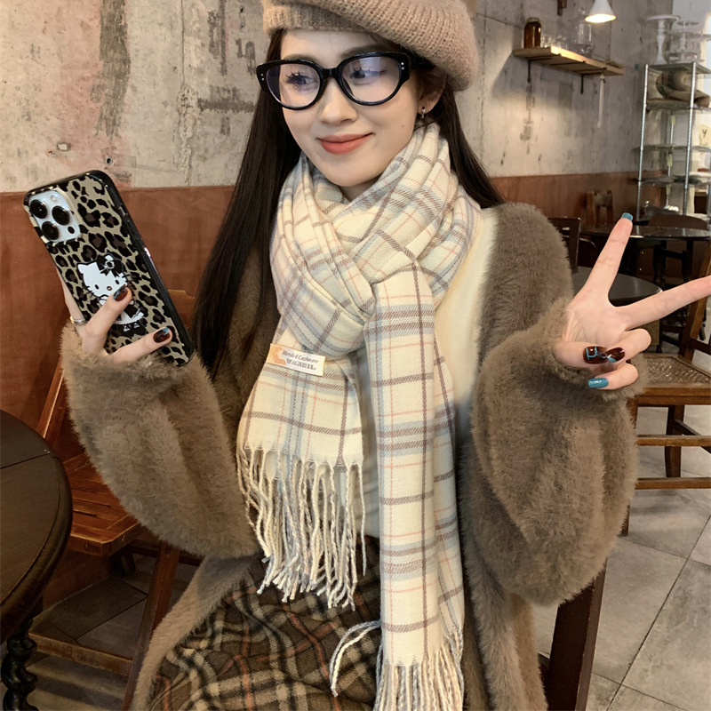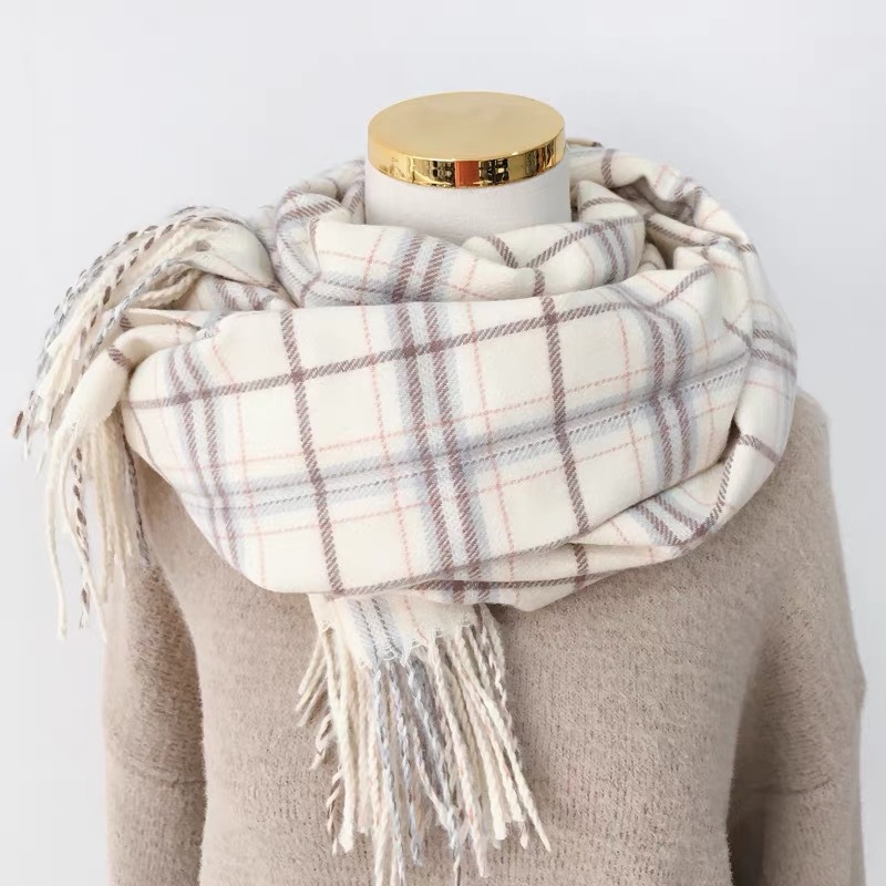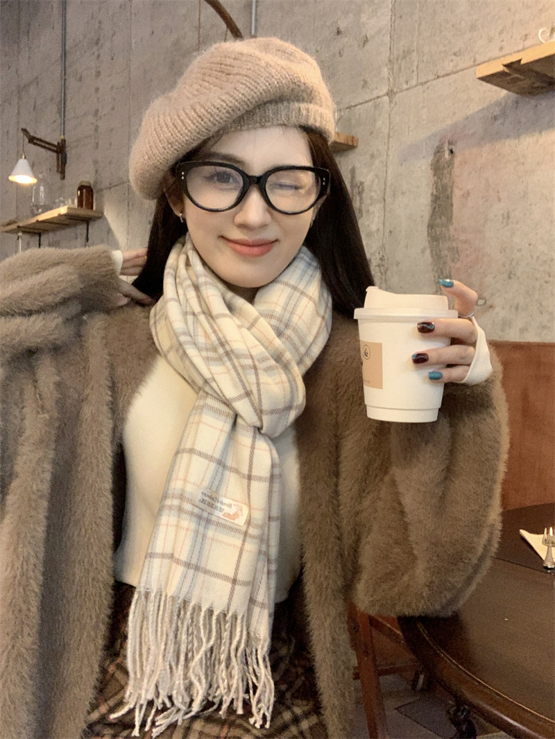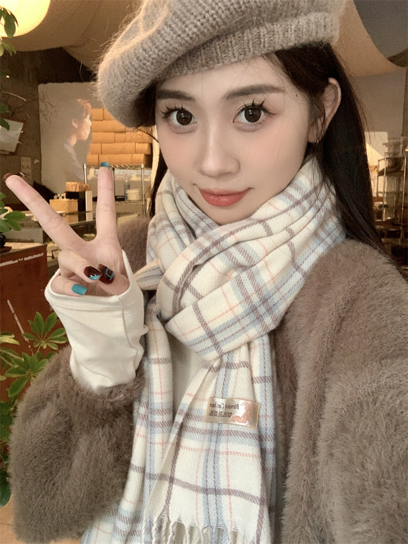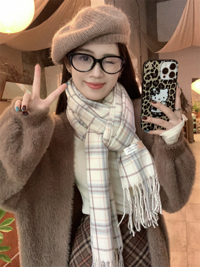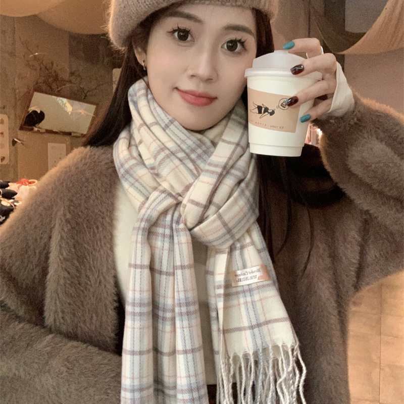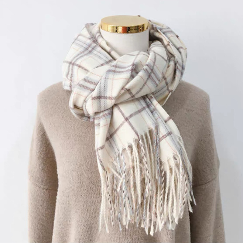 스카프 여성의 겨울 2024 새로운 하이 엔드 감각 격자 무늬 목도리 이중 목적 양면 두꺼운 술 스카프 공장 아울렛스토어 가기