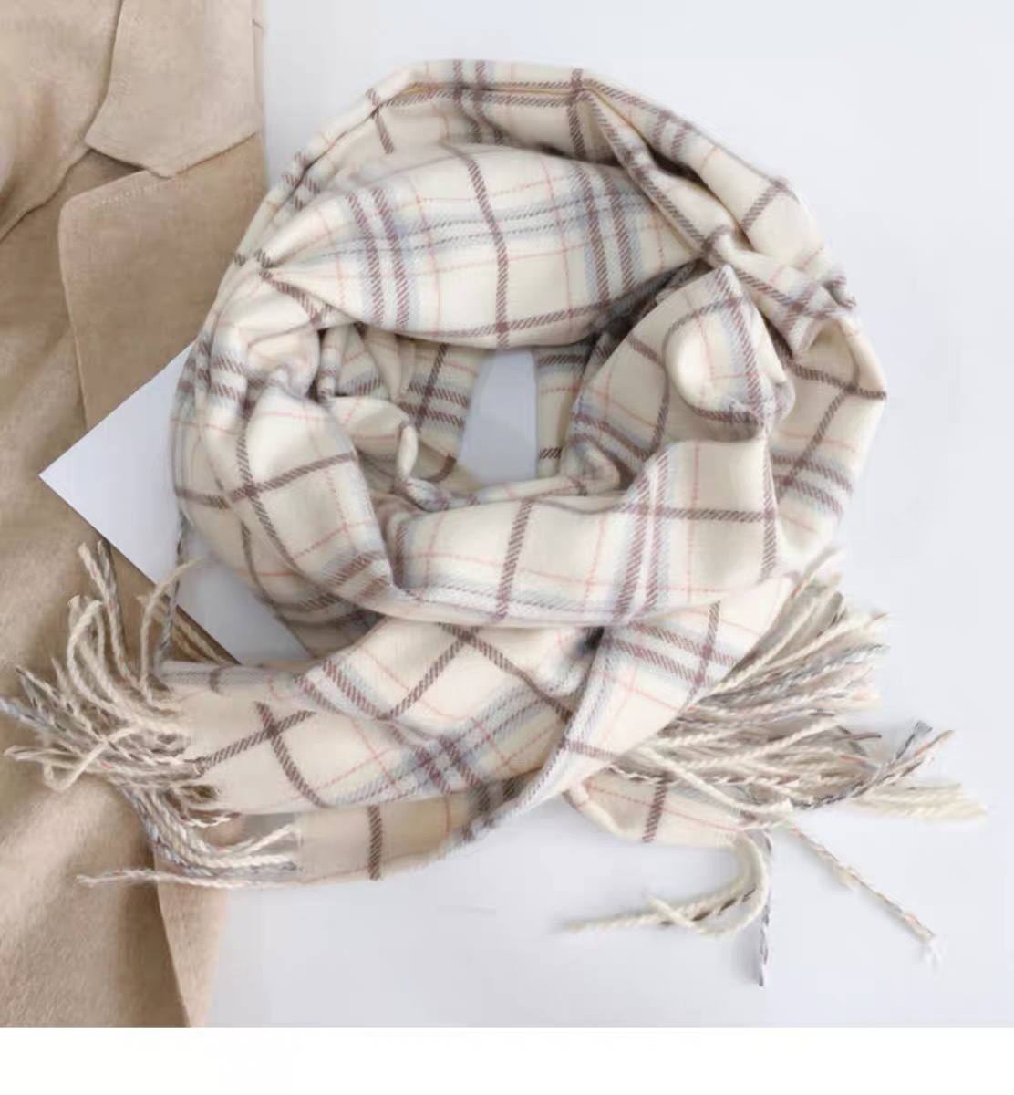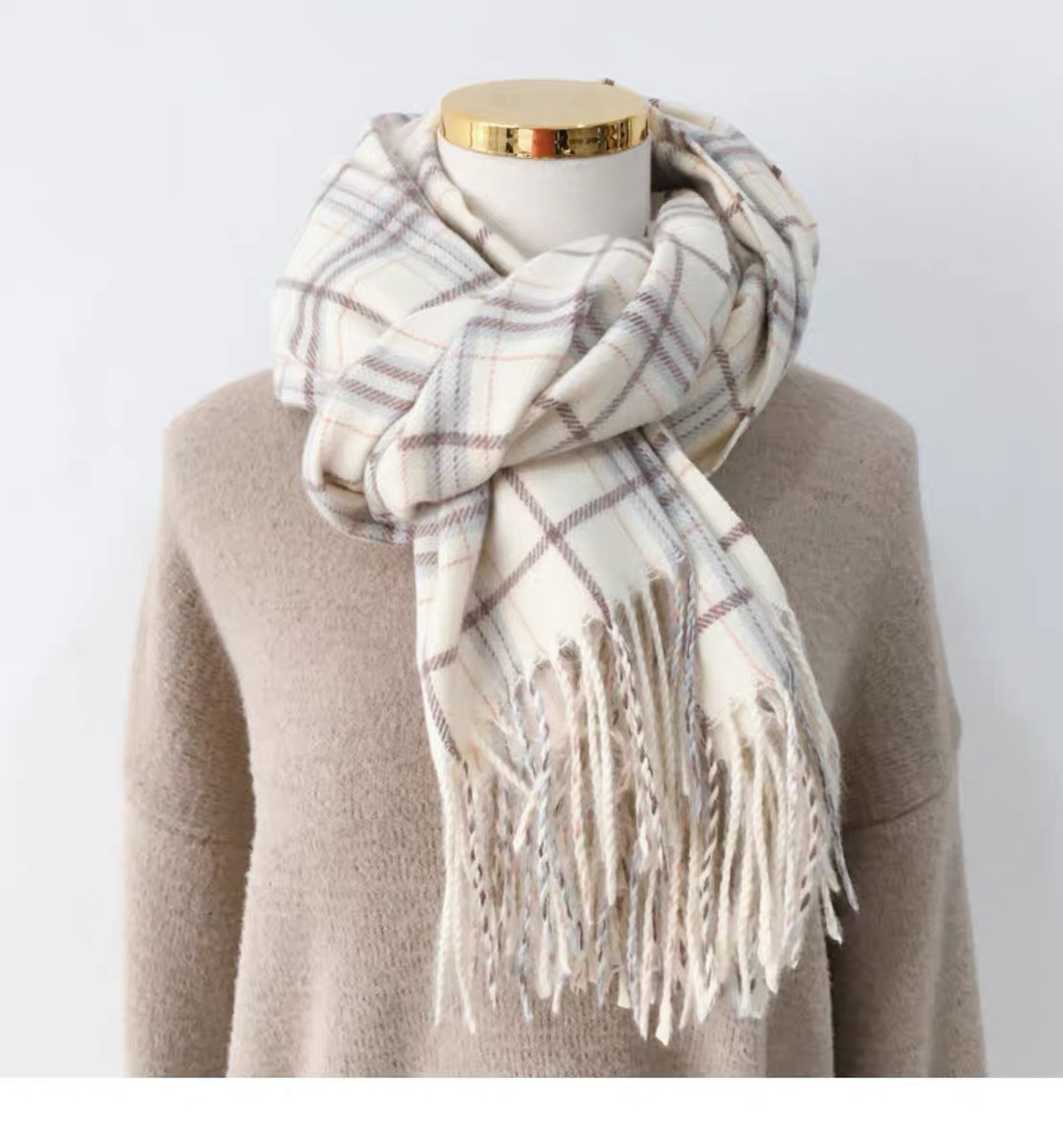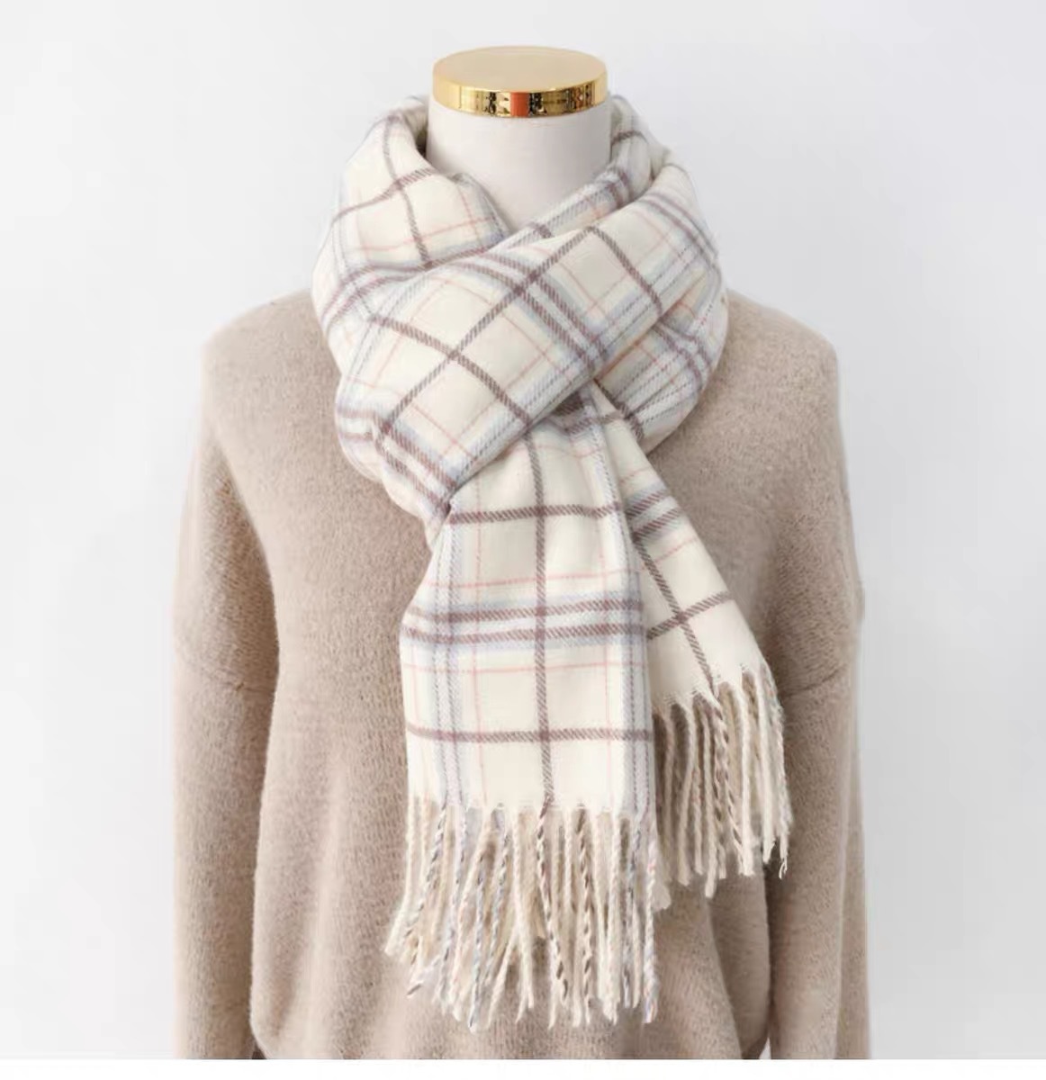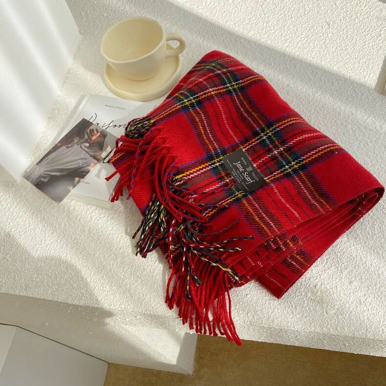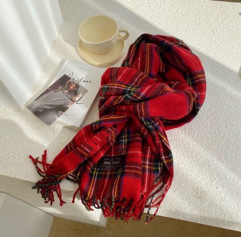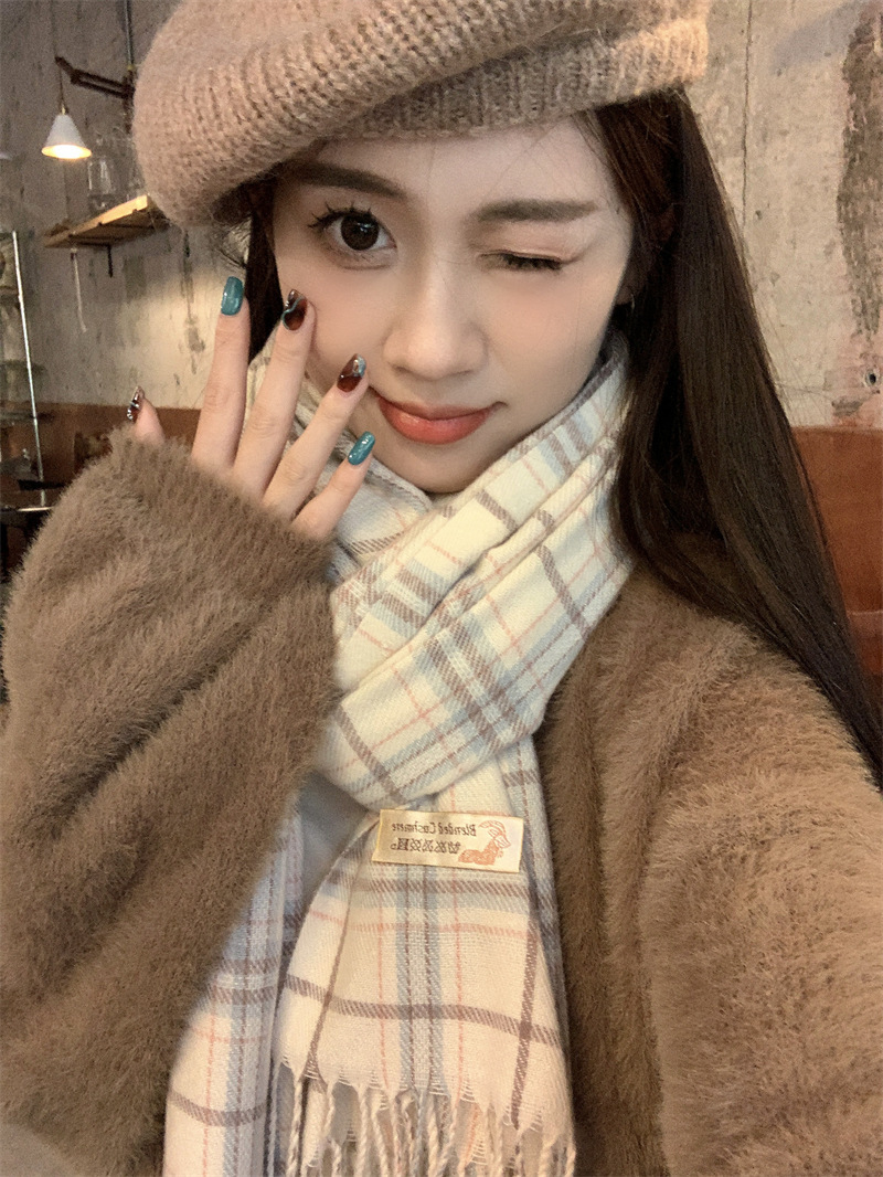 스카프 여성의 겨울 2024 새로운 하이 엔드 감각 격자 무늬 목도리 이중 목적 양면 두꺼운 술 스카프 공장 아울렛스토어 가기