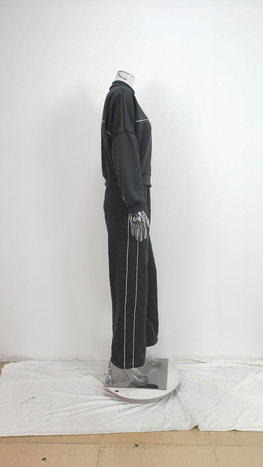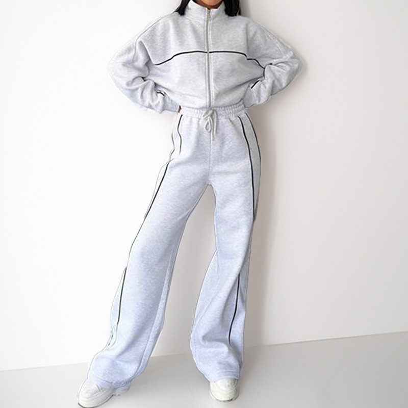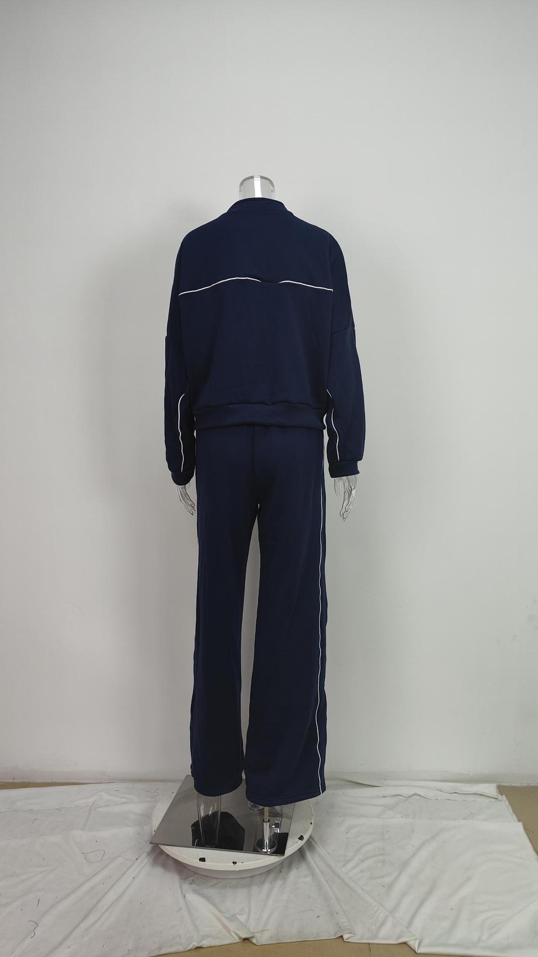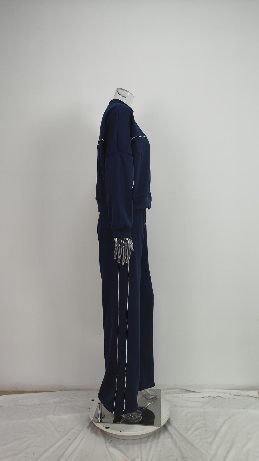 국경 2024 가을과 겨울 새로운 유럽과 미국 아마존 여성 패션 루즈 탑 하이 허리 스트레이트 바지 패션 세트
