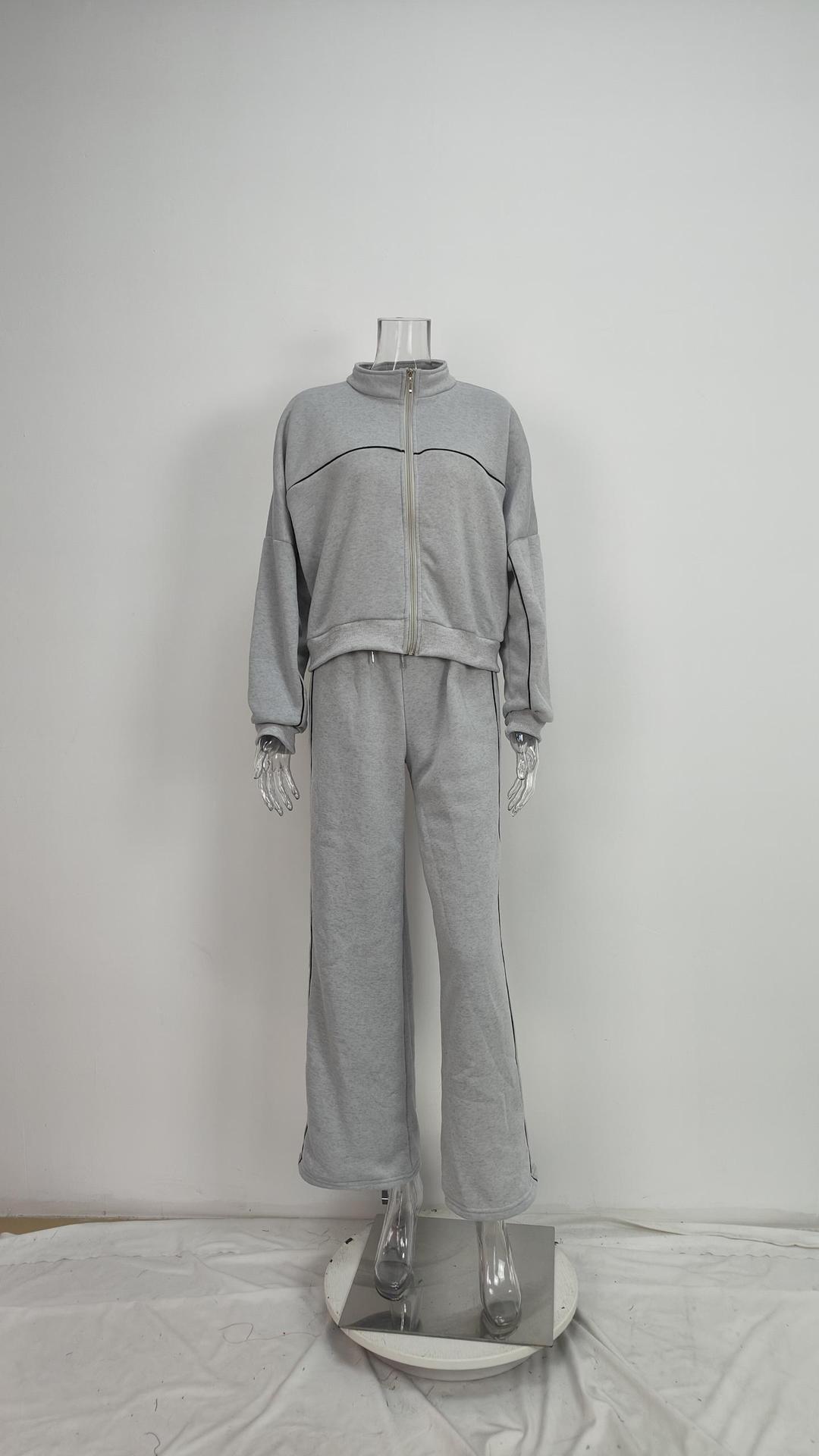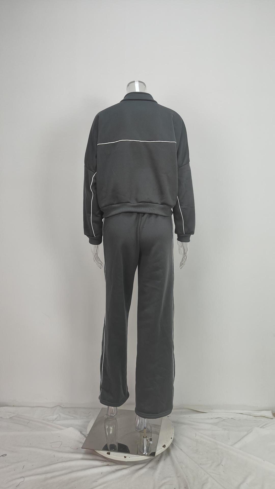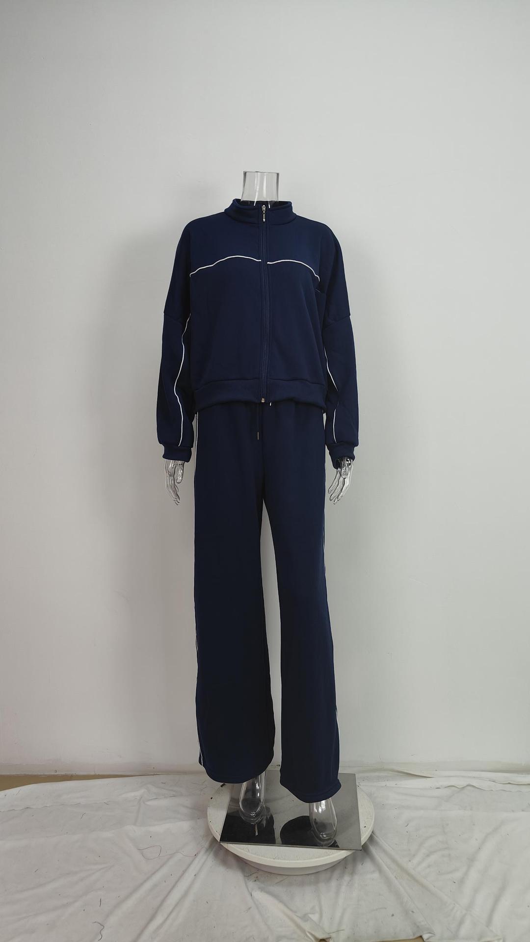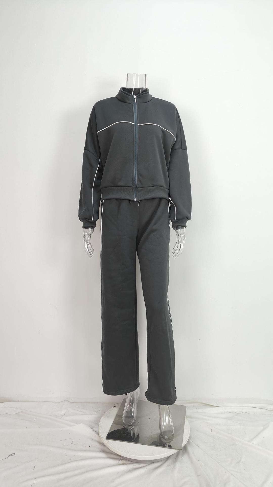 국경 2024 가을과 겨울 새로운 유럽과 미국 아마존 여성 패션 루즈 탑 하이 허리 스트레이트 바지 패션 세트