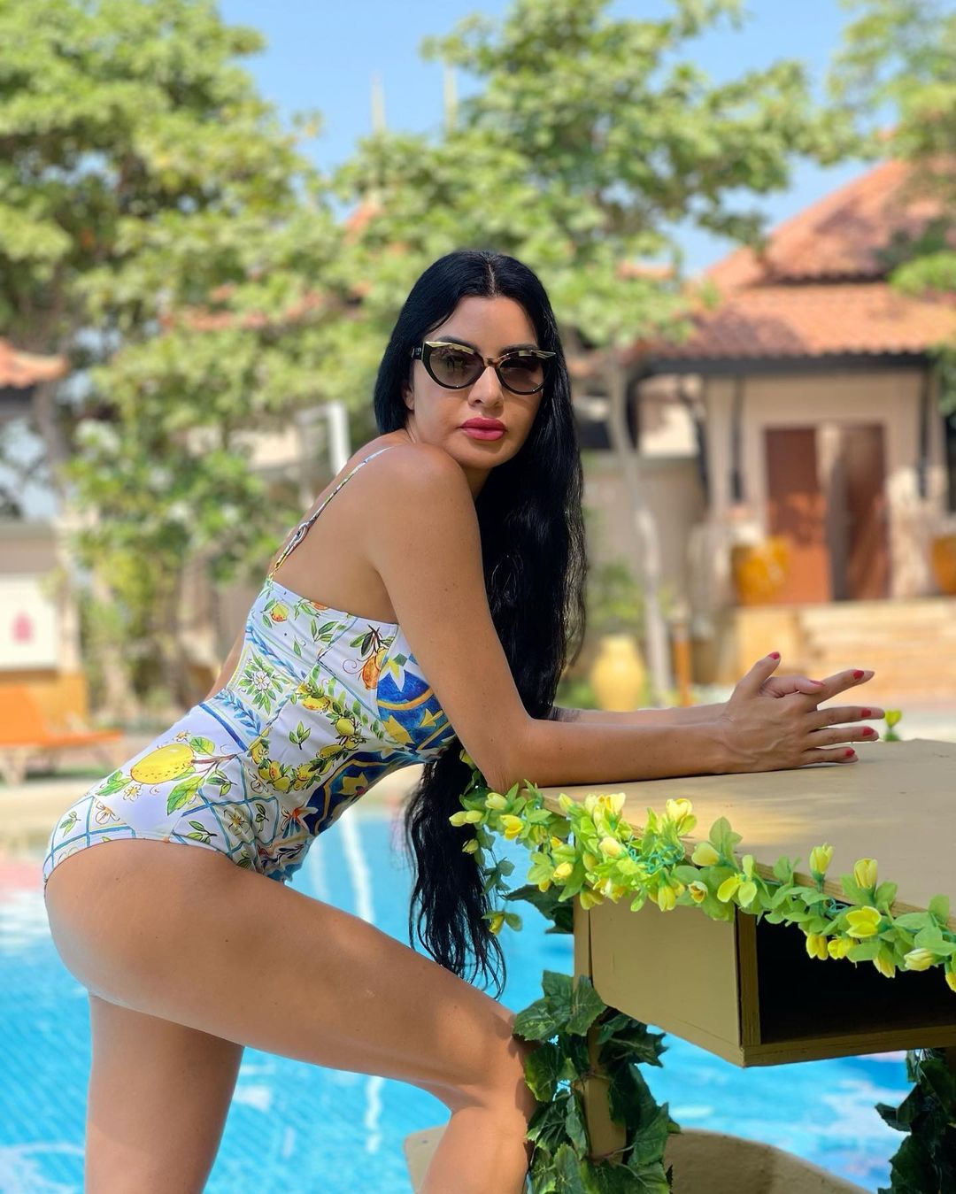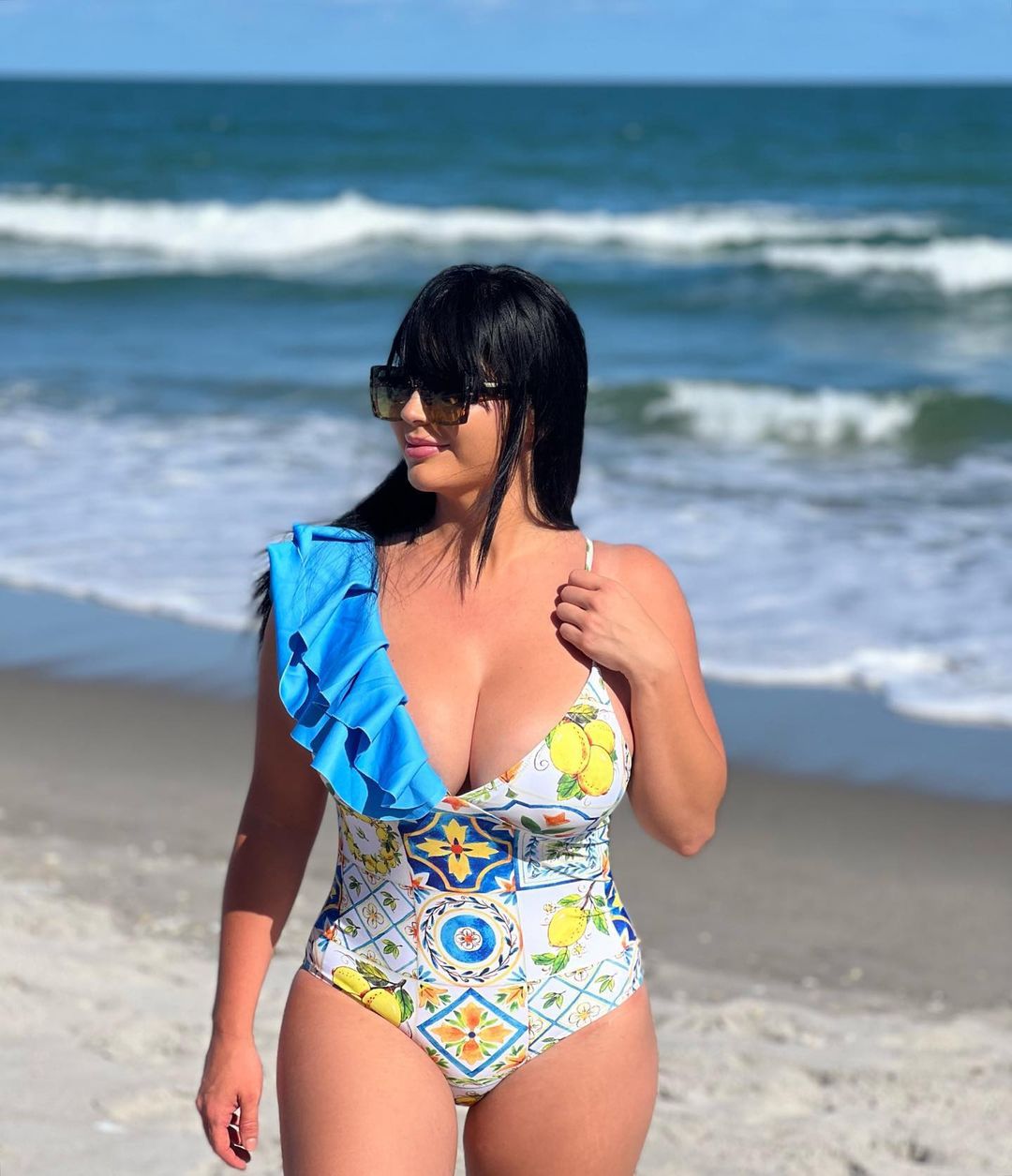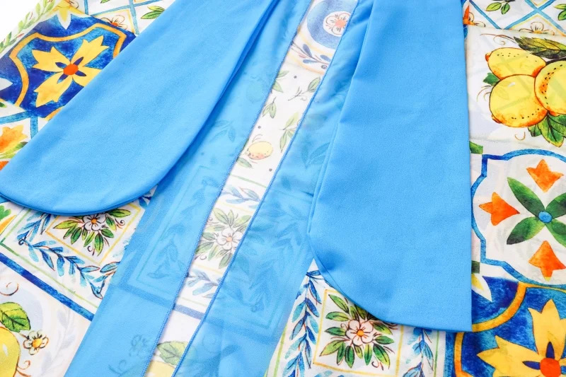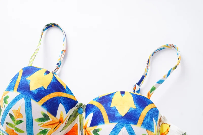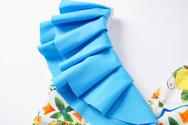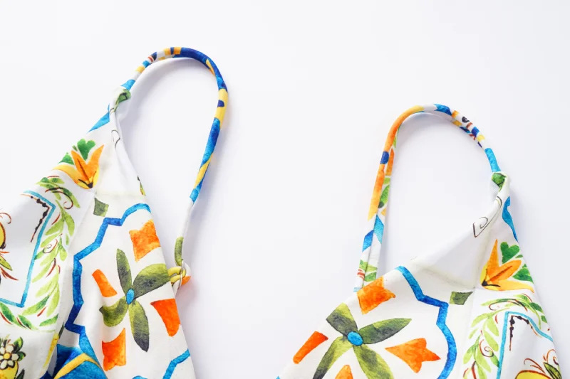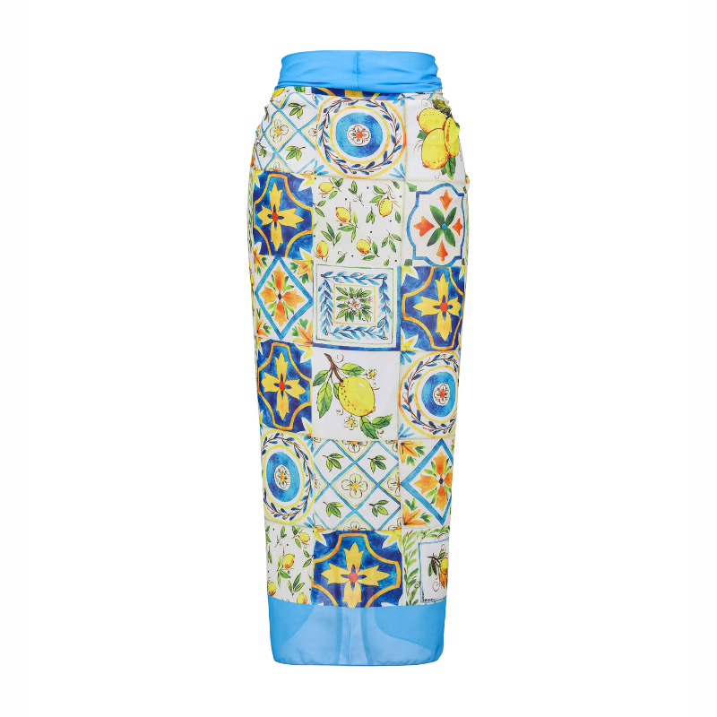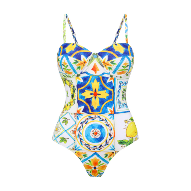 2024 유럽과 미국의 폭발 수영복 여성용 V-넥 러플 스커트 레몬 프린트 점프 수트 포장 스커트 커버 2383