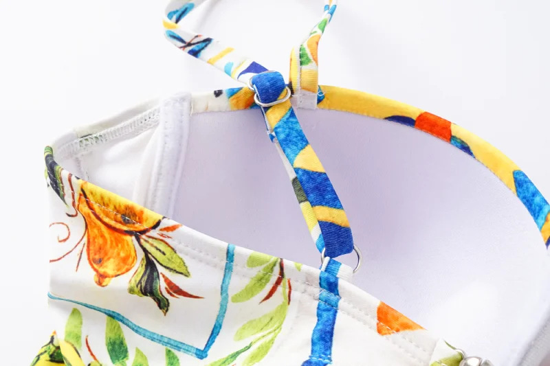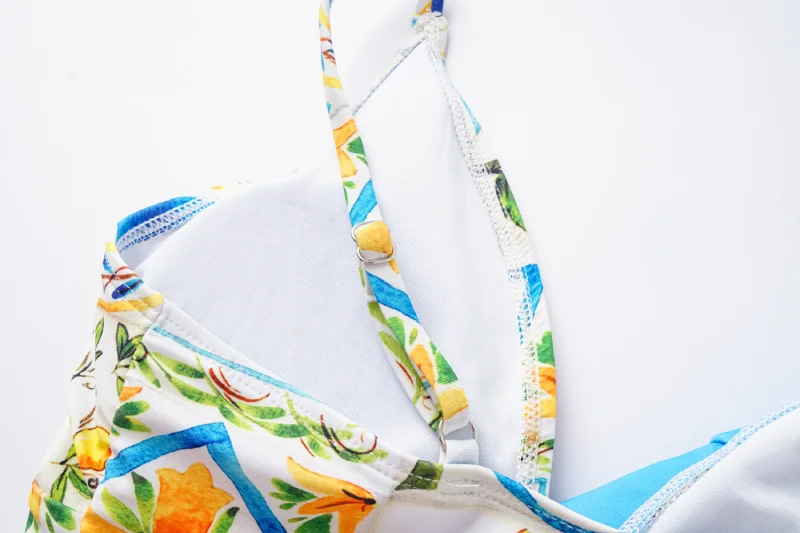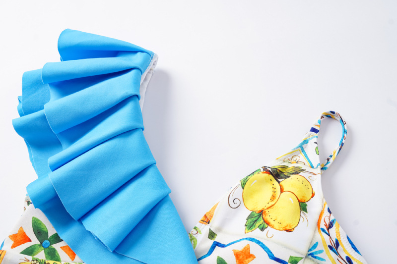 2024 유럽과 미국의 폭발 수영복 여성용 V-넥 러플 스커트 레몬 프린트 점프 수트 포장 스커트 커버 2383스토어 가기