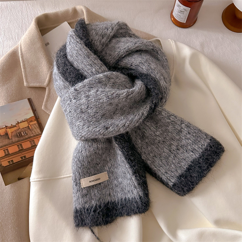쌀회색 스카프 가을과 겨울 여성 봉제 한국식 분위기 목도리 외부 이중 목적 따뜻한 목 보호