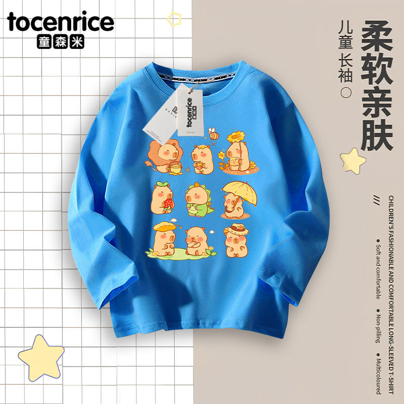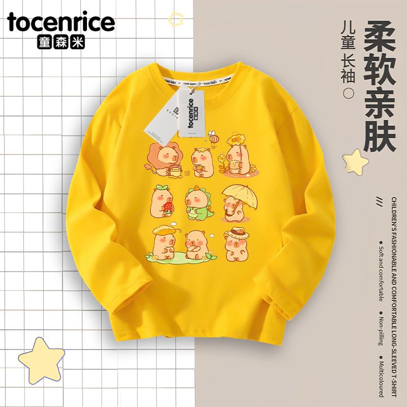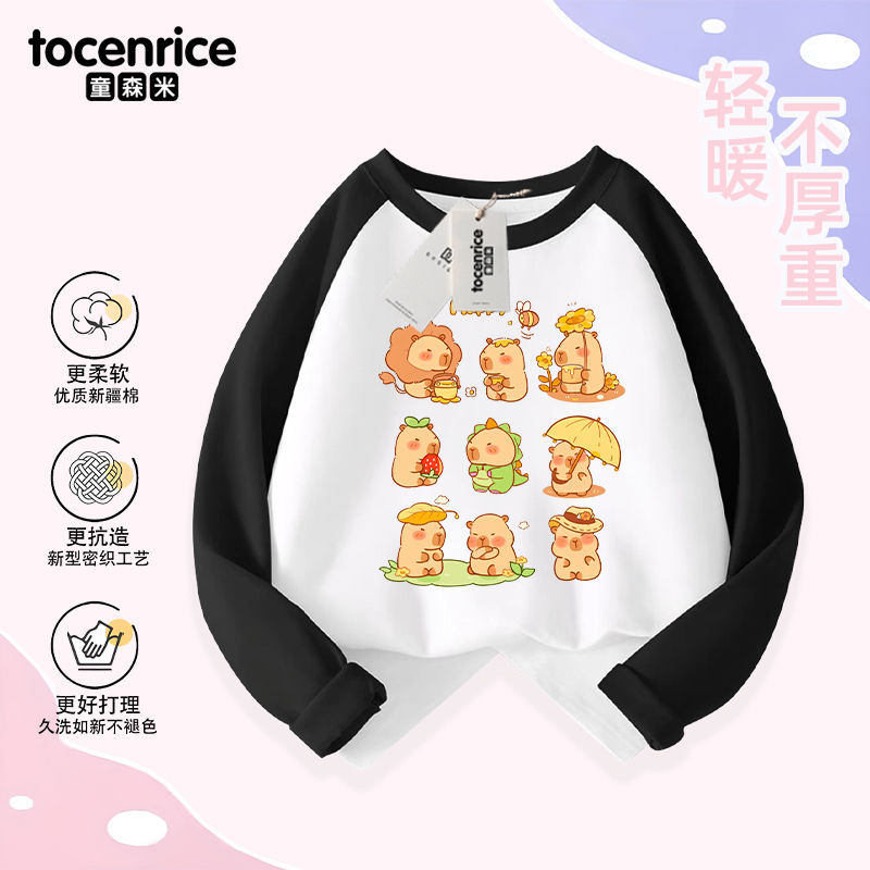 Kapi Bala capybara 인쇄 소녀 Raglan 티셔츠 긴 소매 봄과 가을 어린이 컬러 블록 탑베이스 셔츠스토어 가기
