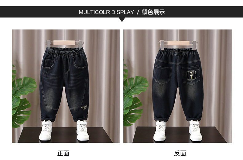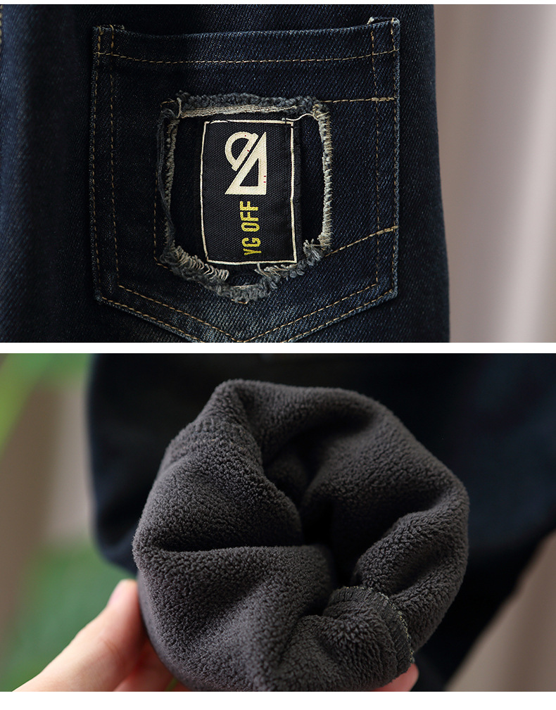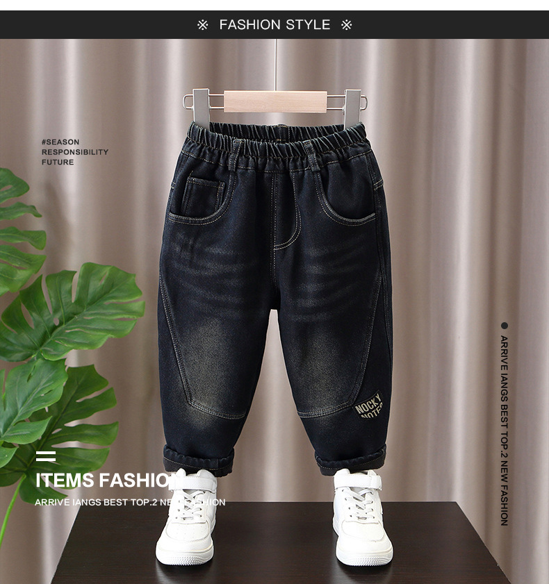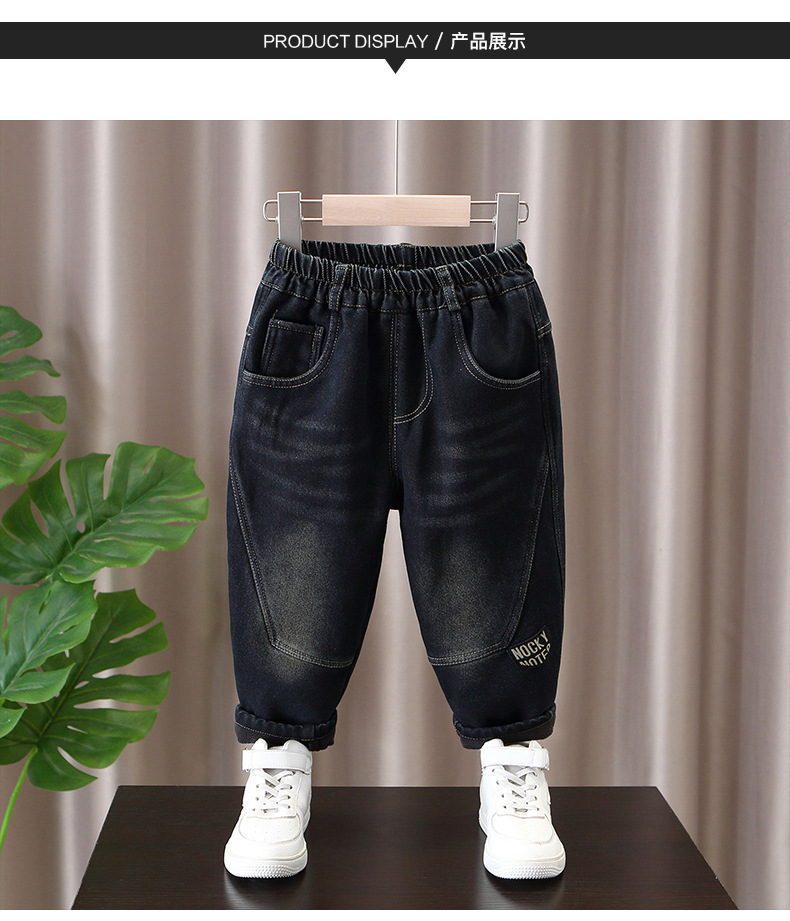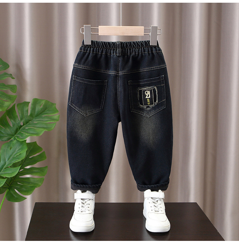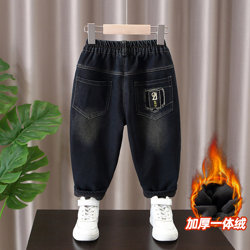 소년 기모 두꺼운 청바지 겨울 어린이 한국 바지 한 조각 벨벳 2024 가을 겨울 새 소년 바지스토어 가기