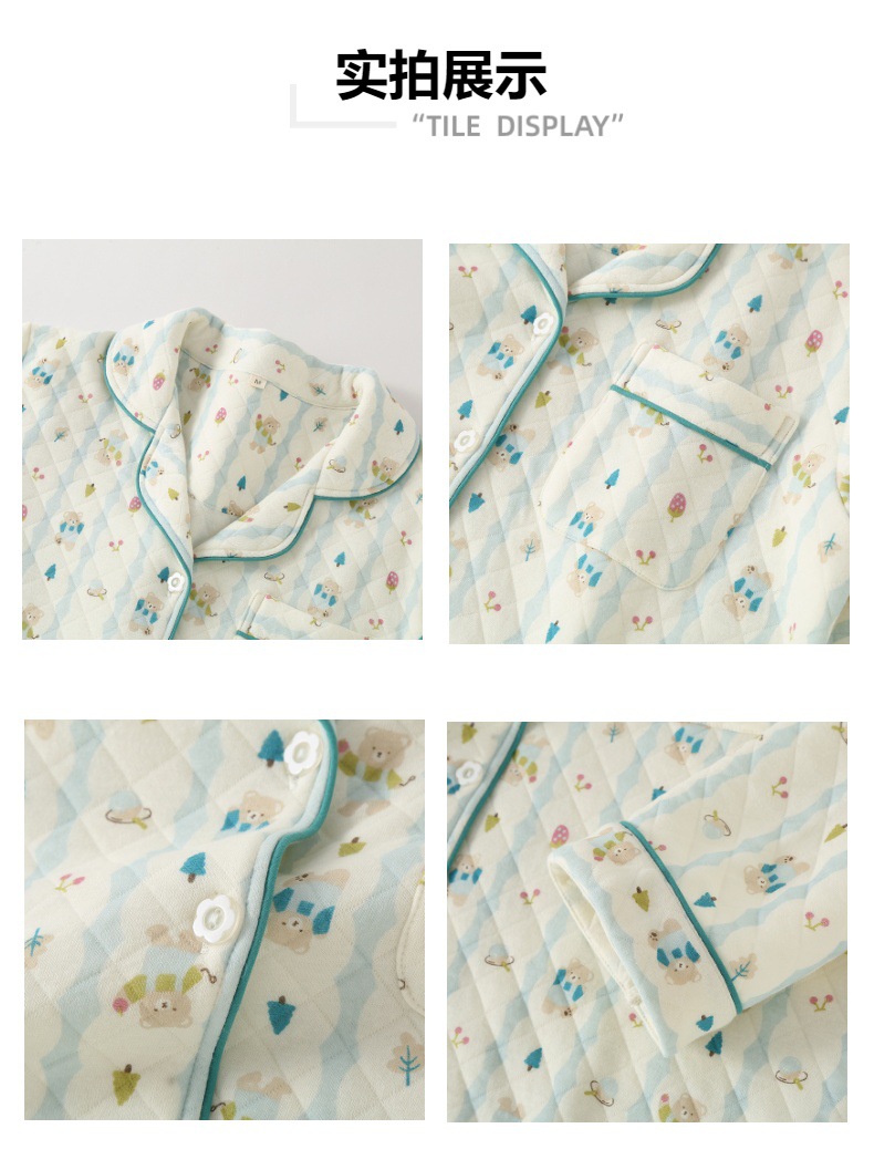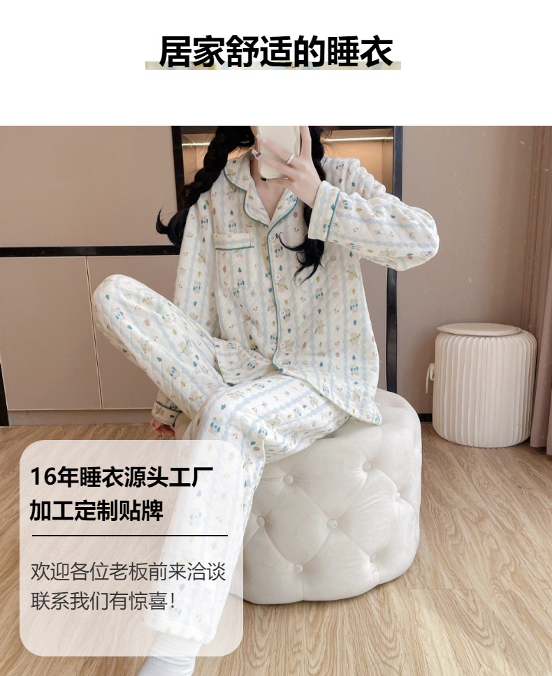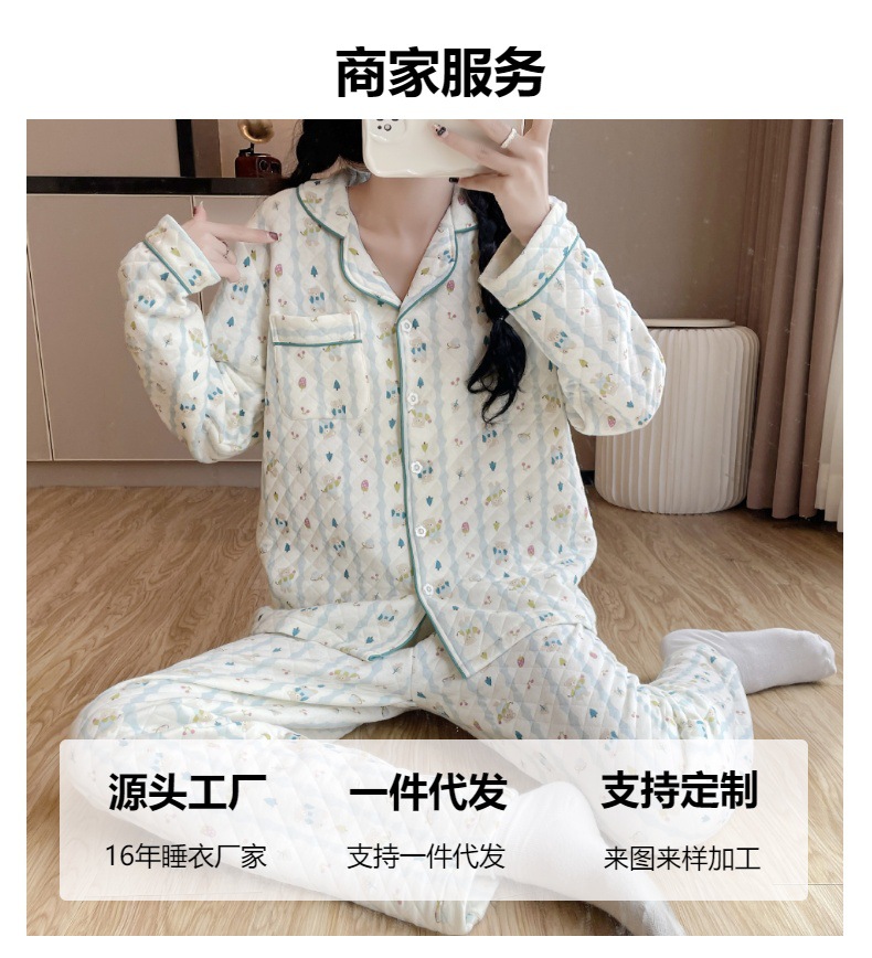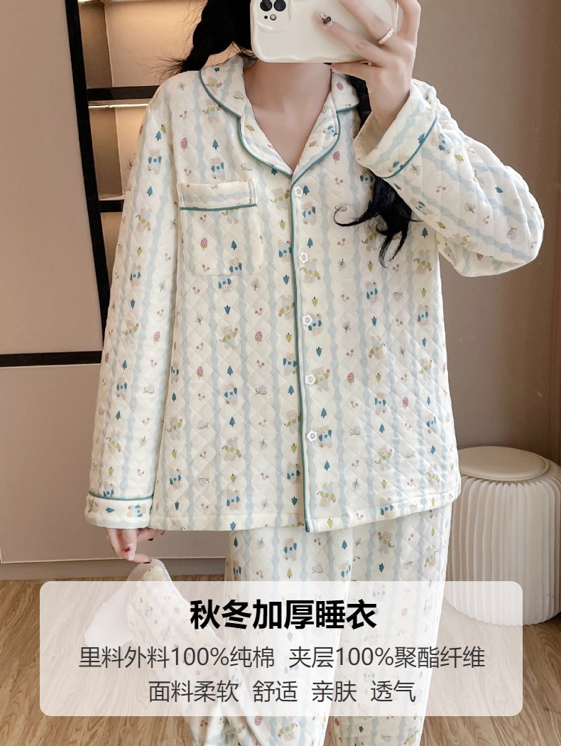 가을과 겨울 여성면 3 층 에어코튼 샌드위치 긴 소매 잠옷 면화 따뜻한 달콤한 가정 옷 세트 잠옷스토어 가기