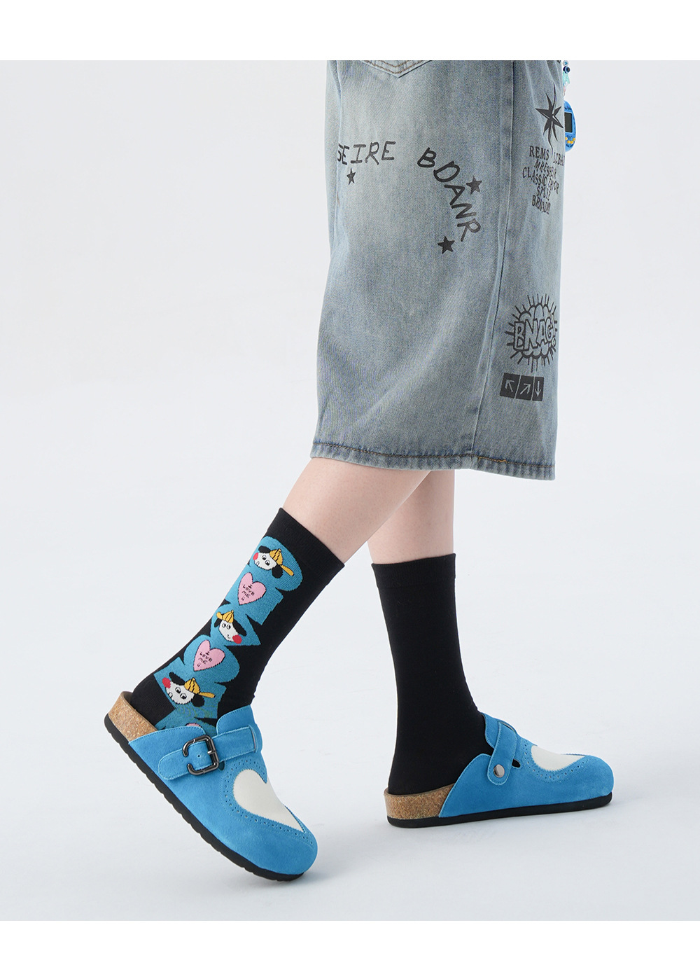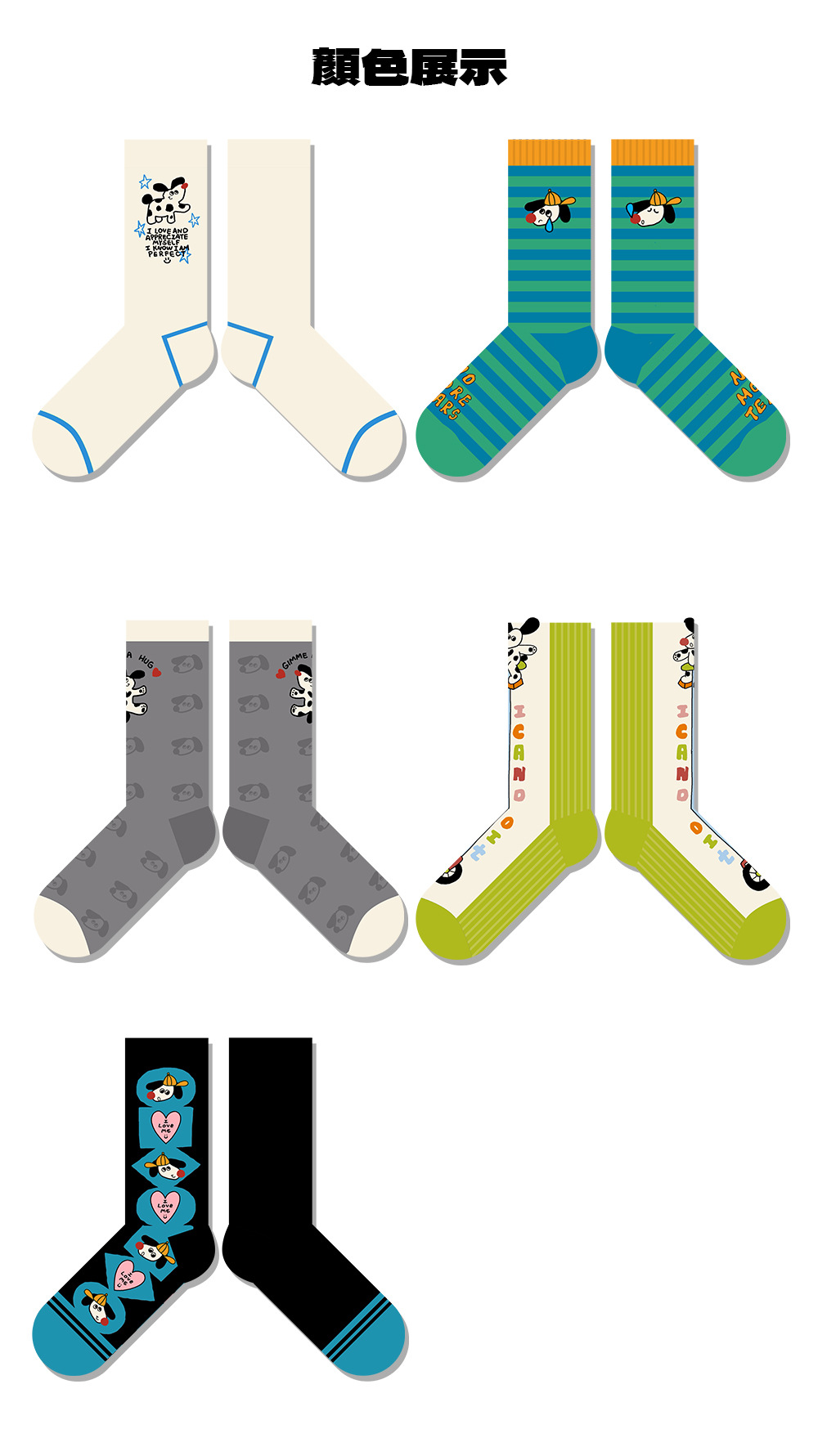 브랜드 오리지널 귀여운 만화 에너지 강아지 미드 튜브 양말 여성 패션 스트라이프 컬러 대비 커플 스트립 양말스토어 가기