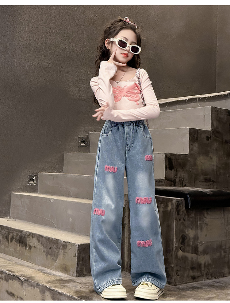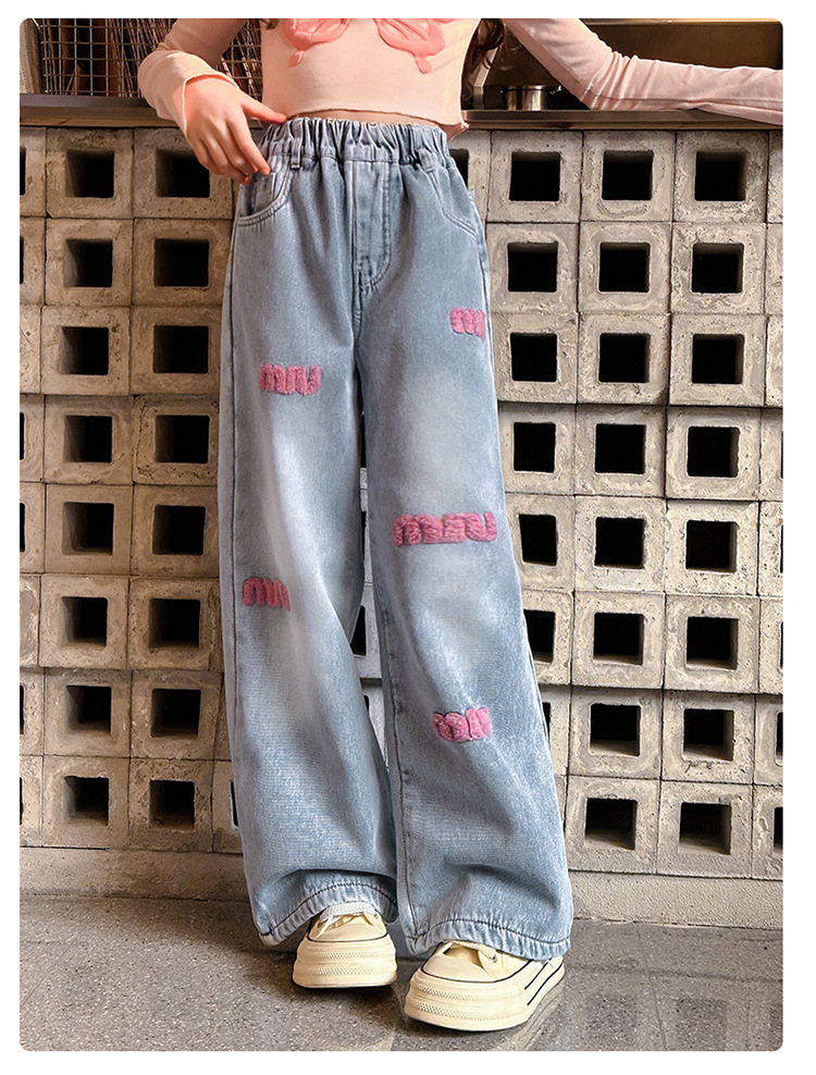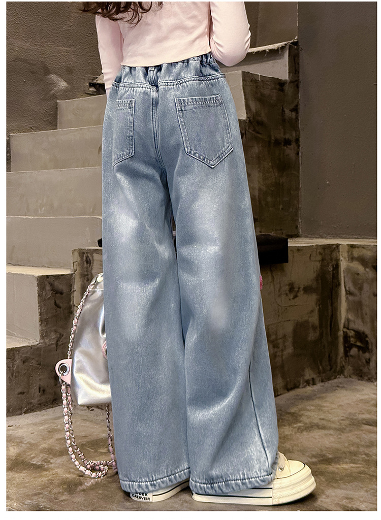 한국 아동복 여아용 기모 데님 팬츠 가을 겨울 아동 바지 2026년 신상 여아용 겨울 두꺼운 긴바지스토어 가기