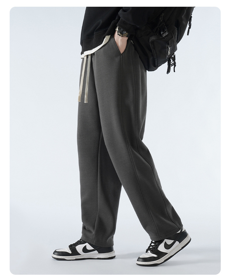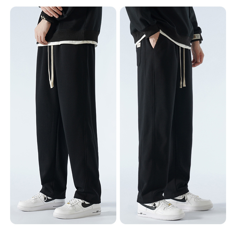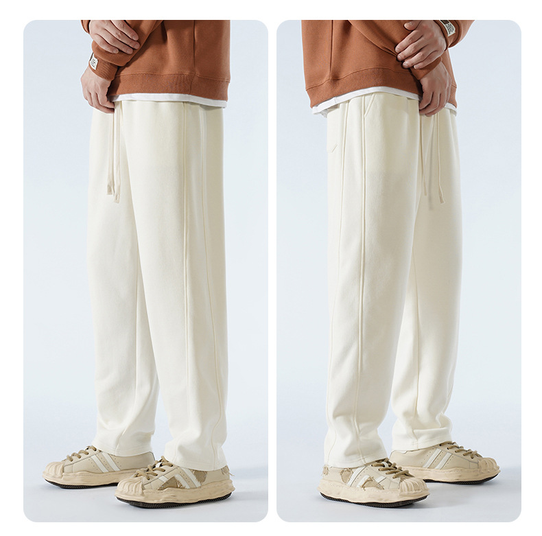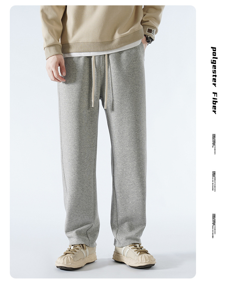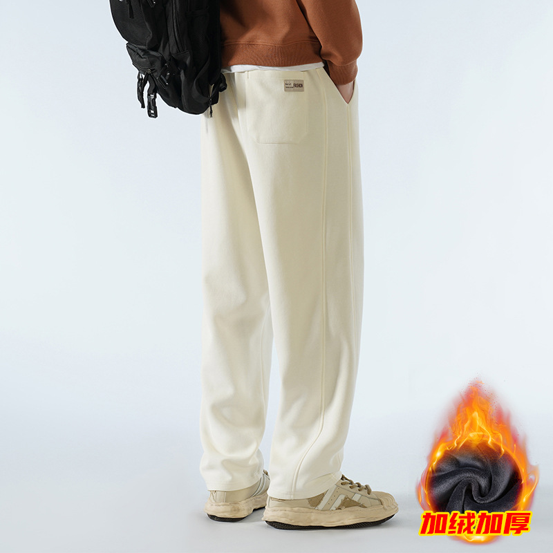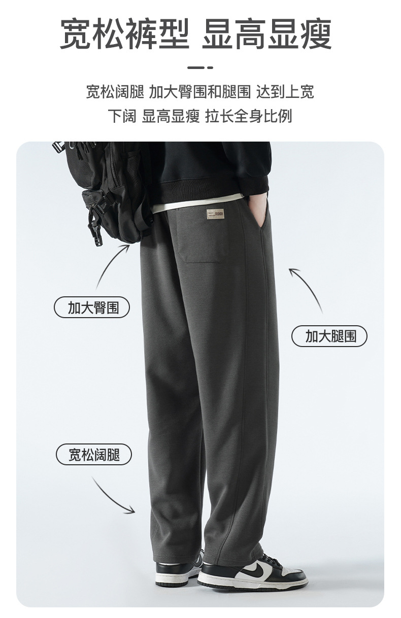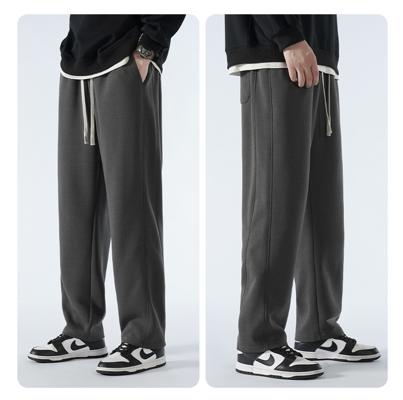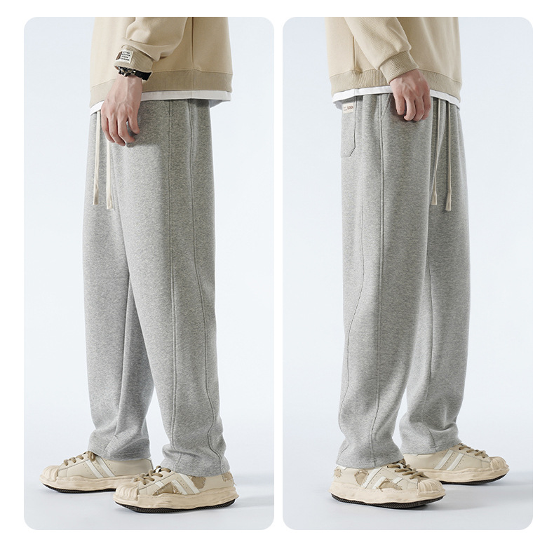 가을 겨울 남성용 면직물 일자핏 스웨트팬츠, 홍콩 스타일 루즈핏 와이드 레그 스포츠 캐주얼 롱 팬츠, 기모 안감 두꺼운 다용도 바지스토어 가기