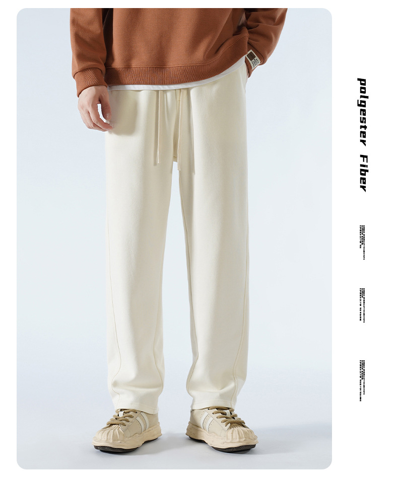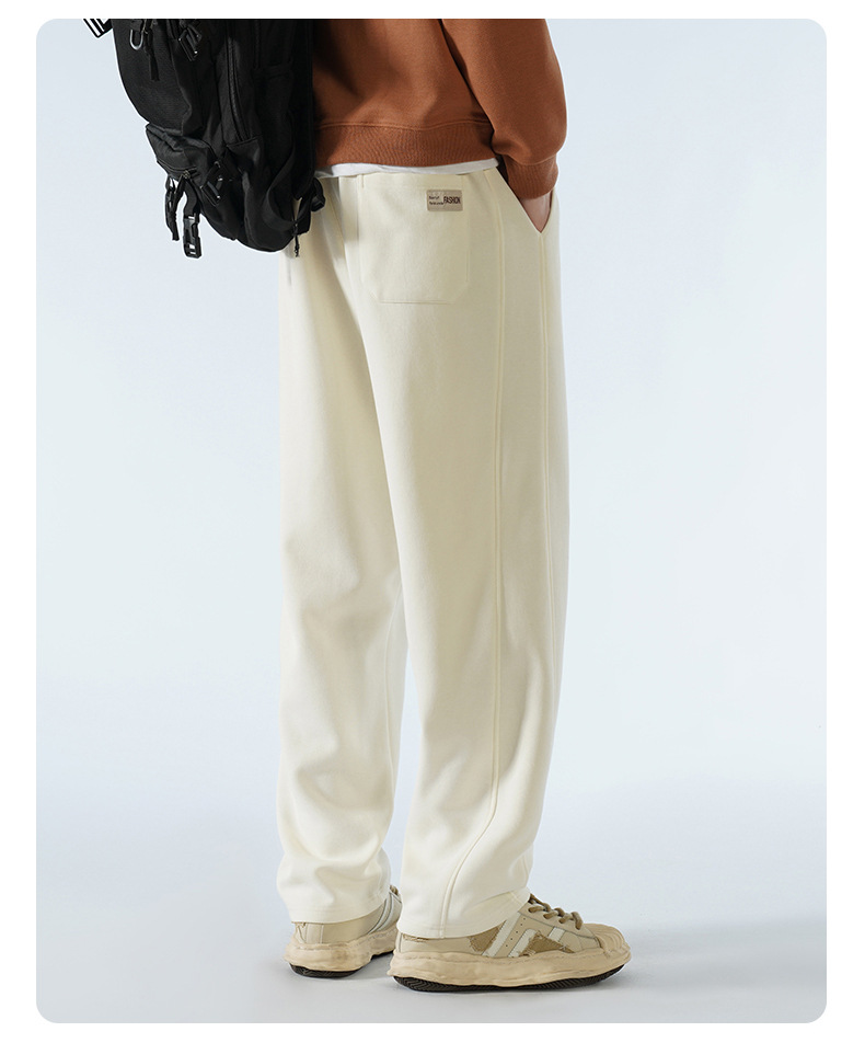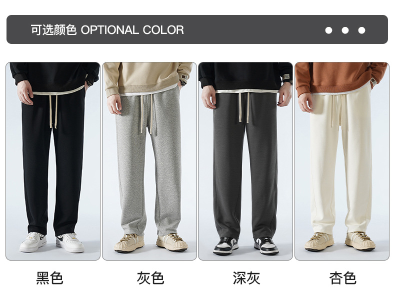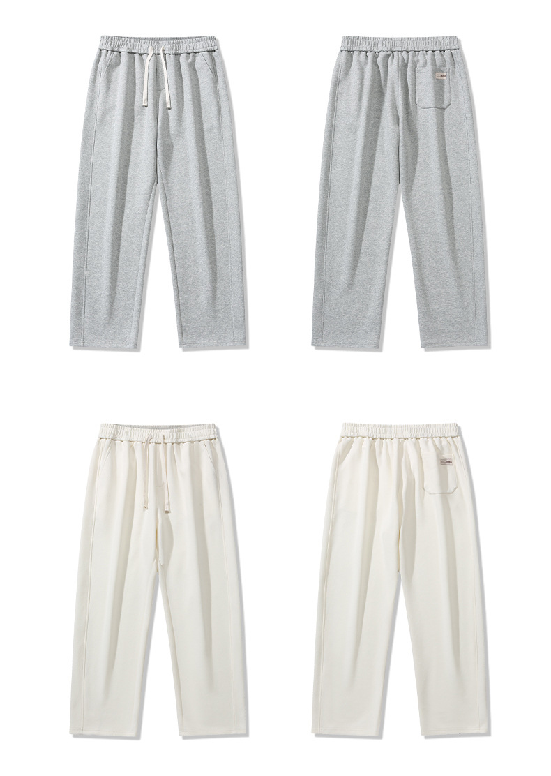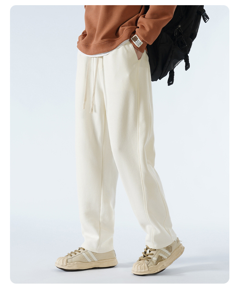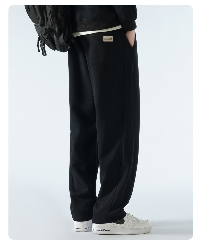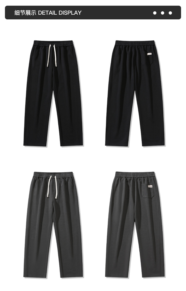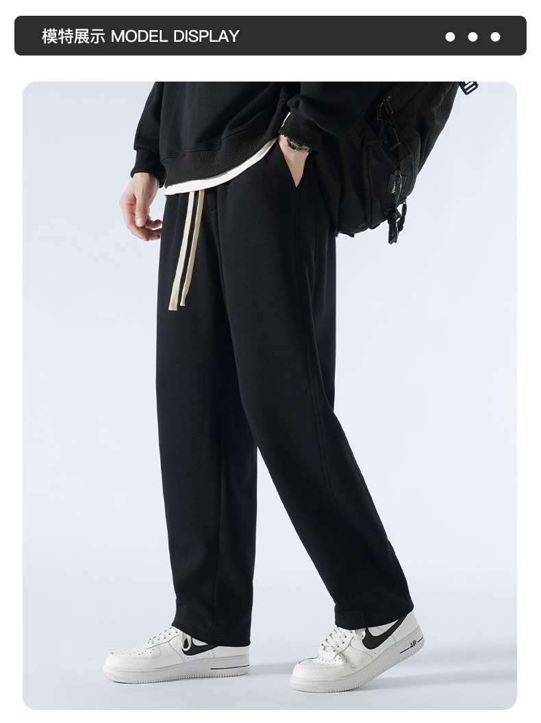가을 겨울 남성용 면직물 일자핏 스웨트팬츠, 홍콩 스타일 루즈핏 와이드 레그 스포츠 캐주얼 롱 팬츠, 기모 안감 두꺼운 다용도 바지스토어 가기