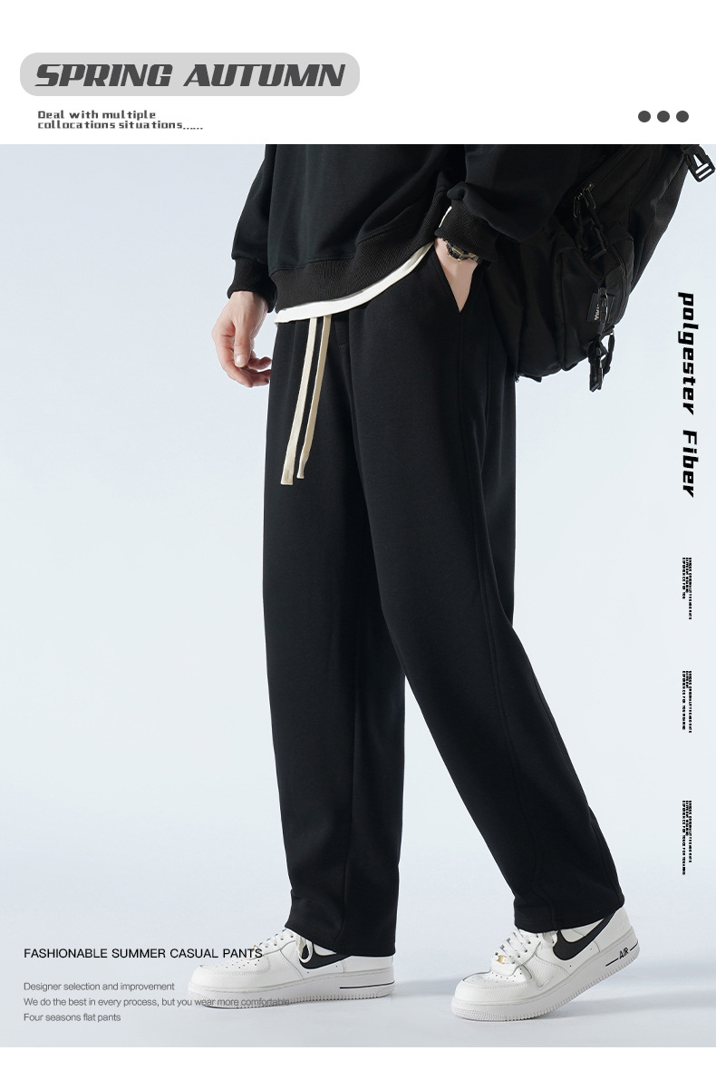 가을 겨울 남성용 면직물 일자핏 스웨트팬츠, 홍콩 스타일 루즈핏 와이드 레그 스포츠 캐주얼 롱 팬츠, 기모 안감 두꺼운 다용도 바지