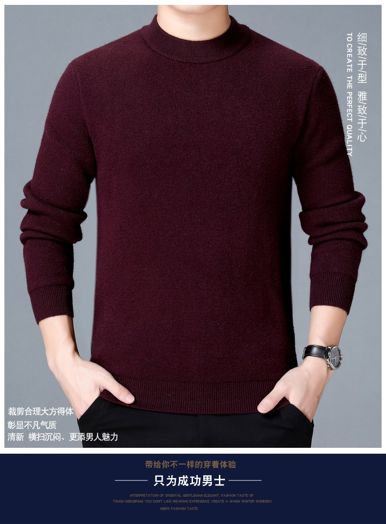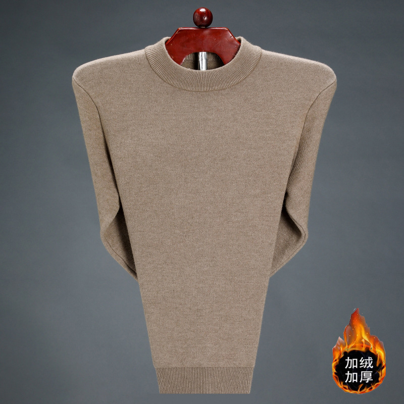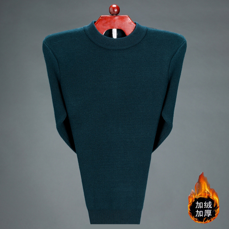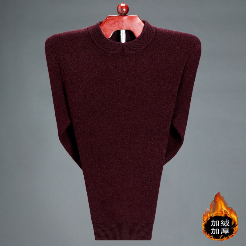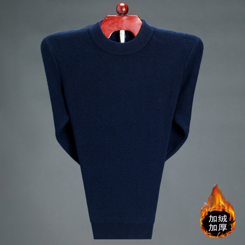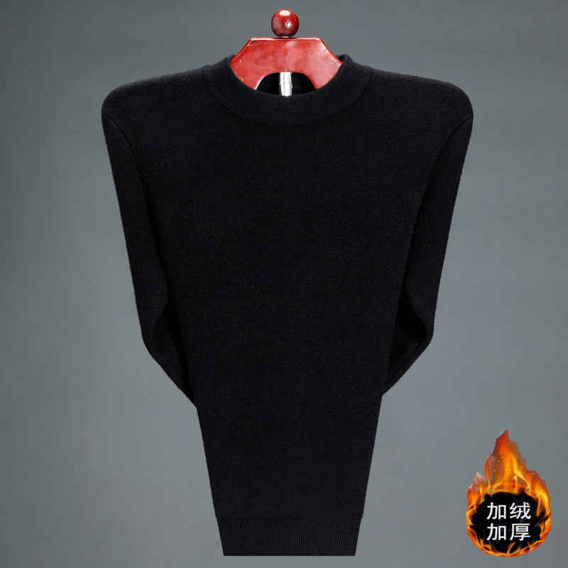 중년 및 노인 아빠를위한 하이 엔드 24 겨울 기모 양모베이스 셔츠 크루 넥 두꺼운 스웨터 캐시미어 긴팔 남성복