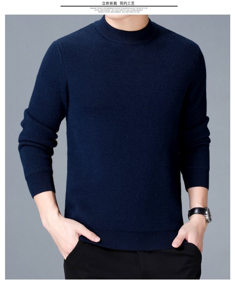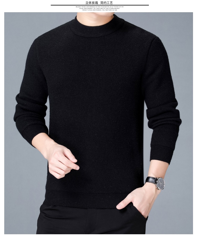 중년 및 노인 아빠를위한 하이 엔드 24 겨울 기모 양모베이스 셔츠 크루 넥 두꺼운 스웨터 캐시미어 긴팔 남성복스토어 가기
