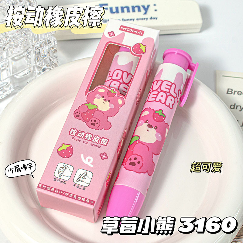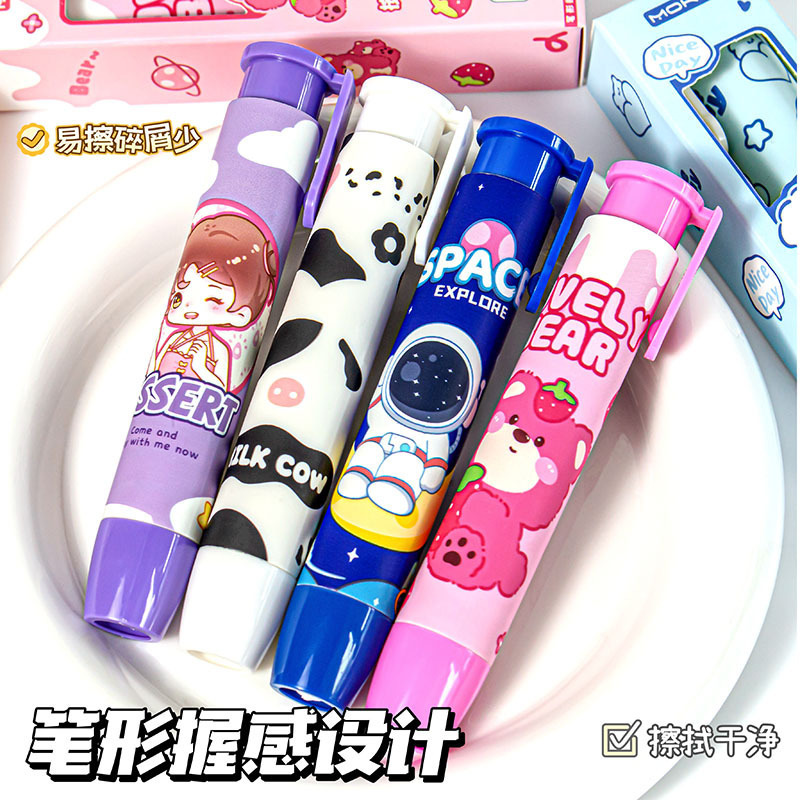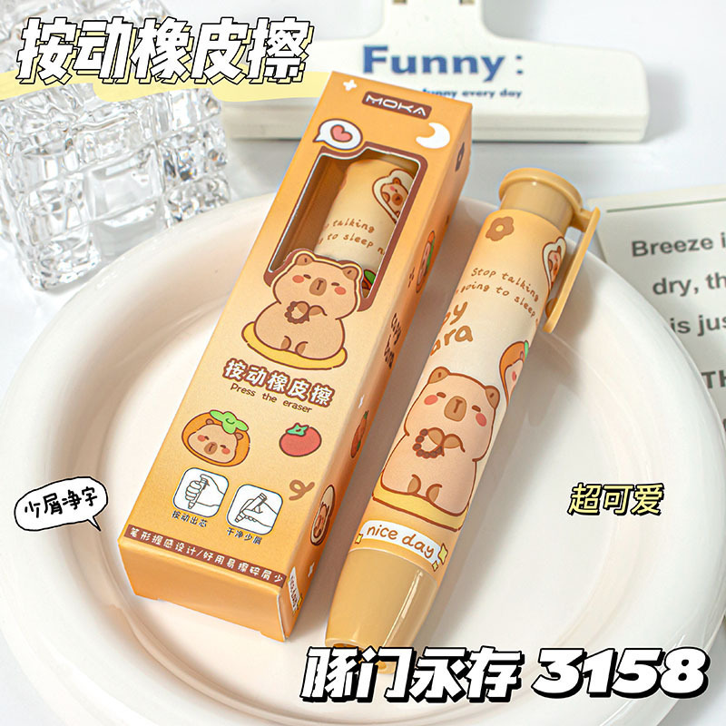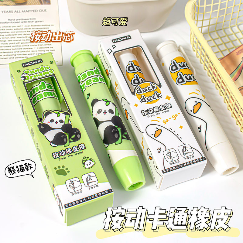 多色 彩色 按动出芯 卡通 可爱 可推拉 小学生儿童礼物奖品 学习用品批发 熊猫 线条小狗 卡皮巴拉 橡皮擦