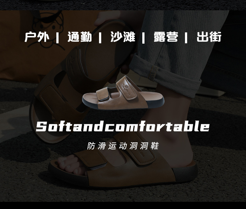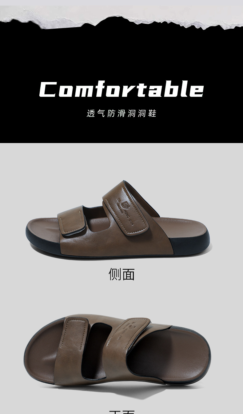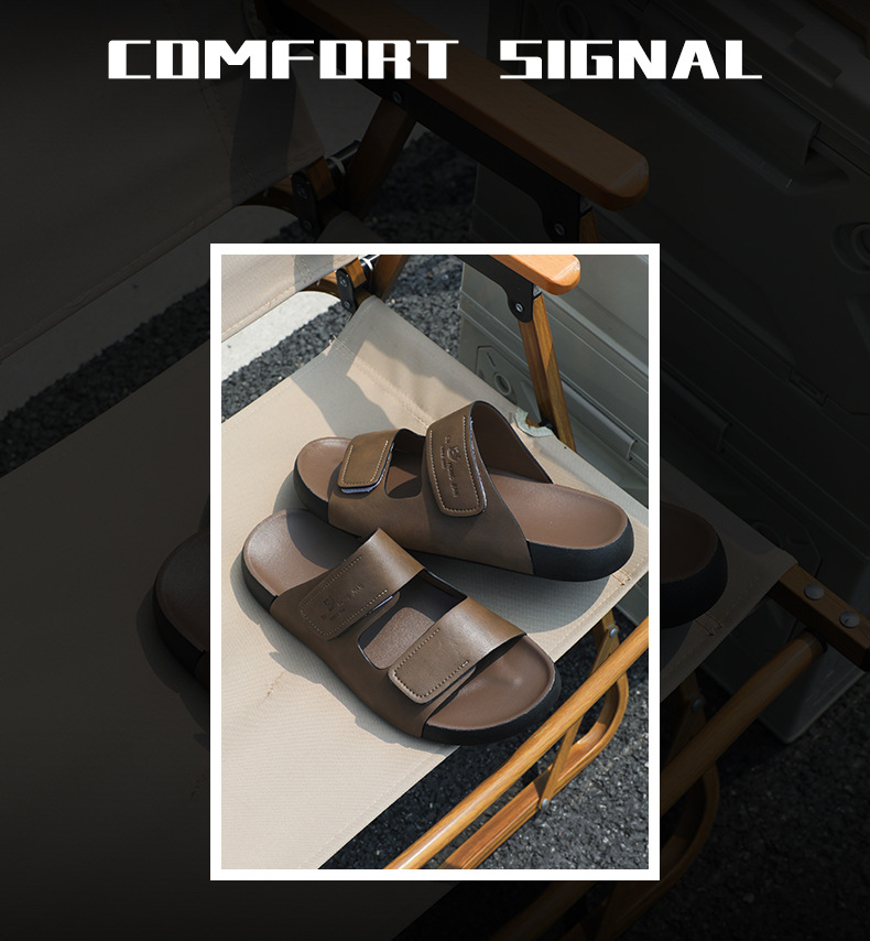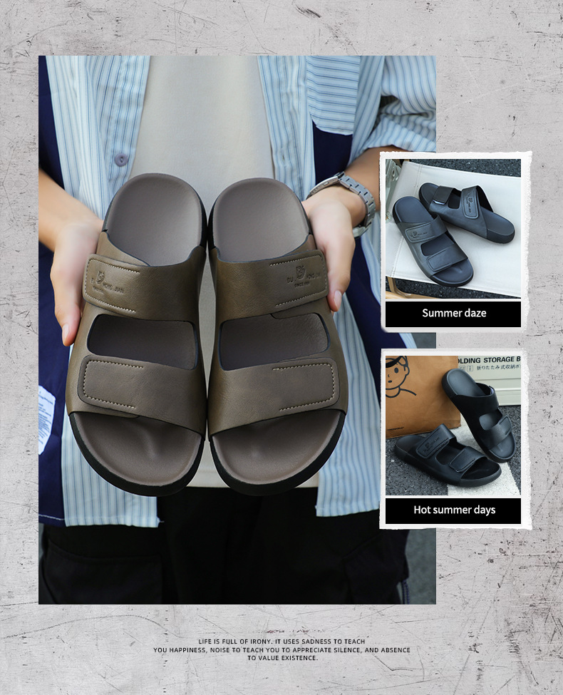 가죽 슬리퍼 남자 여름 외부 착용 한국 스타일 스포츠 슬라이드 홈 실내 두꺼운 하단 벨크로 남성용 샌들
