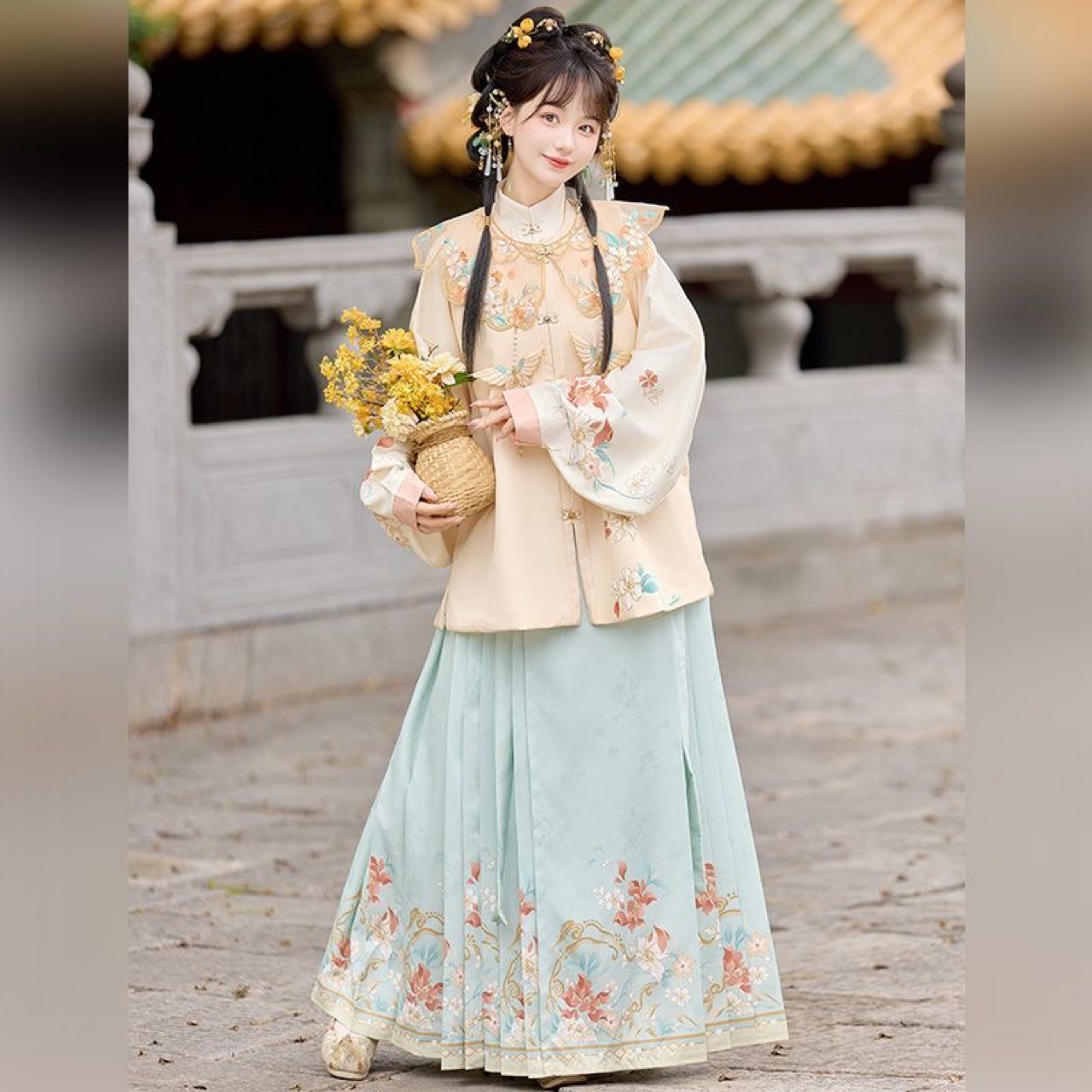 여자 친구 새 성인 라우 진밍 한푸 여성의 비지아 피파 소매 구름 어깨 말 얼굴 스커트 매일 가을과 겨울 세트스토어 가기