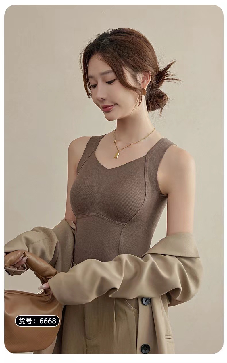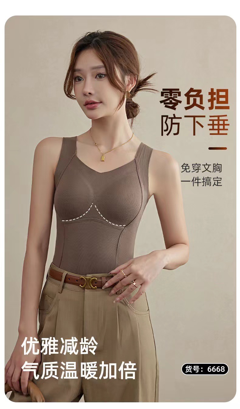 새로운 열 속옷 조끼 여성 양면 벨벳 착용 없는 브래지어 기모 가슴 패드가 달린 가을과 겨울 6668