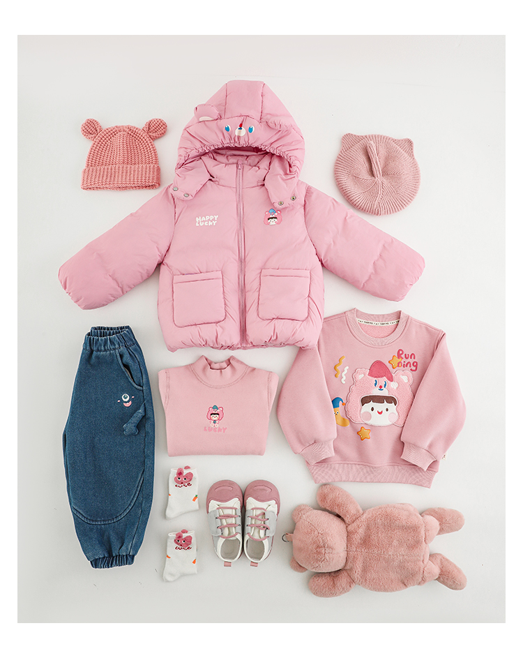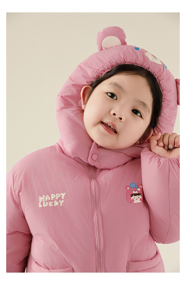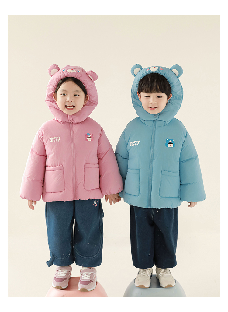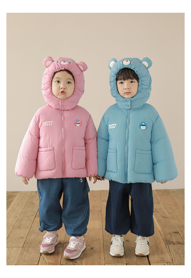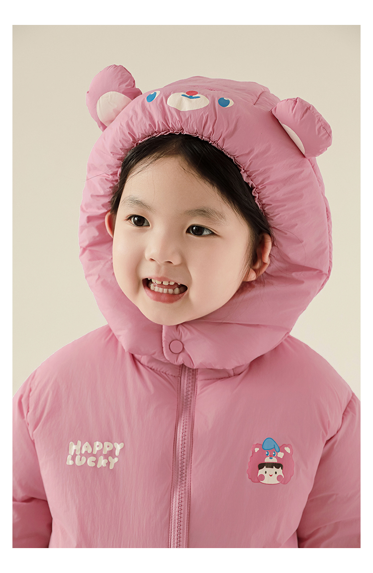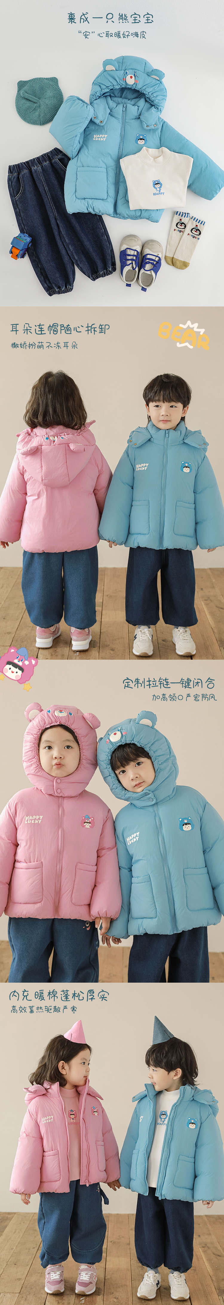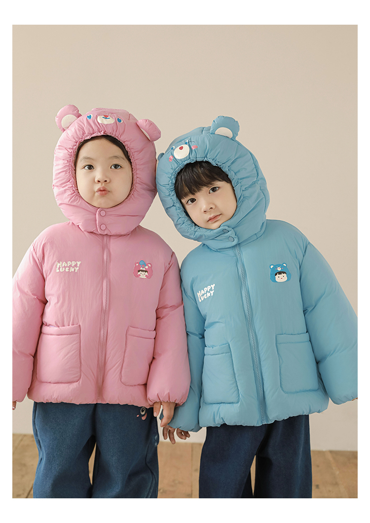 Wurib 높은 목선을 가진 더블 11 여자 곰 면화 패딩 재킷 2024 겨울 새로운 귀여운 따뜻한 후드 면화 패딩 재킷