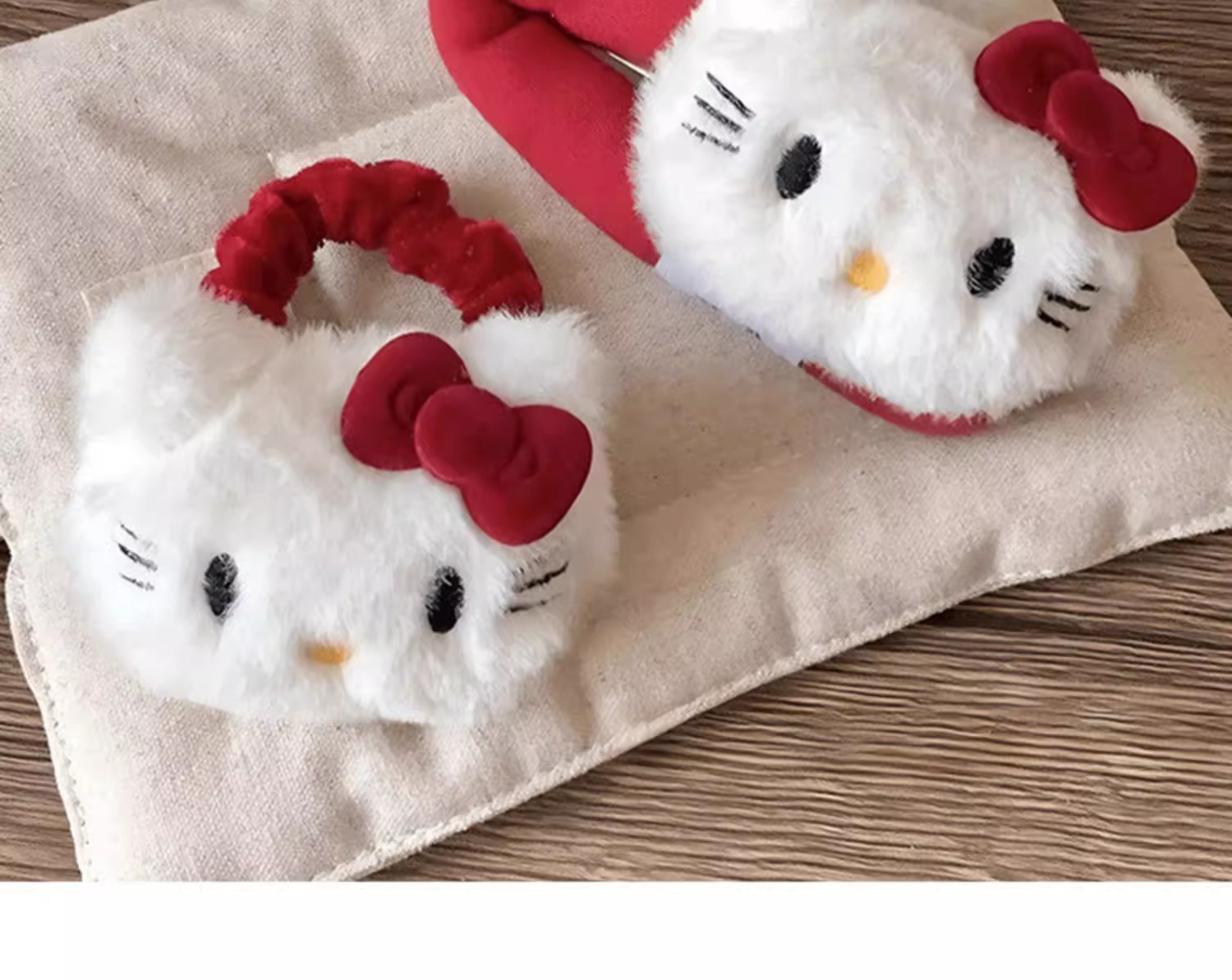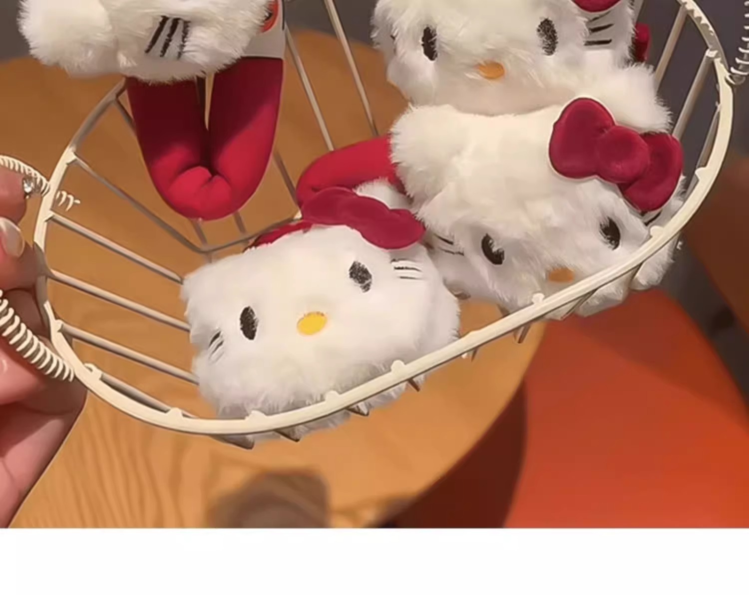 새로운 빨간 Kt 고양이 머리 반지 만화 봉제 소녀 앞머리 옆 클립 귀여운 머리 밧줄 머리핀 머리 액세서리