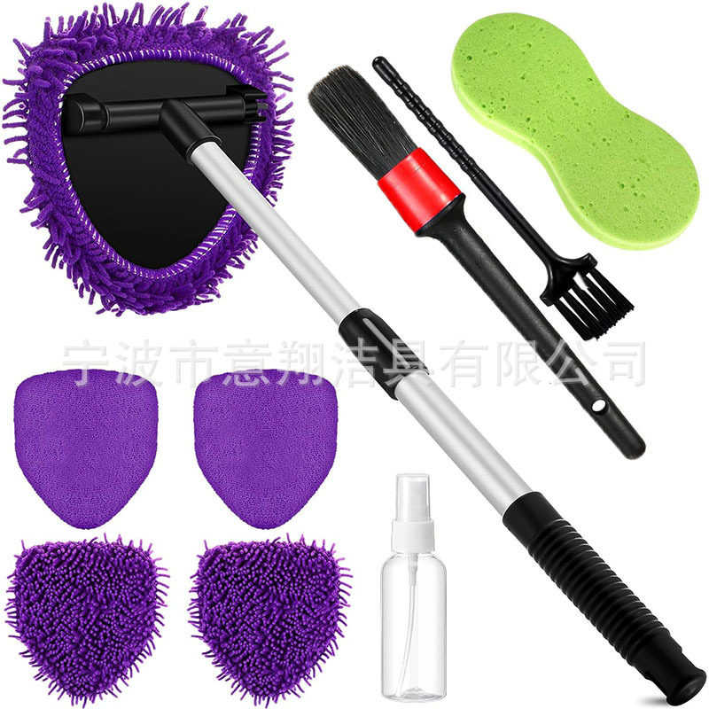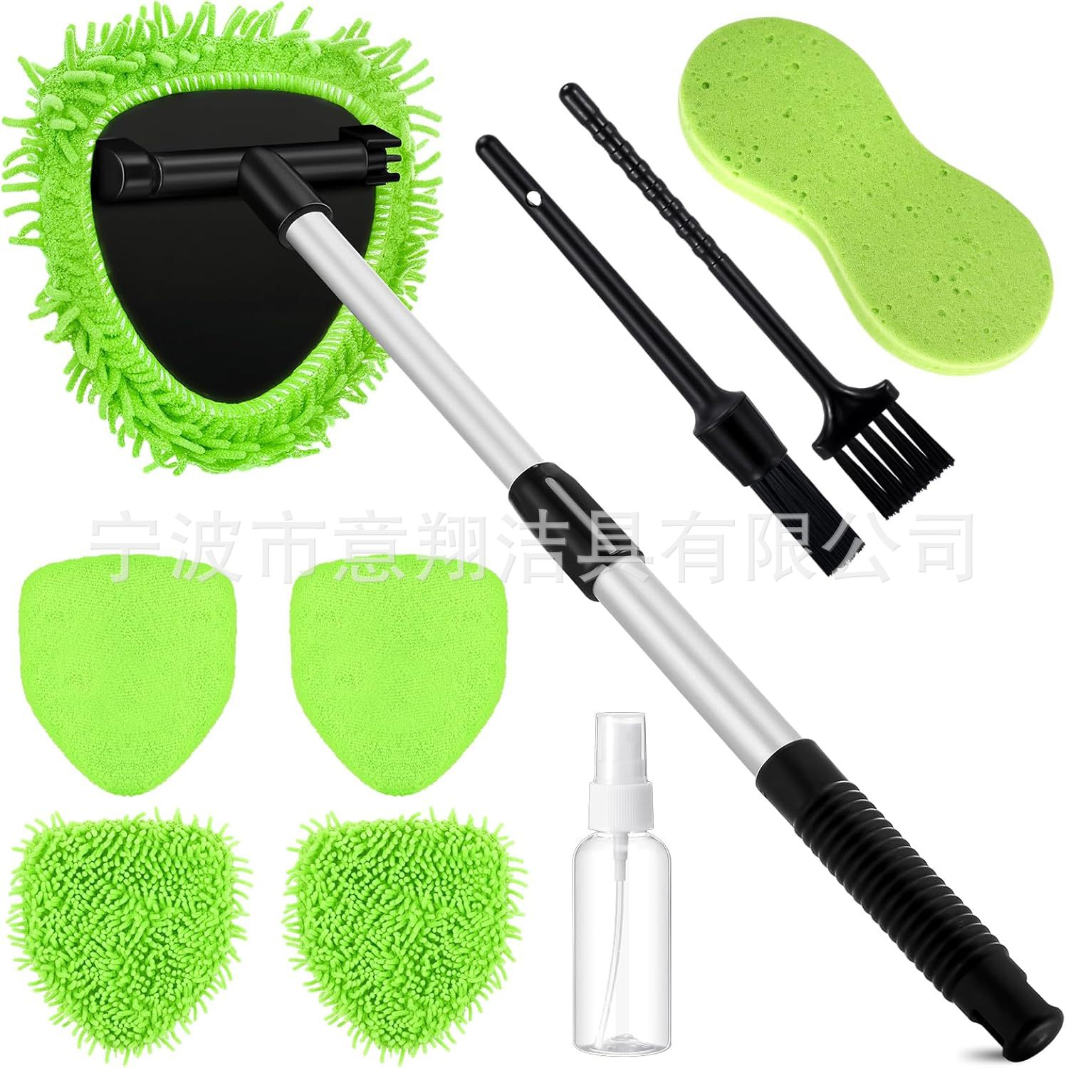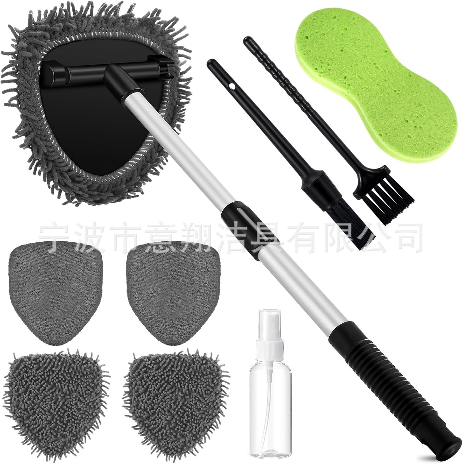 1、可伸缩铝合金杆,清洁范围大,可轻松擦洗车顶;
