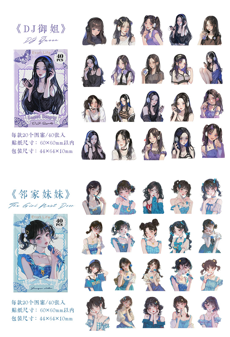이탈리아 새 박스 스티커 달콤한 아름다움 연인 아름다운 소녀 캐릭터 손 계정 일기 일기 장식 스티커스토어 가기