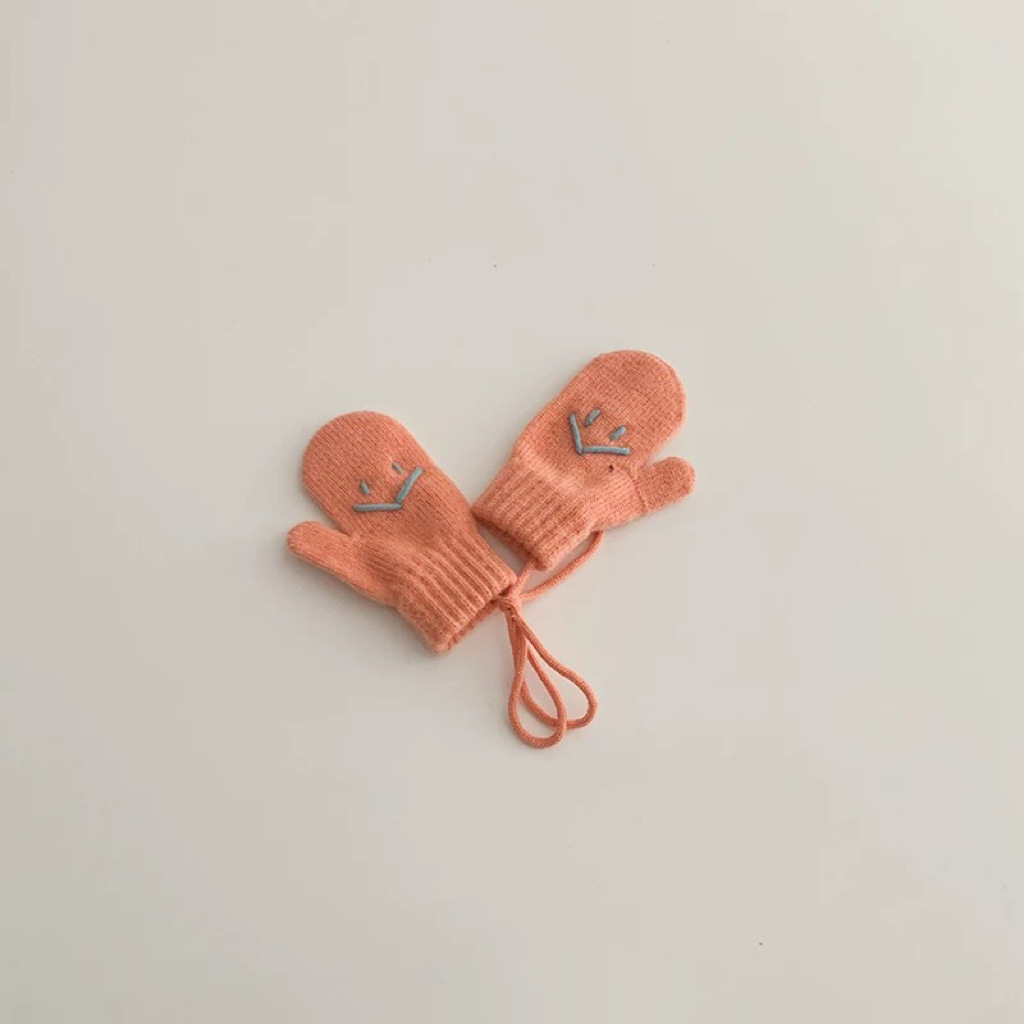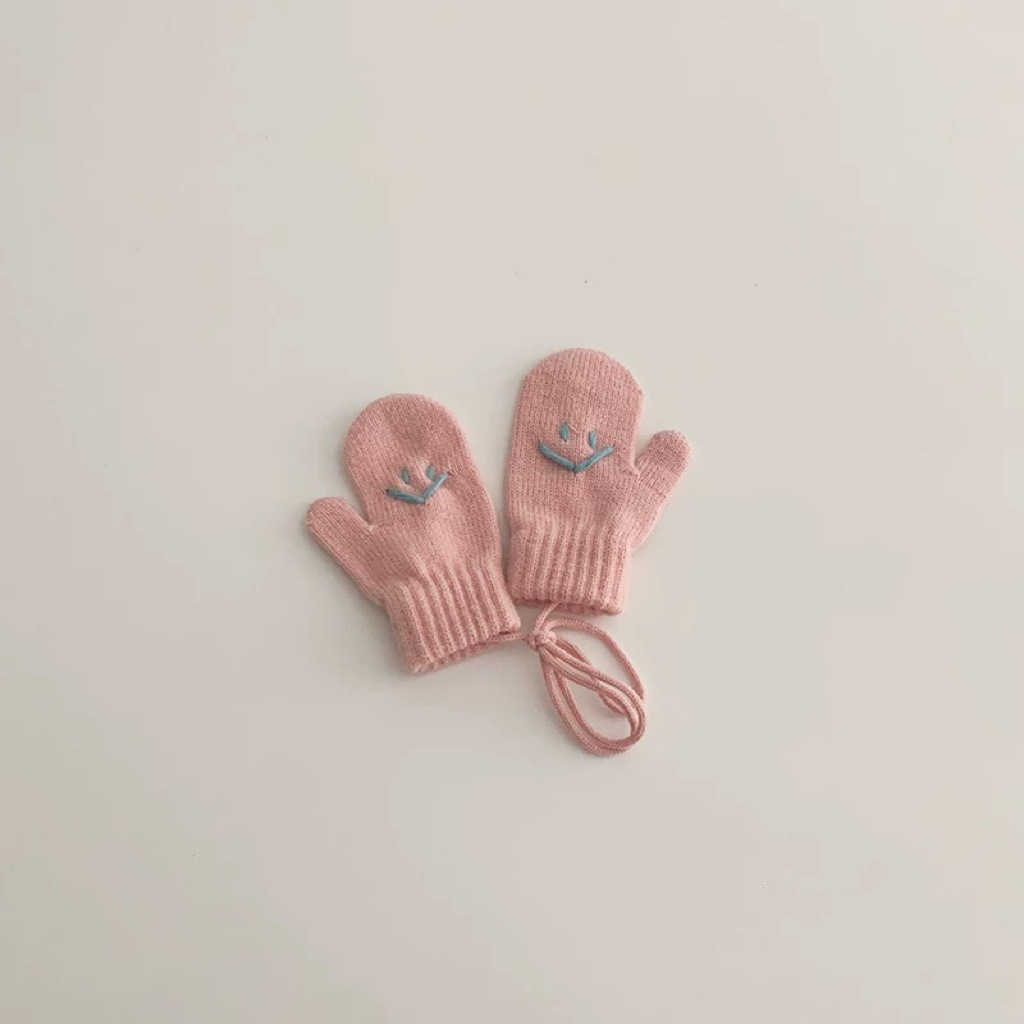 가을과 겨울 새로운 한국 스타일 어린이 웃는 얼굴 장갑 목에 매달려 따뜻한 겨울 아기 여행 서양식 장갑