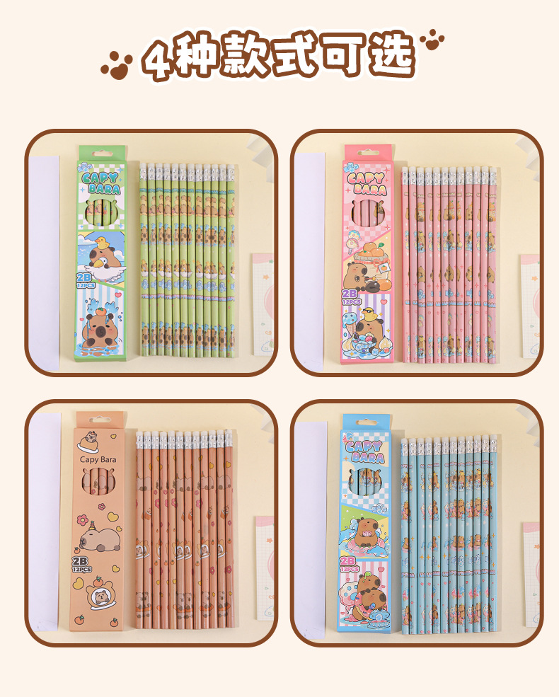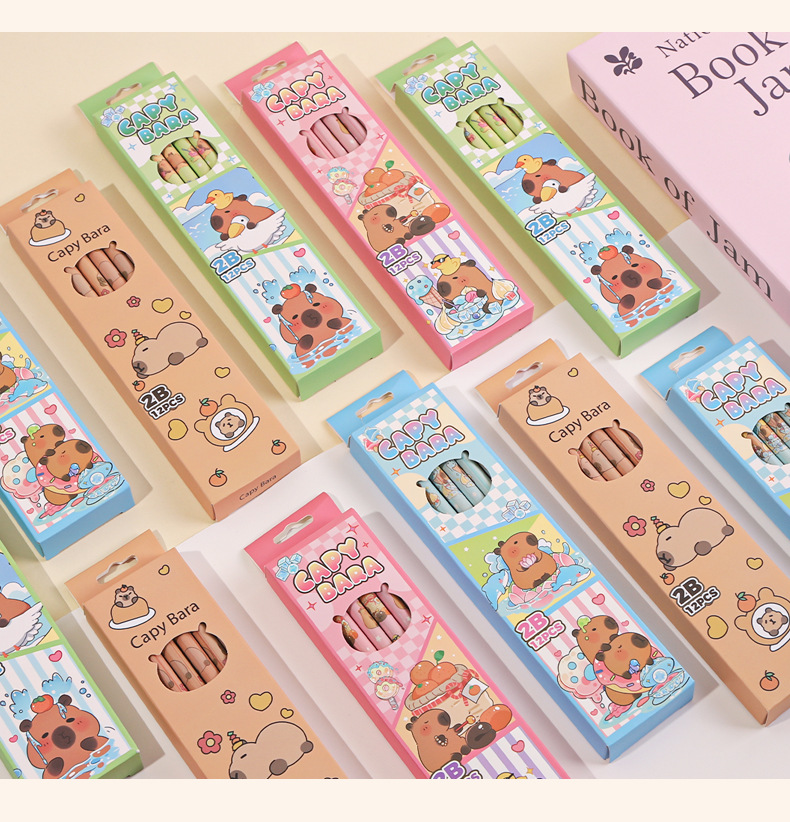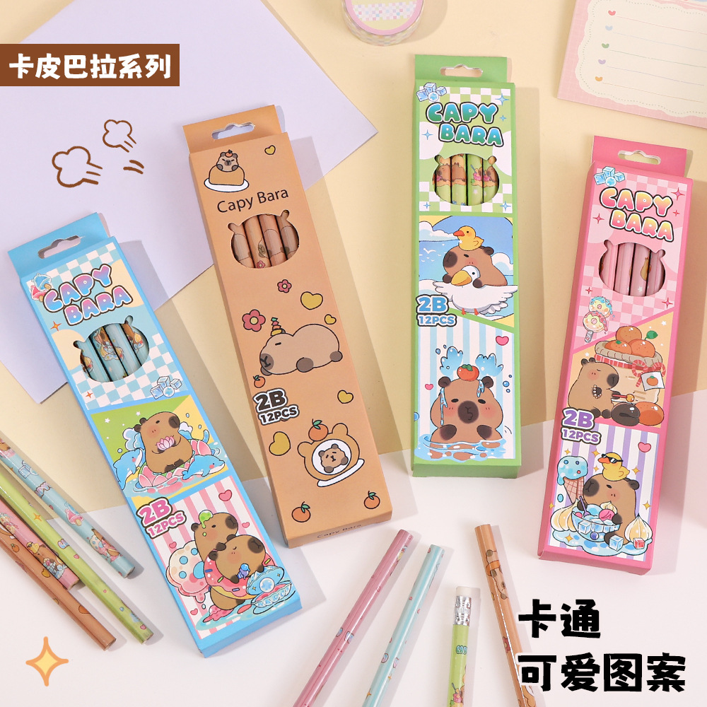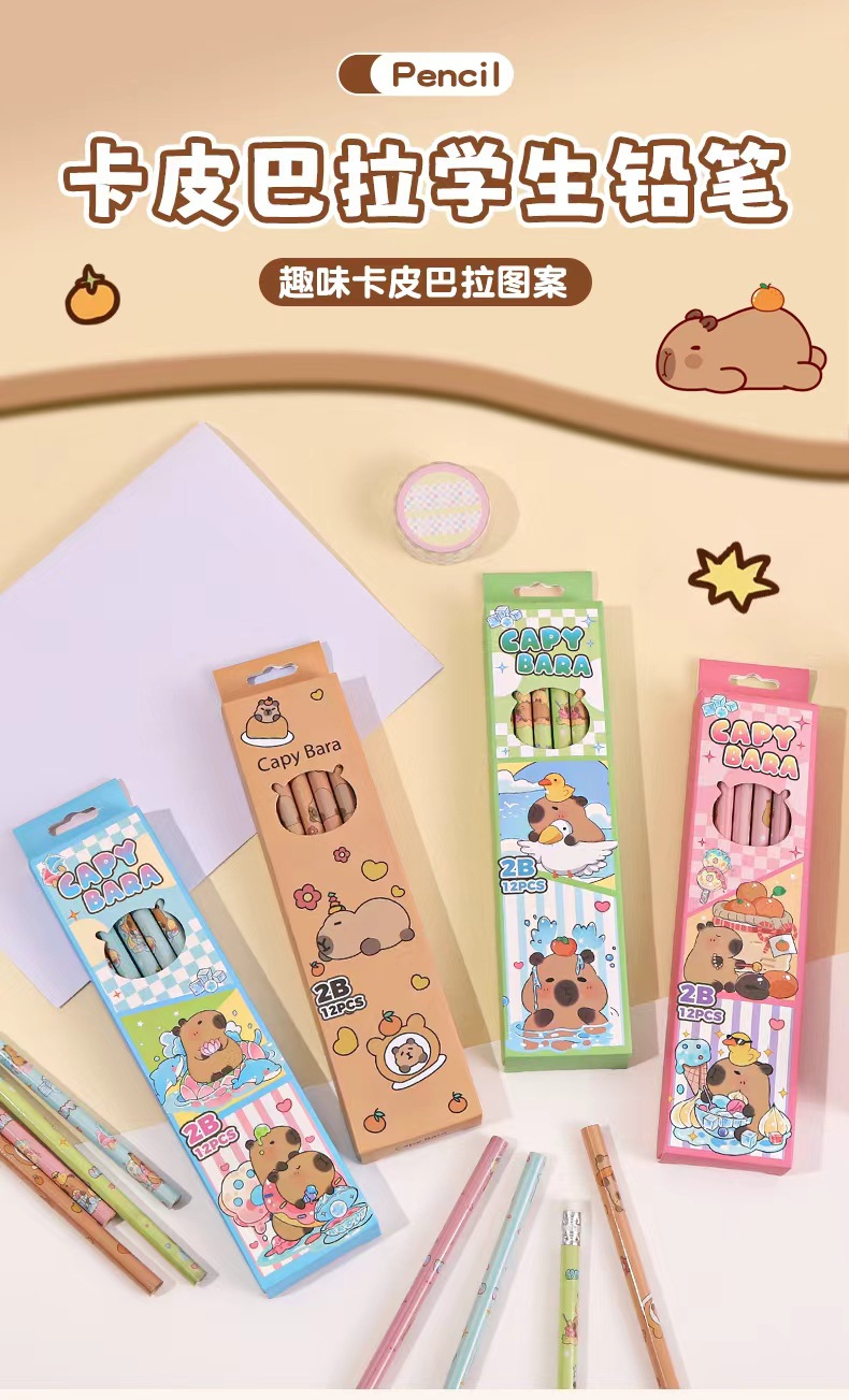 • 카피바라 세트 [12개입/세트 + 연필깎이 & 연필 그립] 색상 랜덤 발송