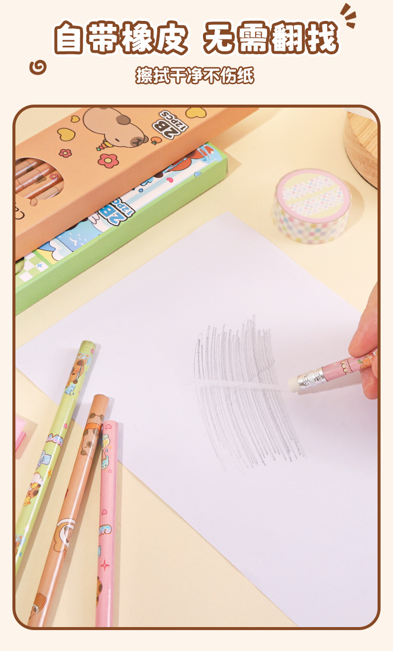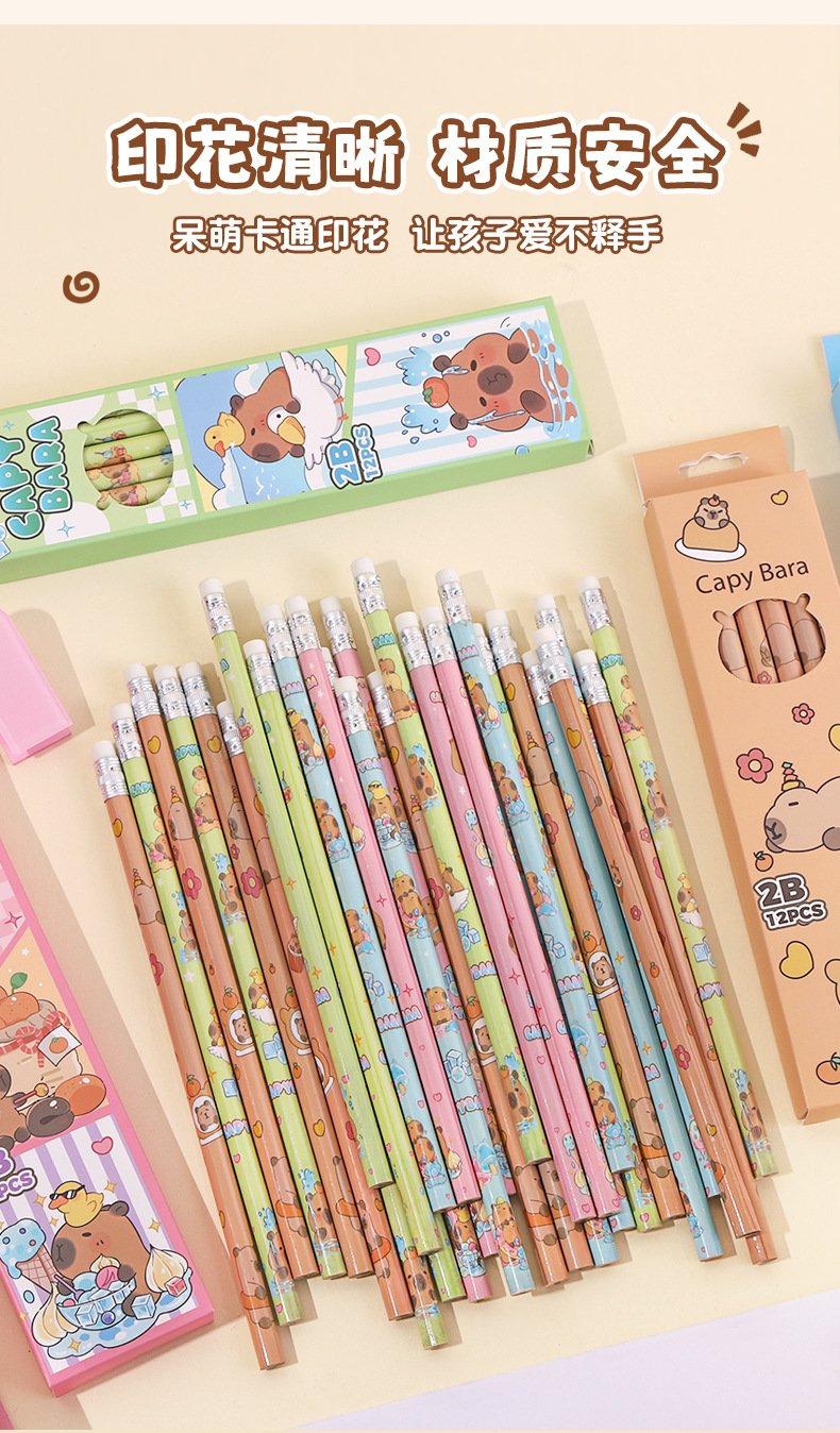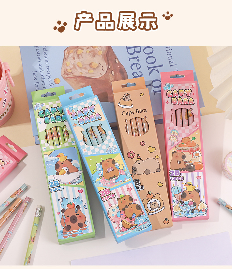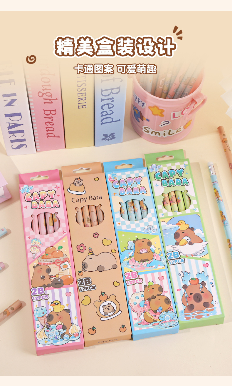• 카피바라 세트 [12개입/세트 + 연필깎이 & 연필 그립] 색상 랜덤 발송