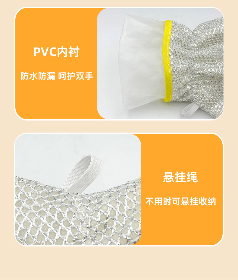 방수 스틸 와이어 식기 세척 장갑 닦는 패드 가정용 브러시 다기능 주방 청소 브러시 내구성 실버 천