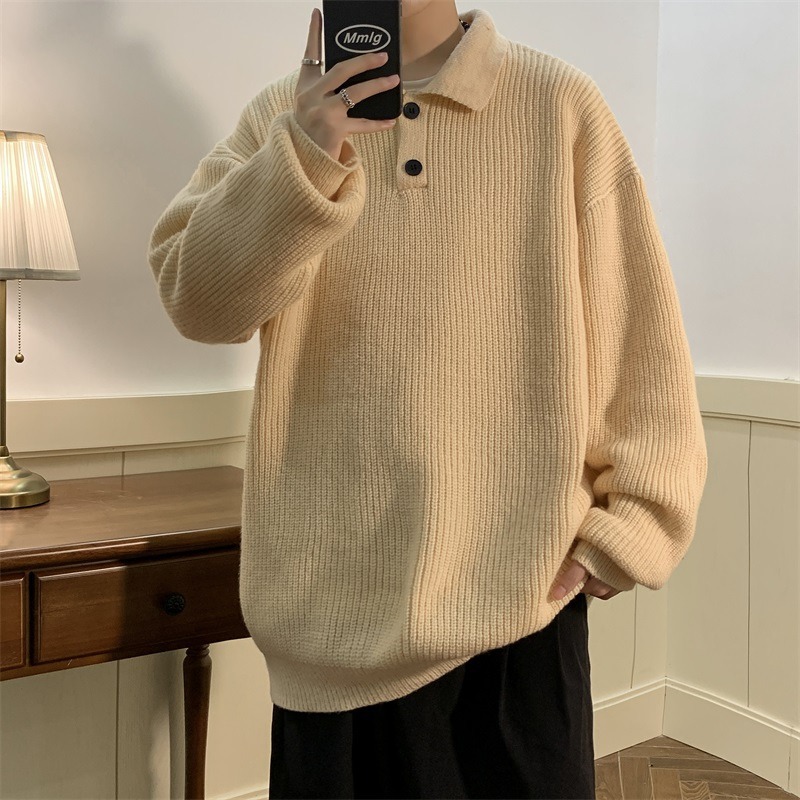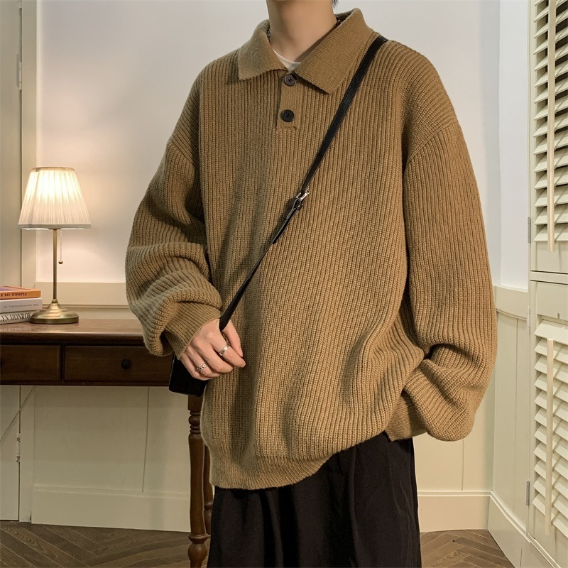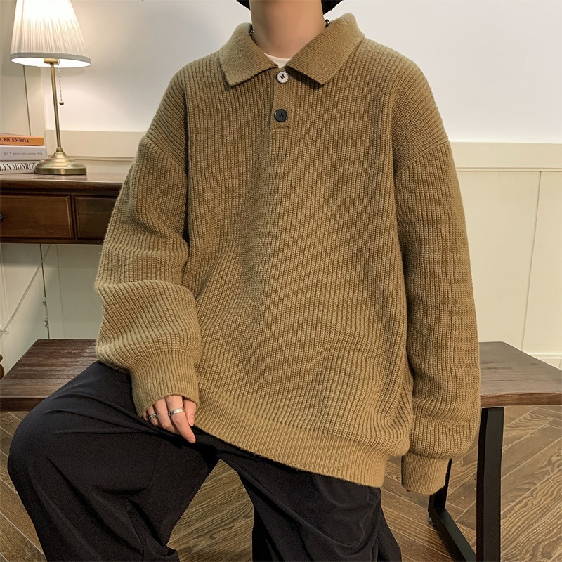 겨울 솔리드 컬러 폴로 넥 스웨터 남자 긴팔 스웨터 일본 스타일 레트로 패션 브랜드 게으른 스타일 스웨터 재킷 커플