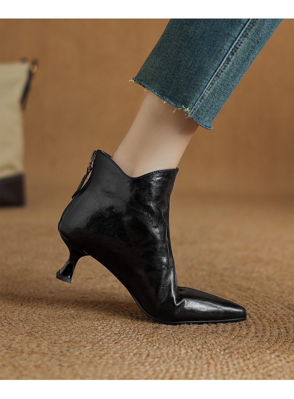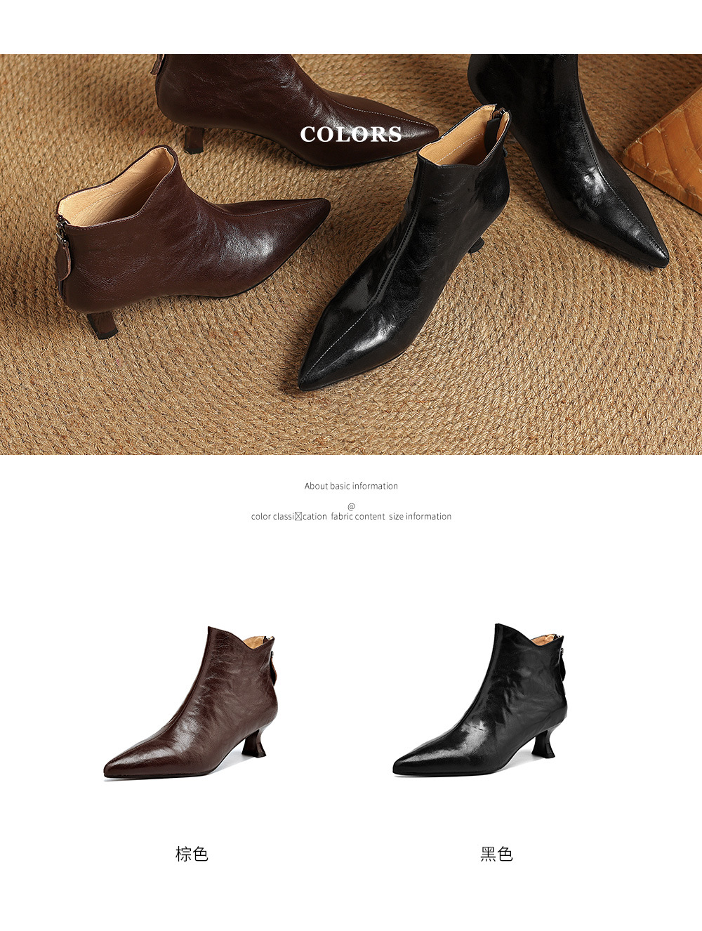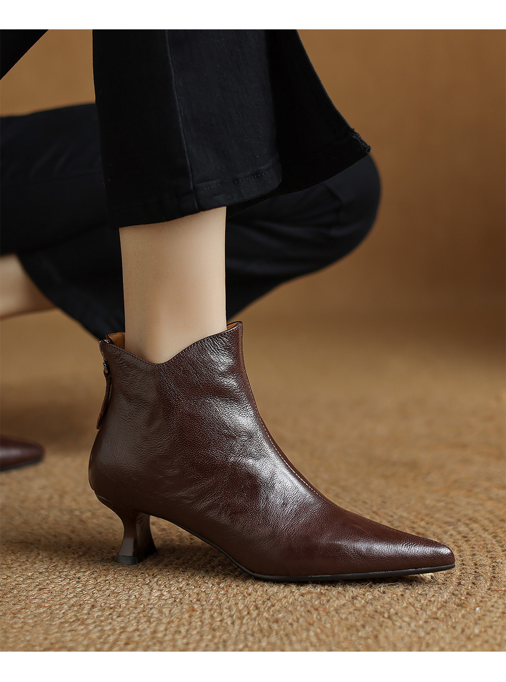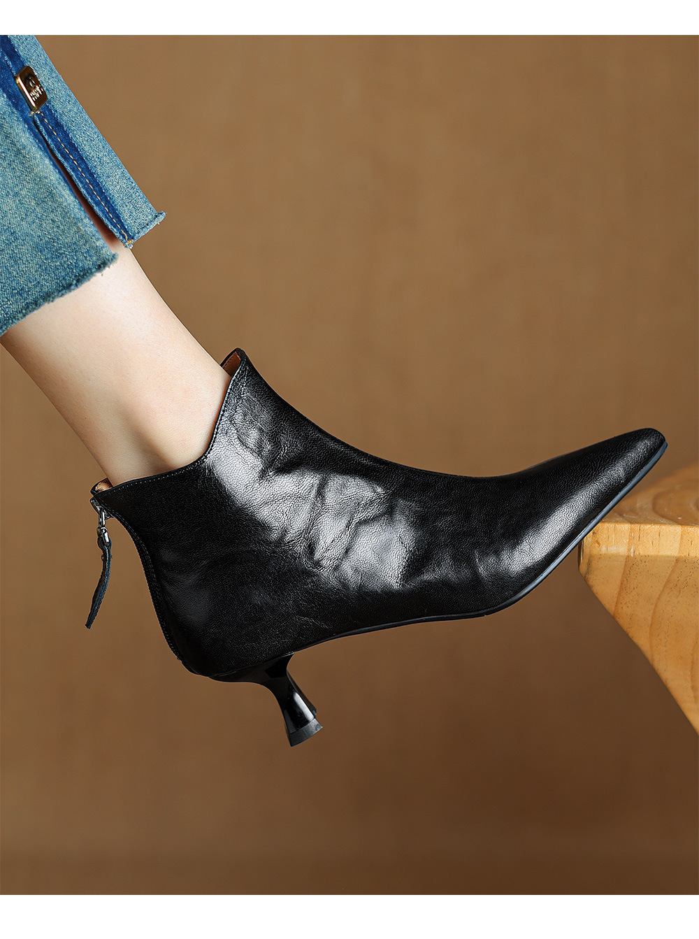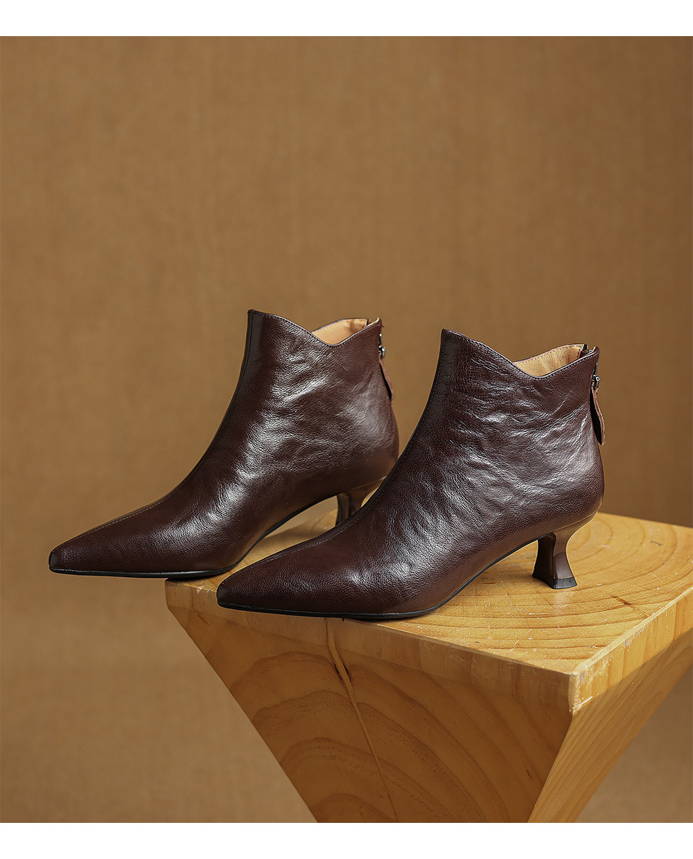프랑스 스타일 부드러운 양가죽 뾰족한 발가락 발목 부츠 여성의 얇은 뒤꿈치 슬리밍 V-입 고양이 뒤꿈치 2024 가을 및 겨울 새로운 발 진열장