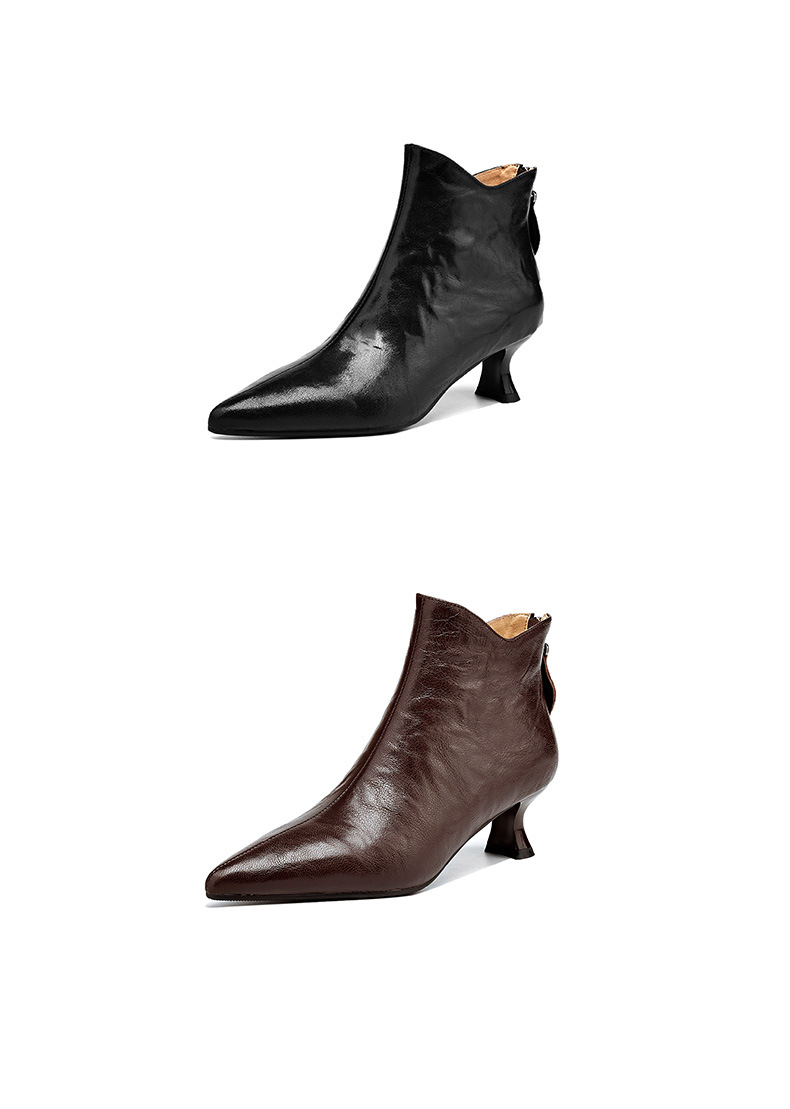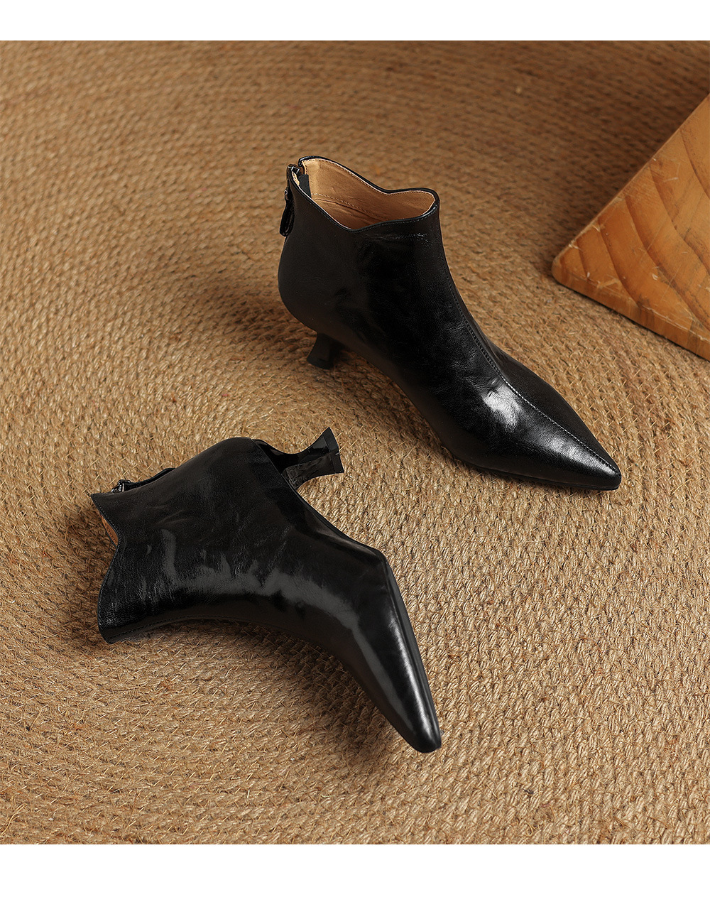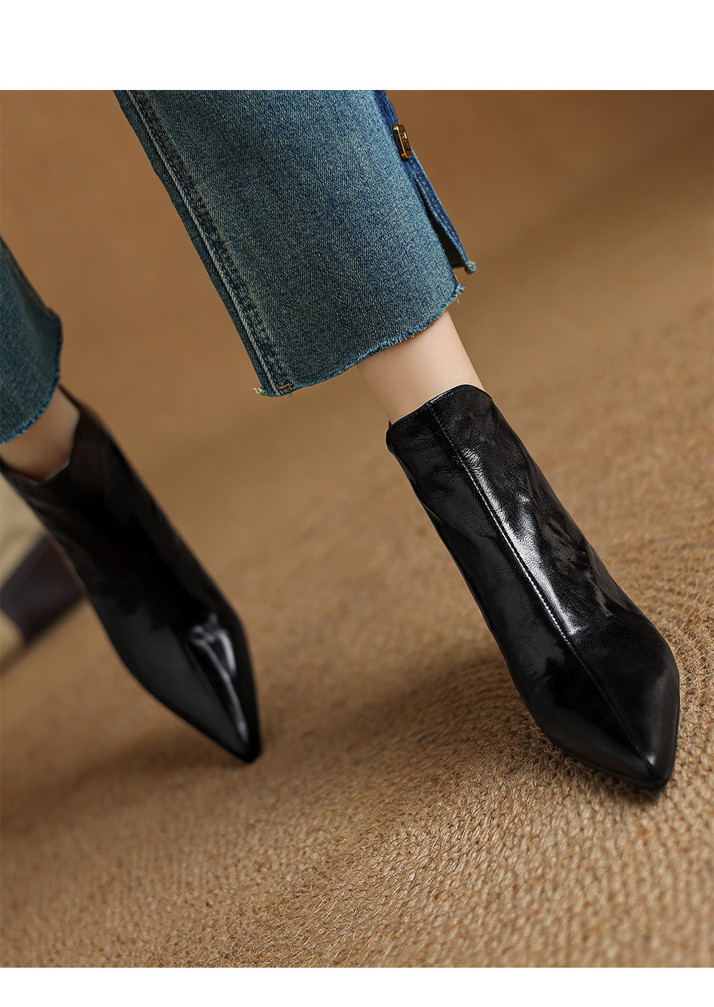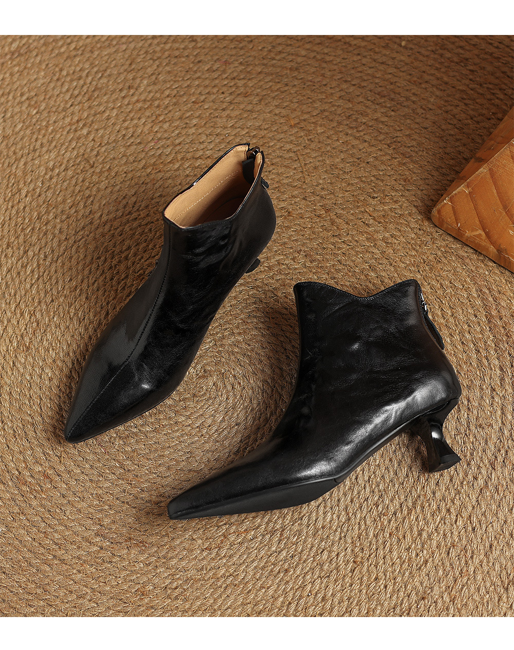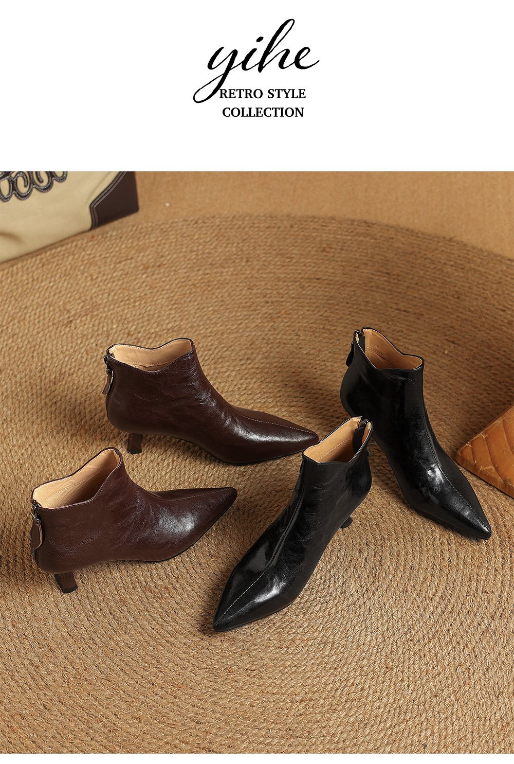 프랑스 스타일 부드러운 양가죽 뾰족한 발가락 발목 부츠 여성의 얇은 뒤꿈치 슬리밍 V-입 고양이 뒤꿈치 2024 가을 및 겨울 새로운 발 진열장