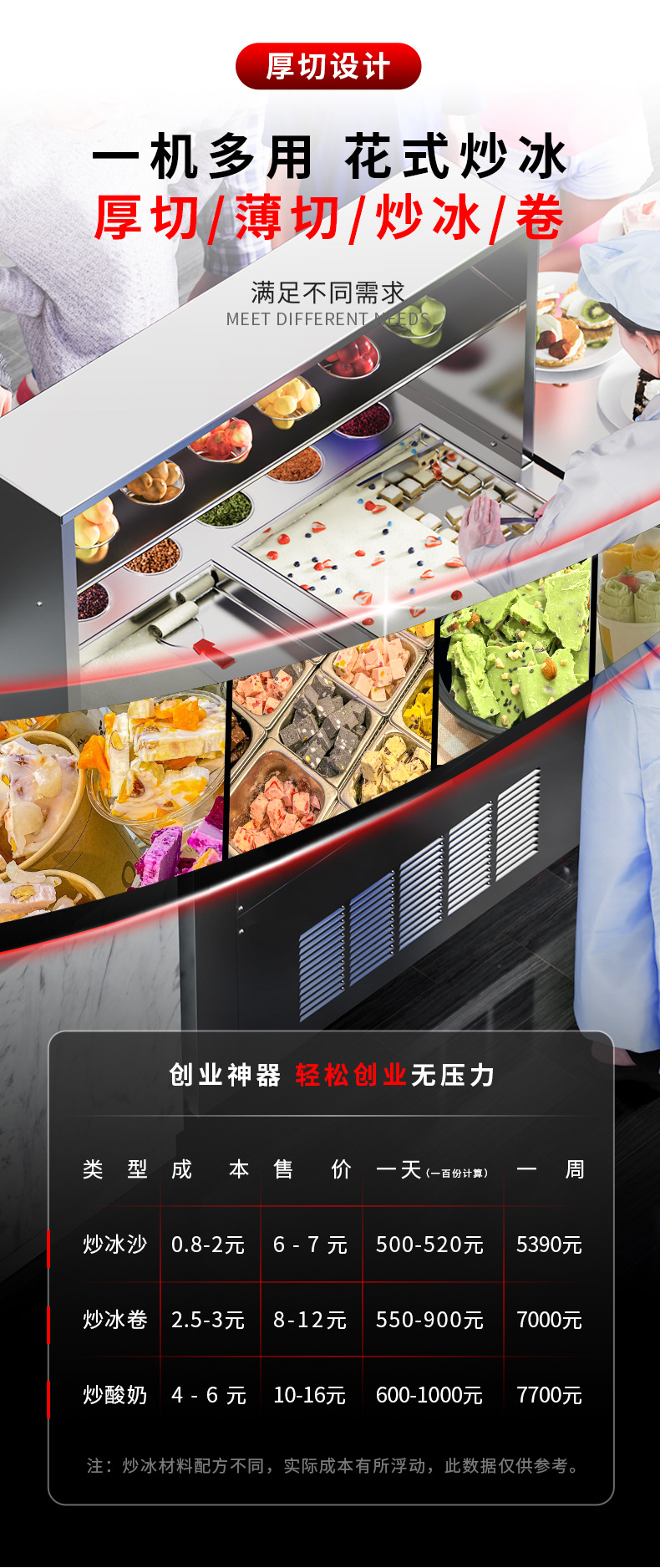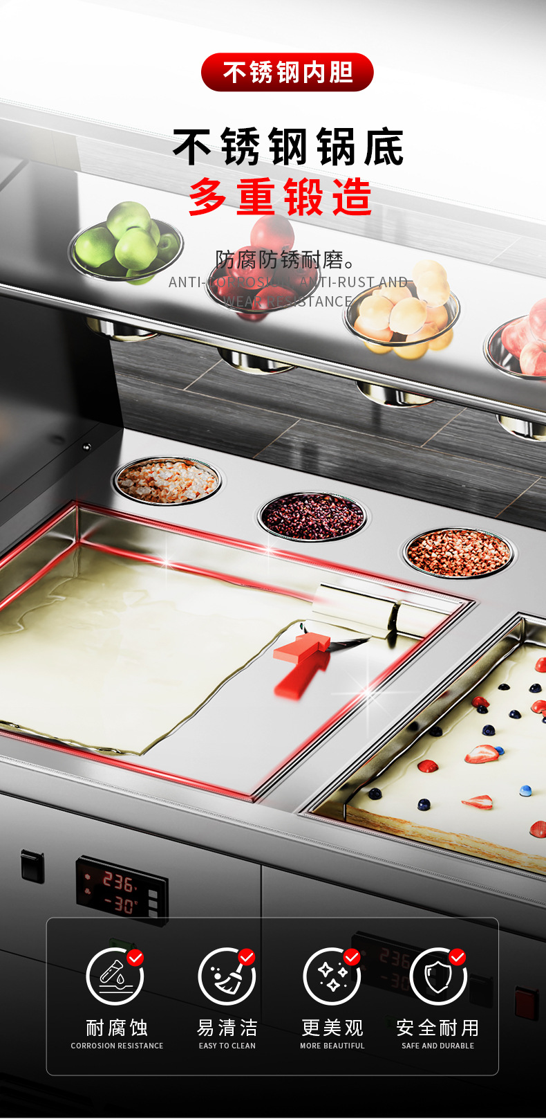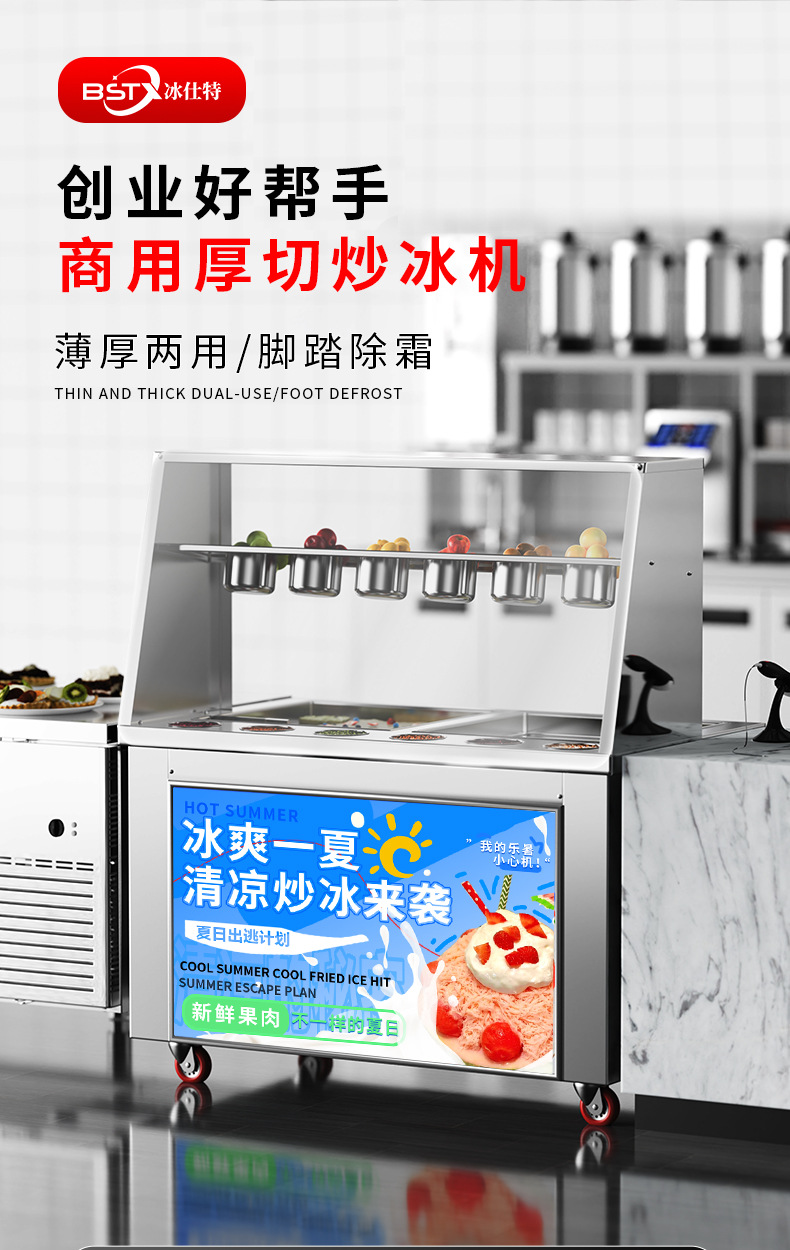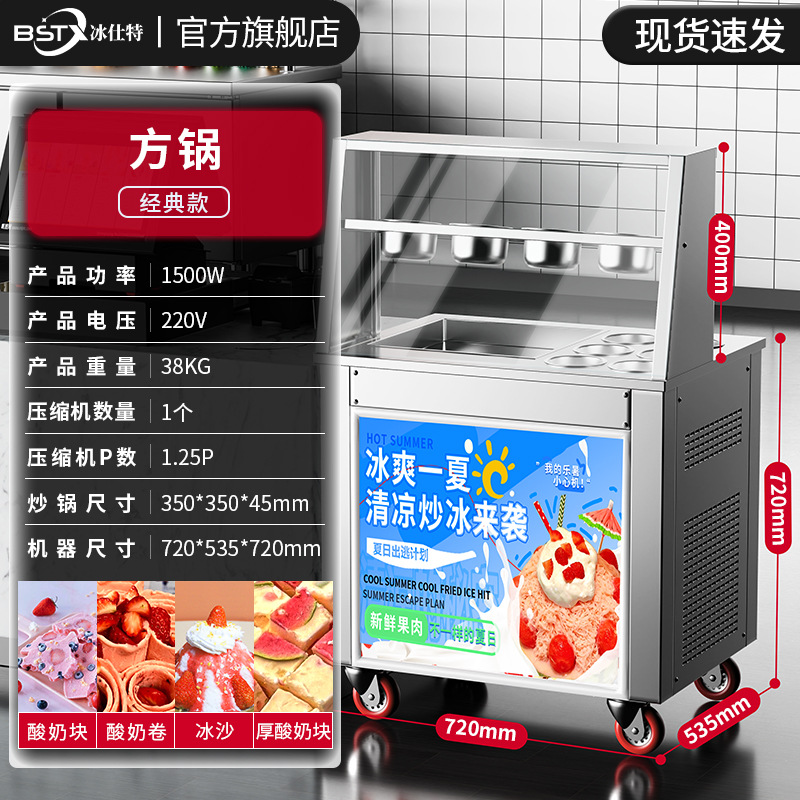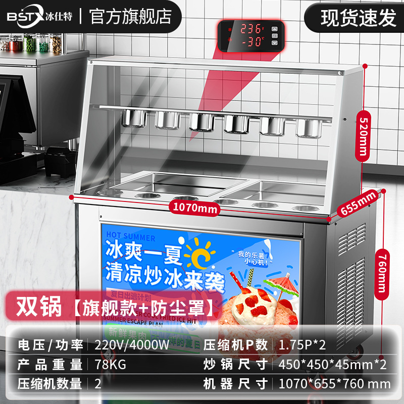 빙시 엑스트라 두꺼운 컷 스톨 요구르트 기계 아이스크림 프라이팬 아이스 머신 상업용 튀김 우유 아이스크림 롤 기계 싱글 및 더블 포트 머신스토어 가기