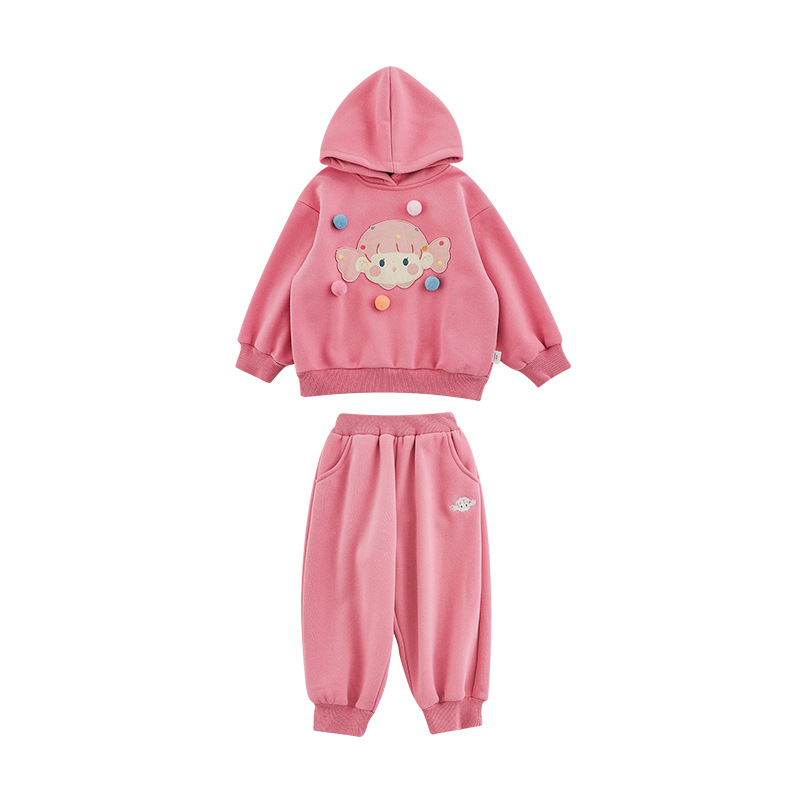 우리부 11일 여성 아동용 기모 두꺼운 만화 캐릭터 소녀 세트 겨울 귀여운 스웨트셔츠 루즈핏 스웨트팬츠 트렌디