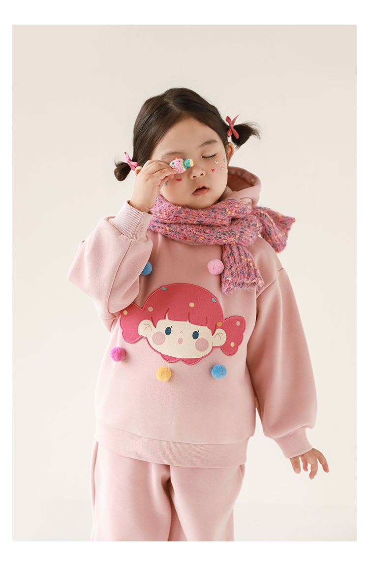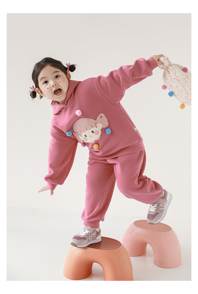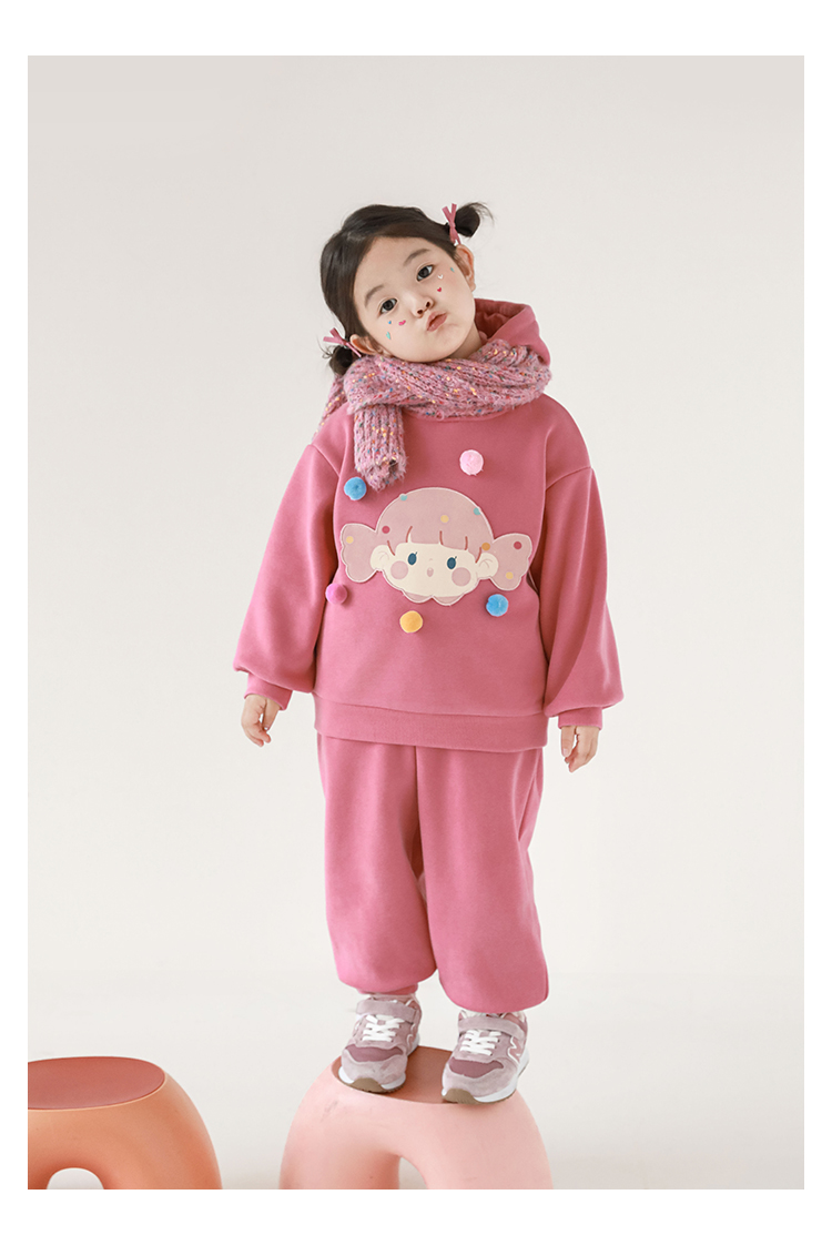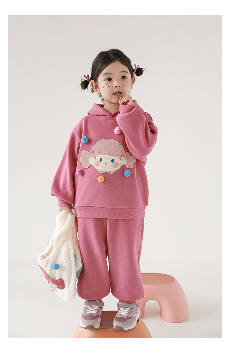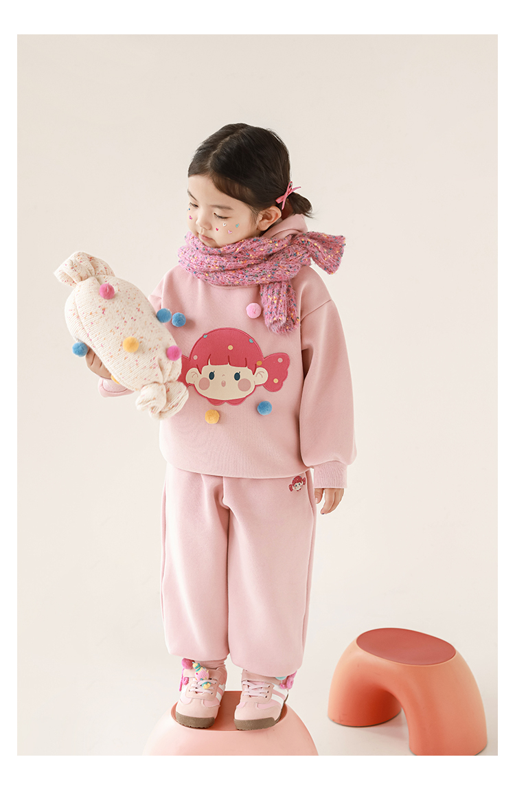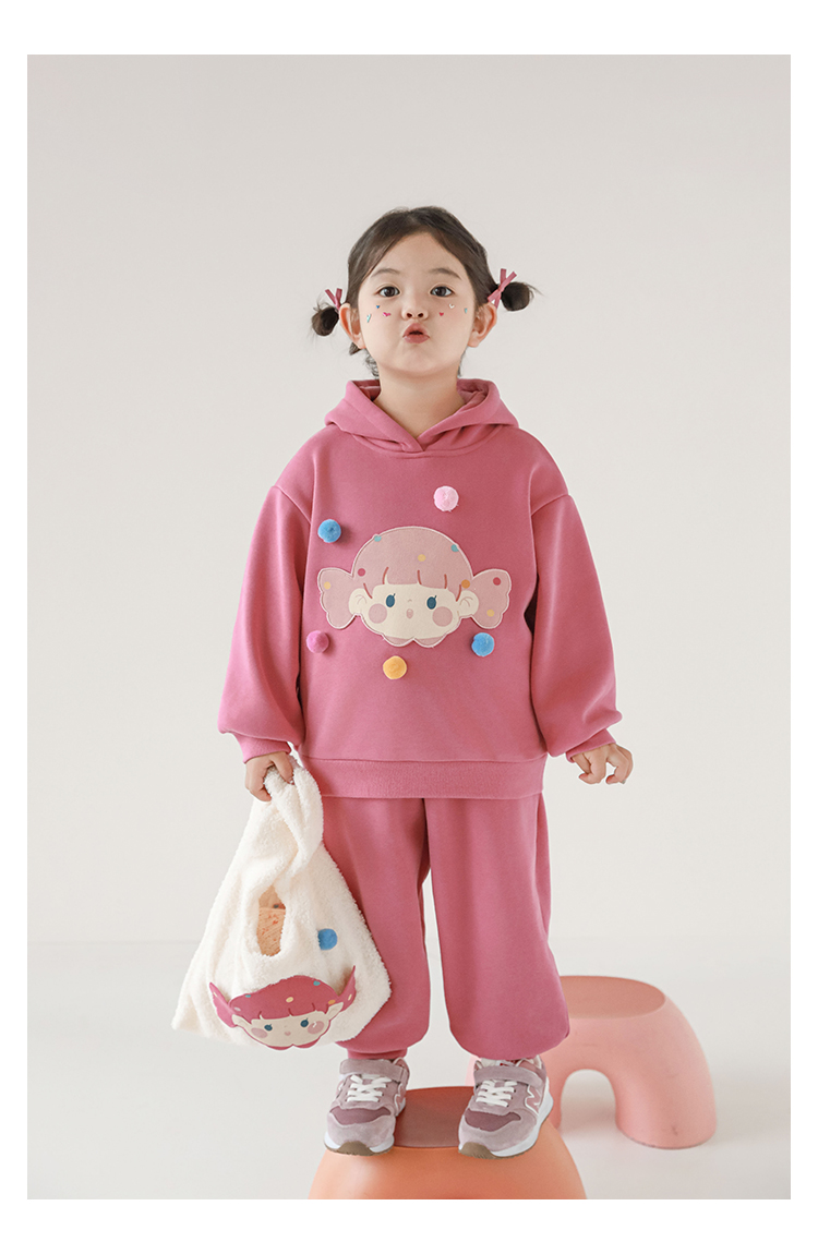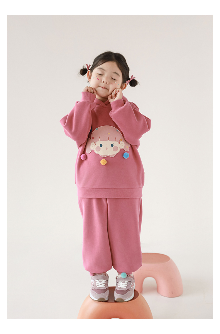 우리부 11일 여성 아동용 기모 두꺼운 만화 캐릭터 소녀 세트 겨울 귀여운 스웨트셔츠 루즈핏 스웨트팬츠 트렌디스토어 가기