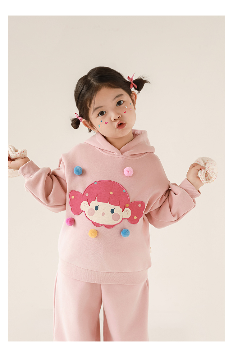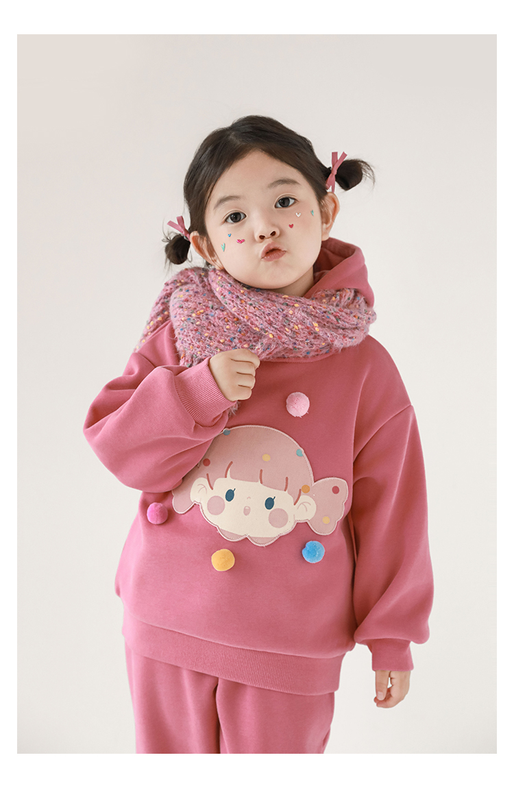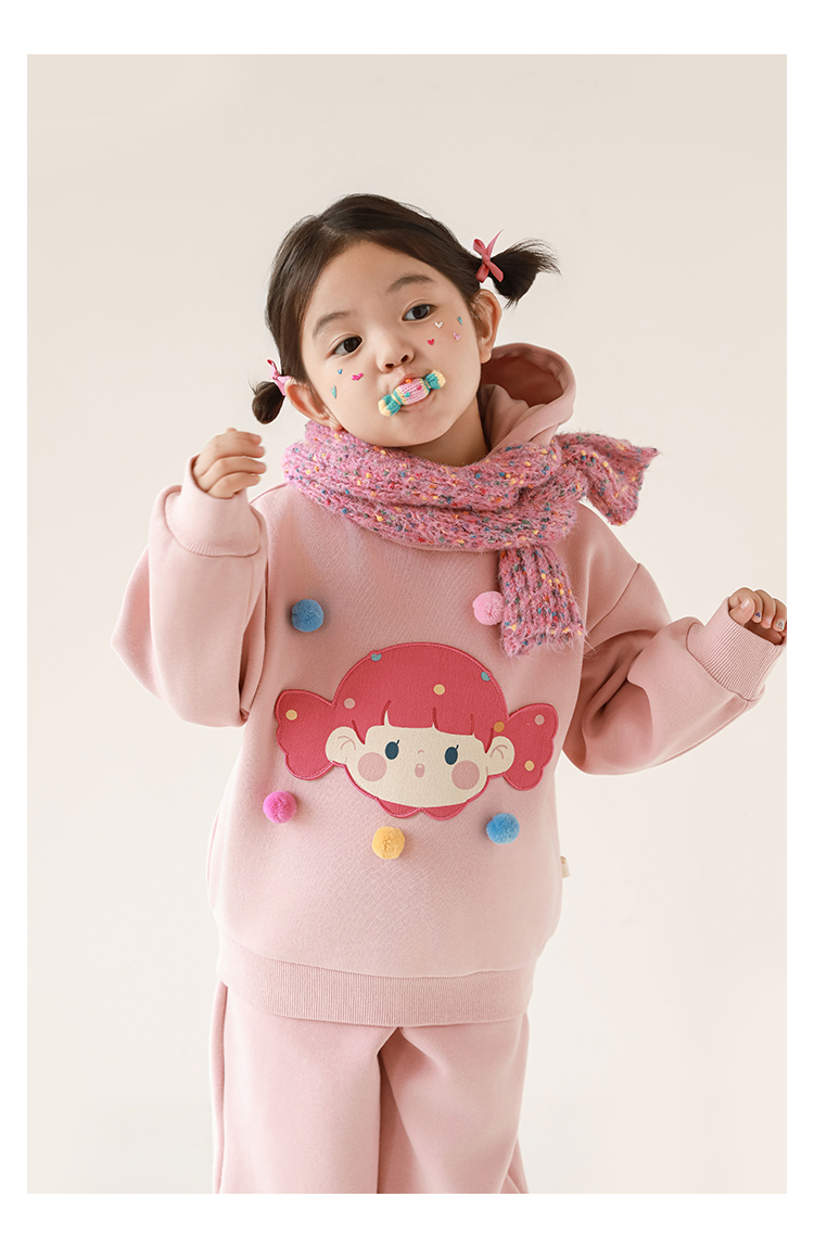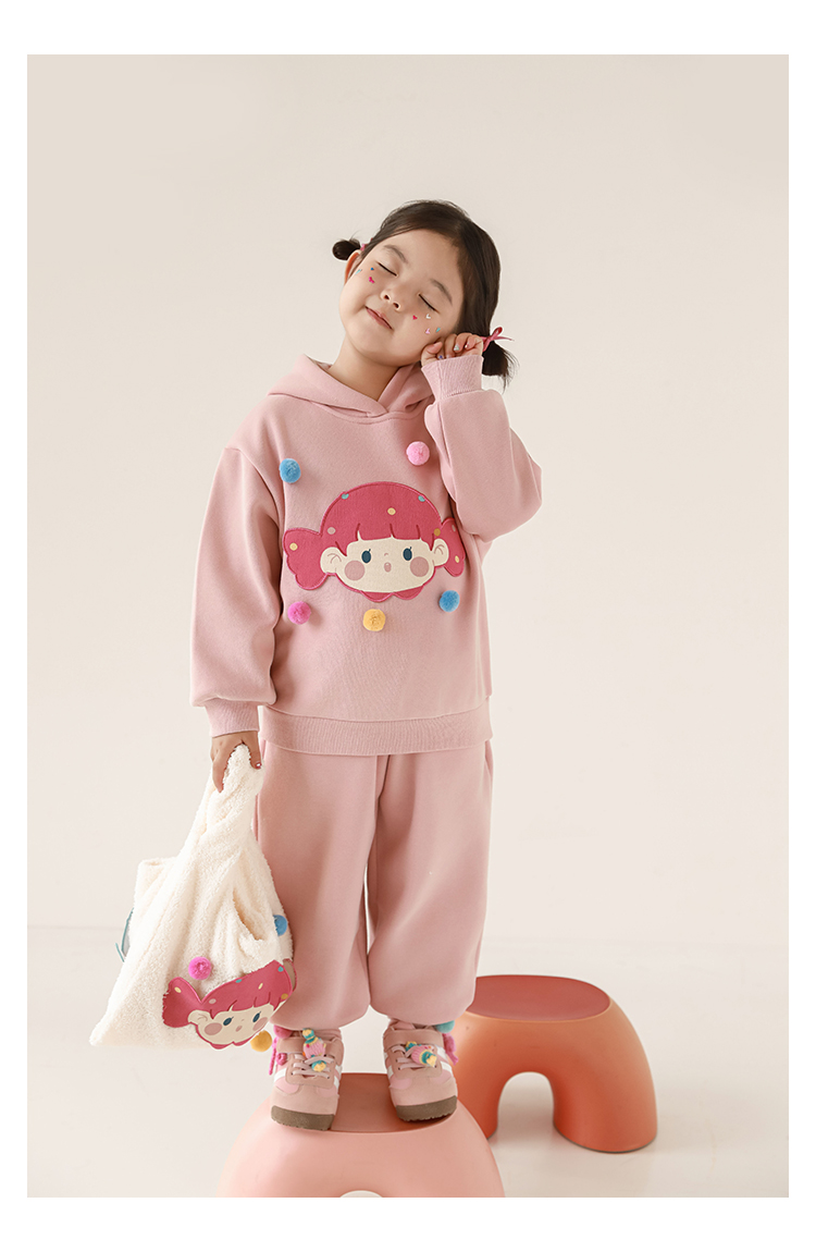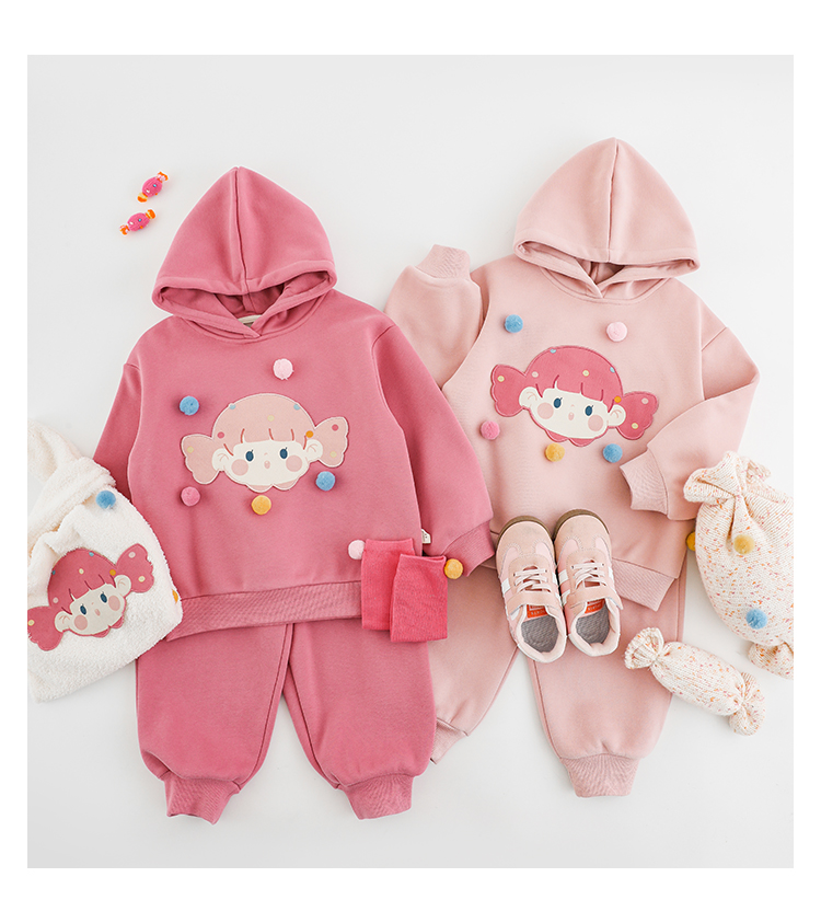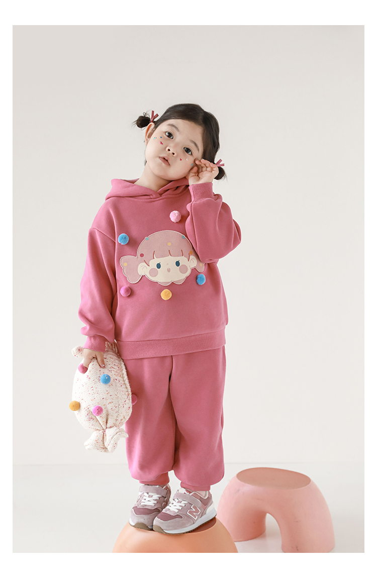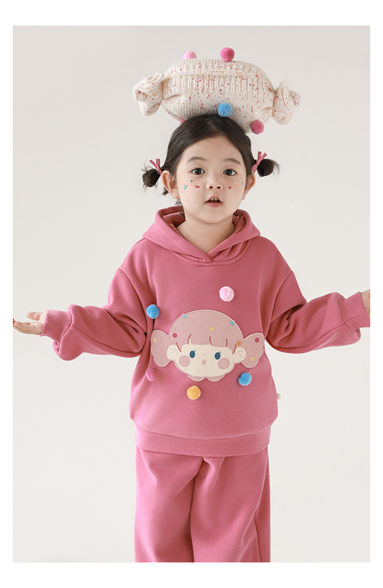 우리부 11일 여성 아동용 기모 두꺼운 만화 캐릭터 소녀 세트 겨울 귀여운 스웨트셔츠 루즈핏 스웨트팬츠 트렌디스토어 가기