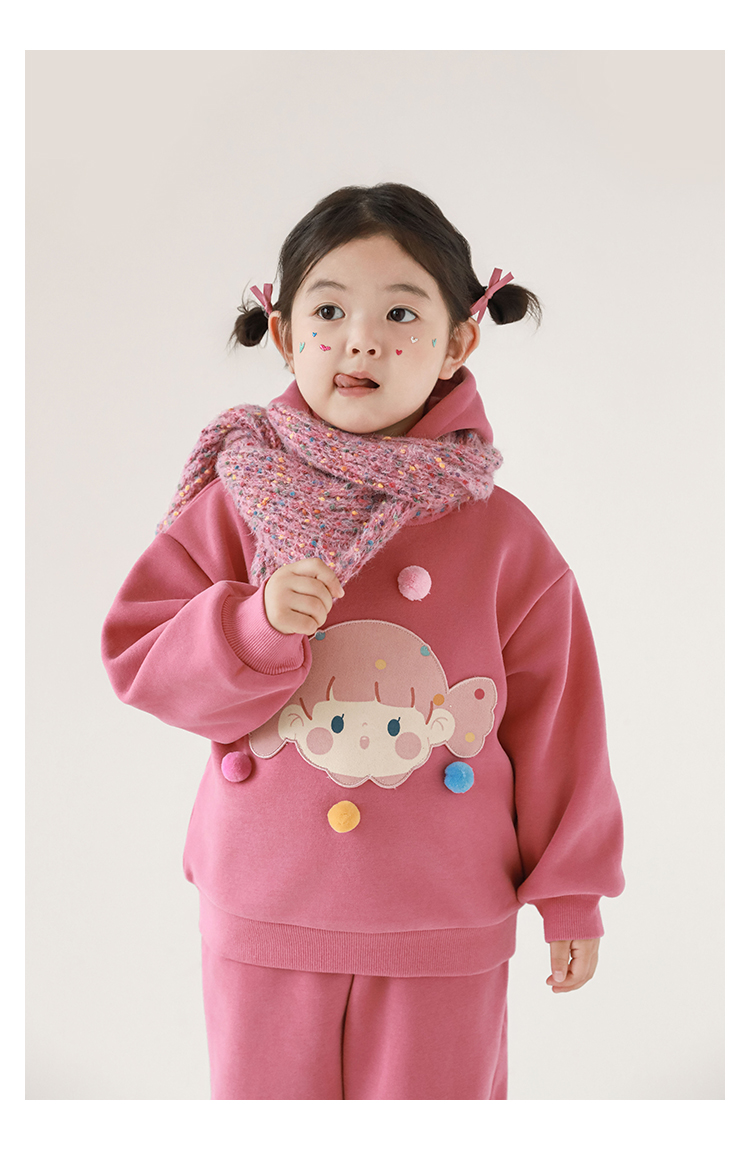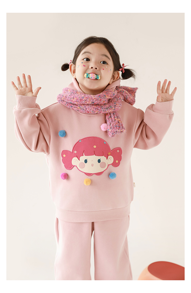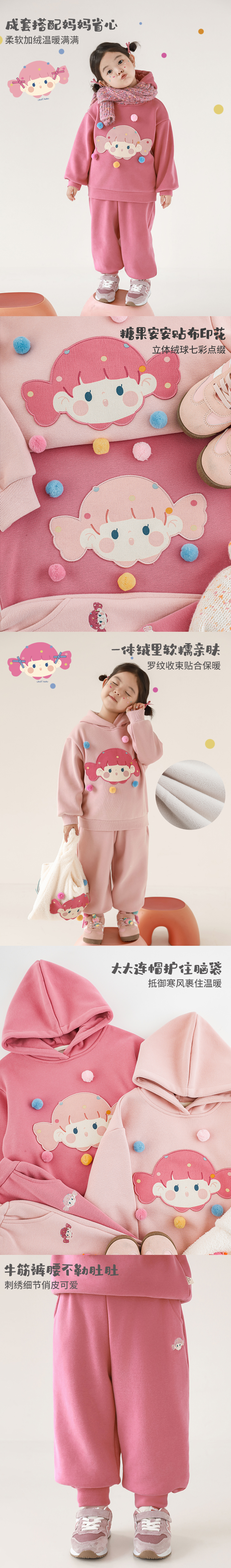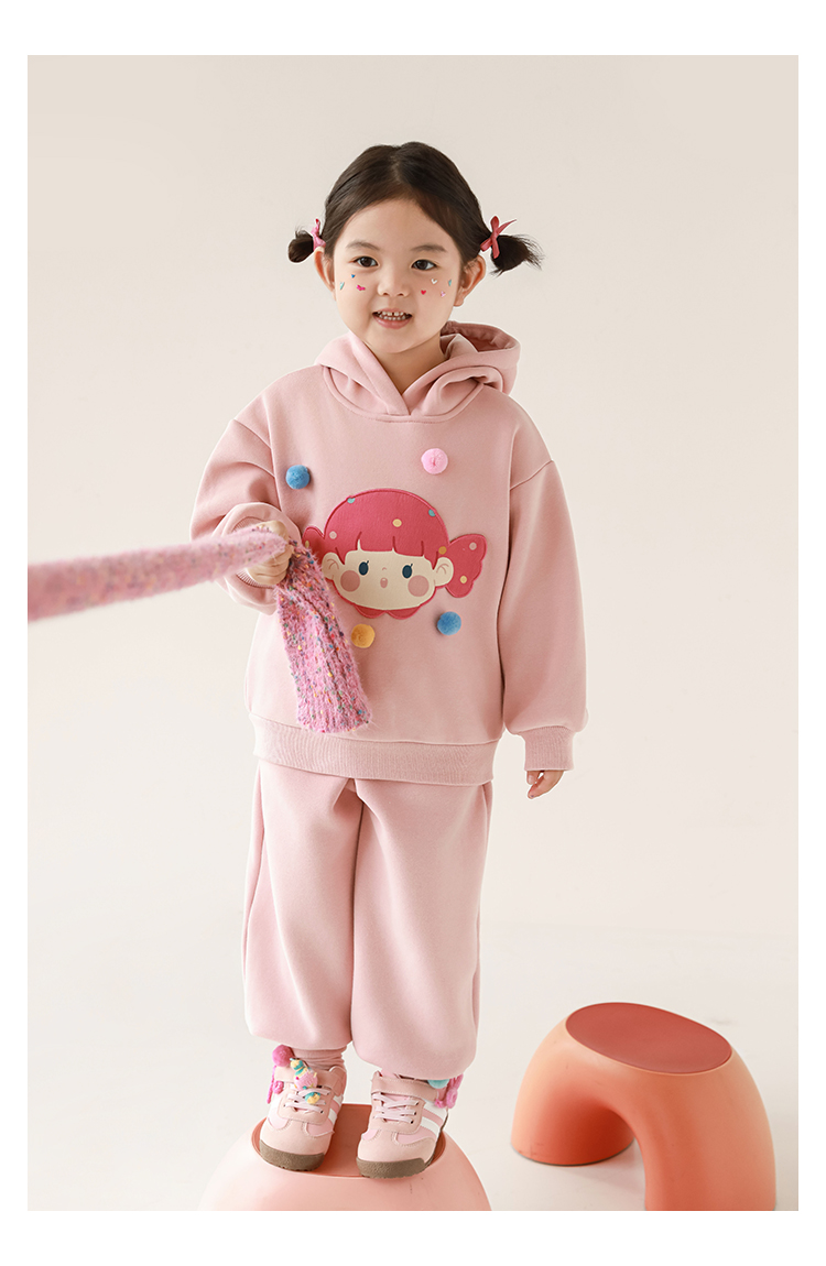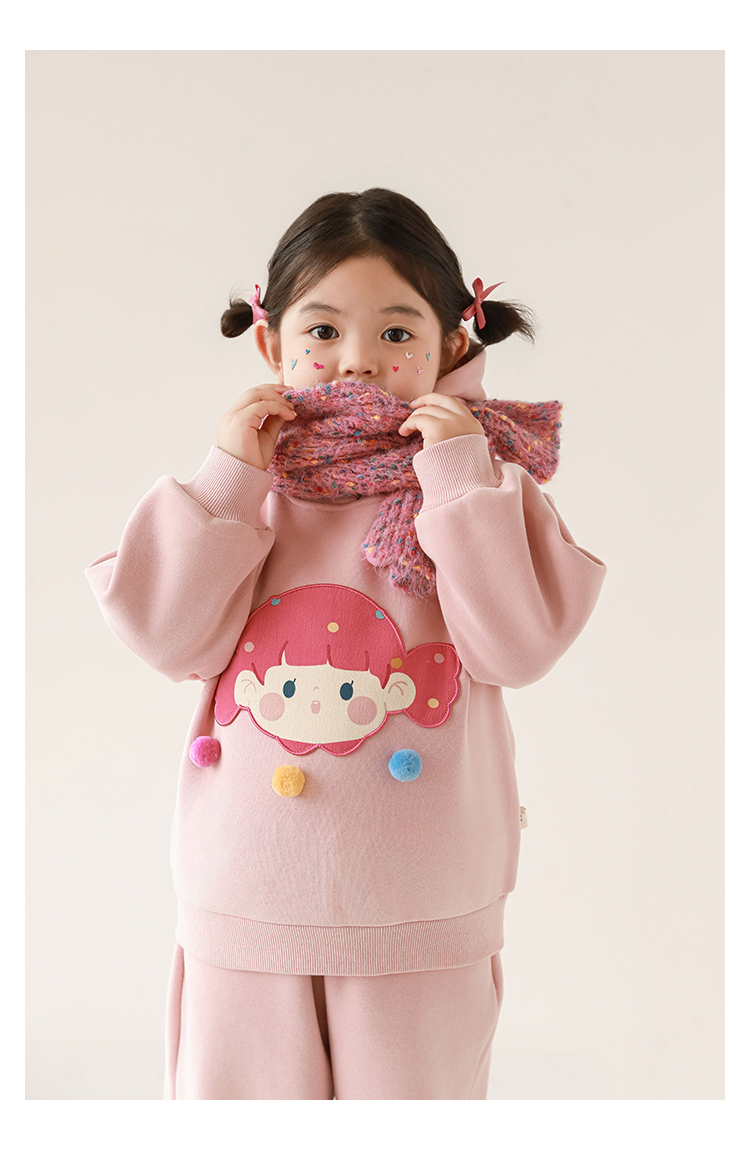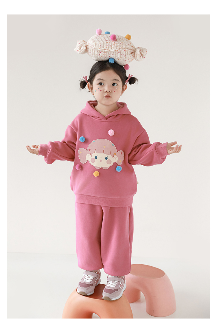 우리부 11일 여성 아동용 기모 두꺼운 만화 캐릭터 소녀 세트 겨울 귀여운 스웨트셔츠 루즈핏 스웨트팬츠 트렌디스토어 가기