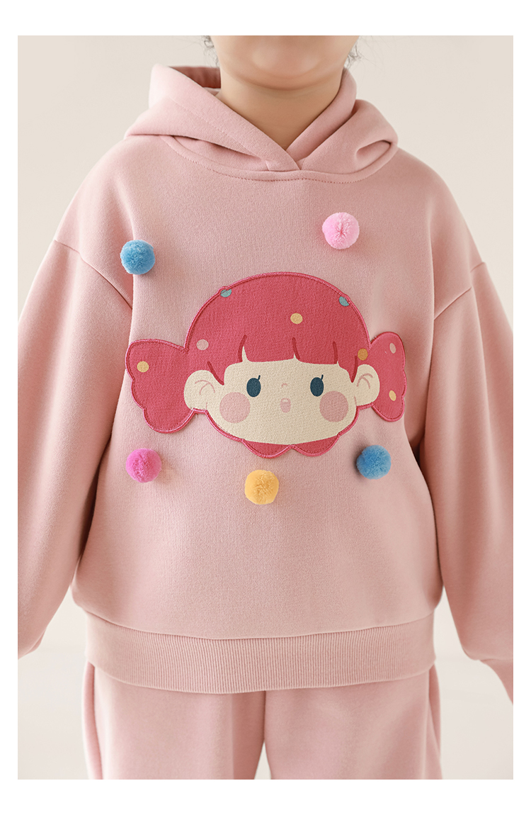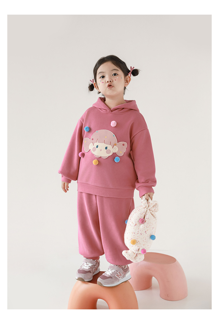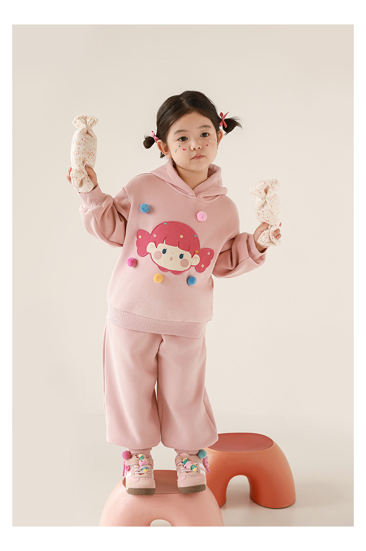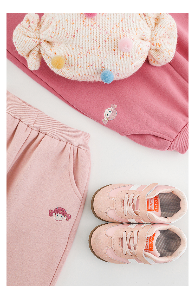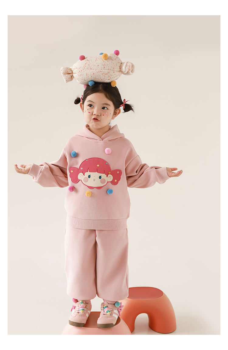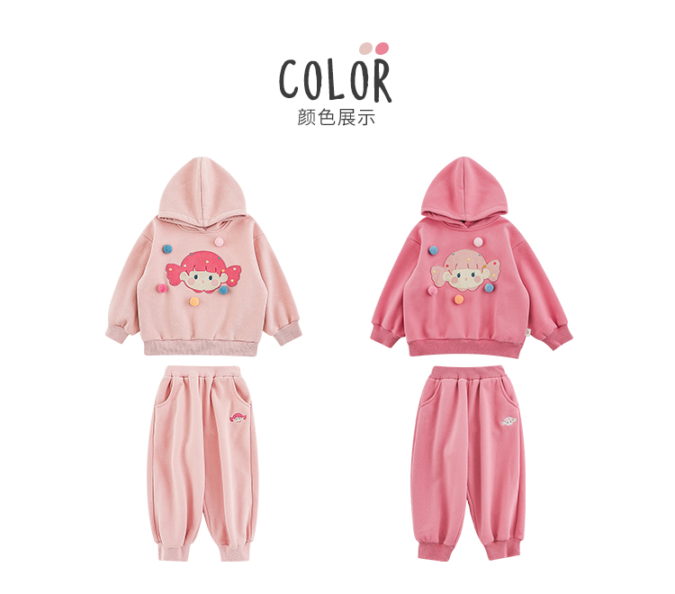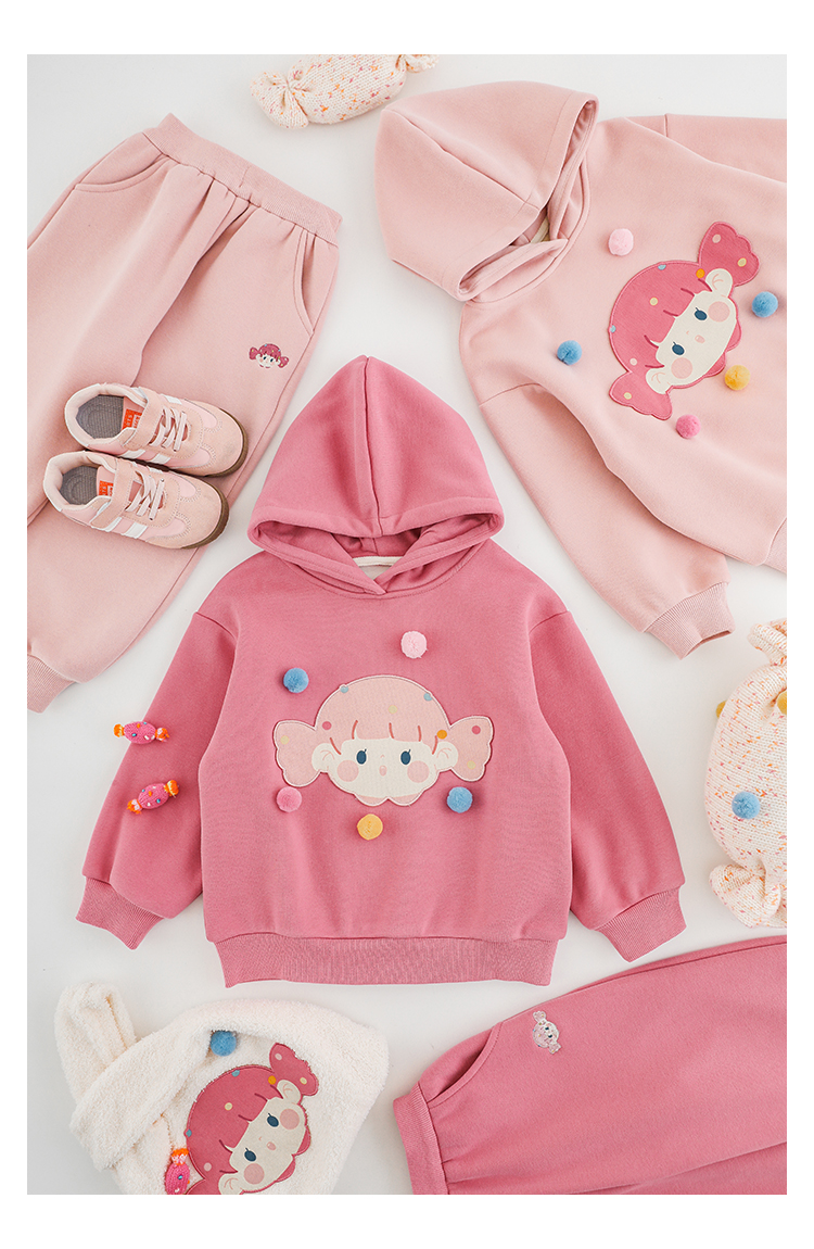 우리부 11일 여성 아동용 기모 두꺼운 만화 캐릭터 소녀 세트 겨울 귀여운 스웨트셔츠 루즈핏 스웨트팬츠 트렌디스토어 가기