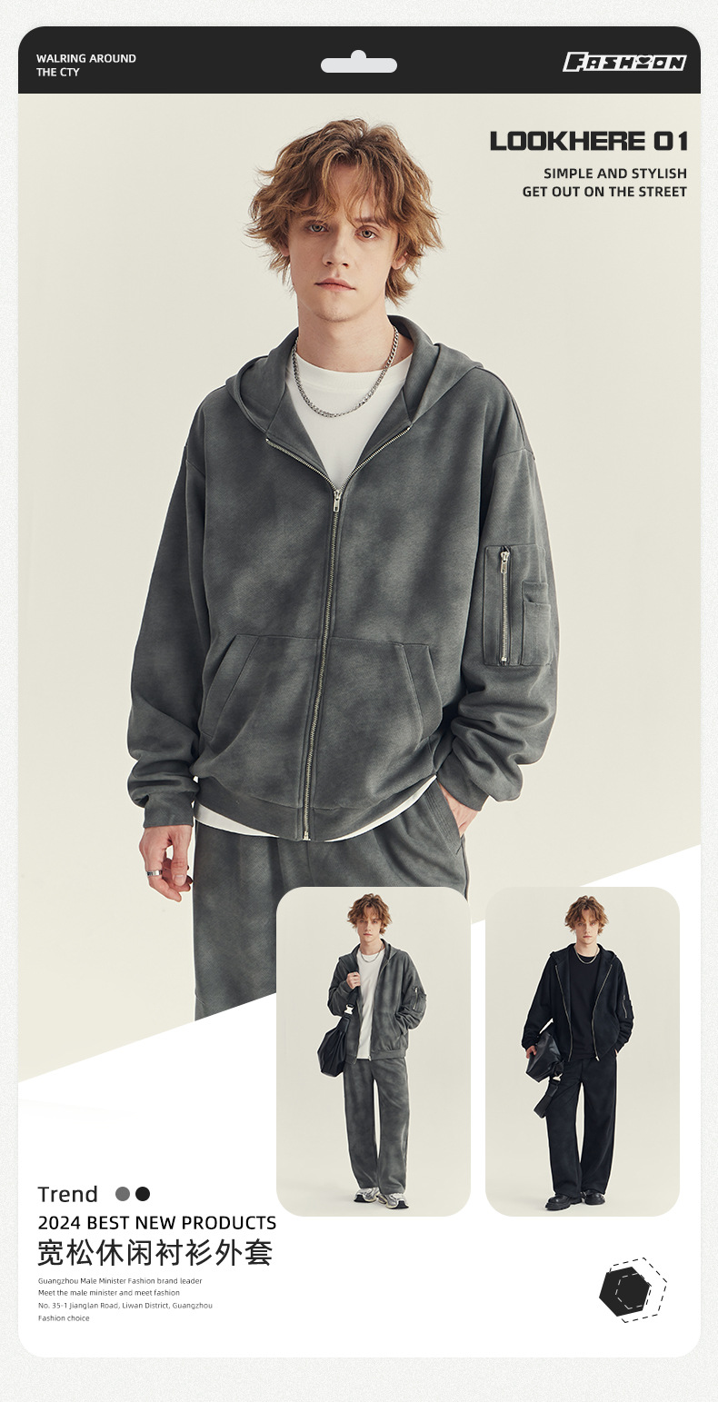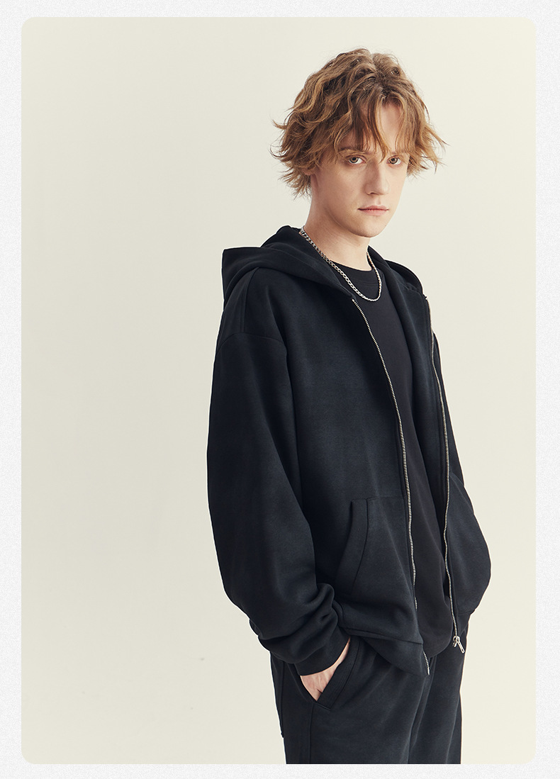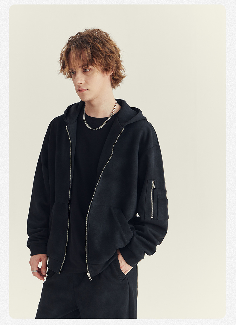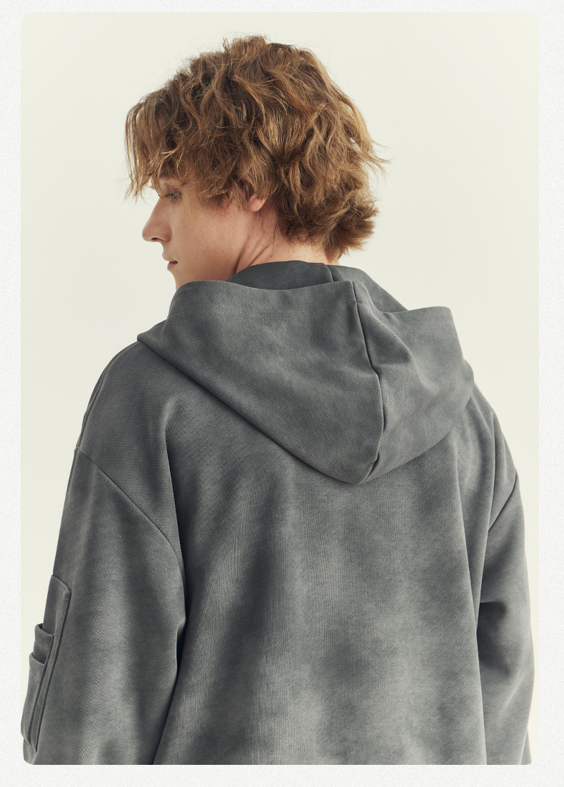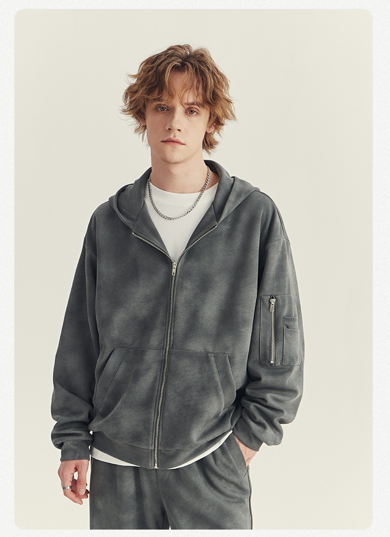APO 남성복 | 남성복 하이 엔드 가을과 겨울 레트로 올드 루즈 지퍼 헤비 후드 카디건 재킷