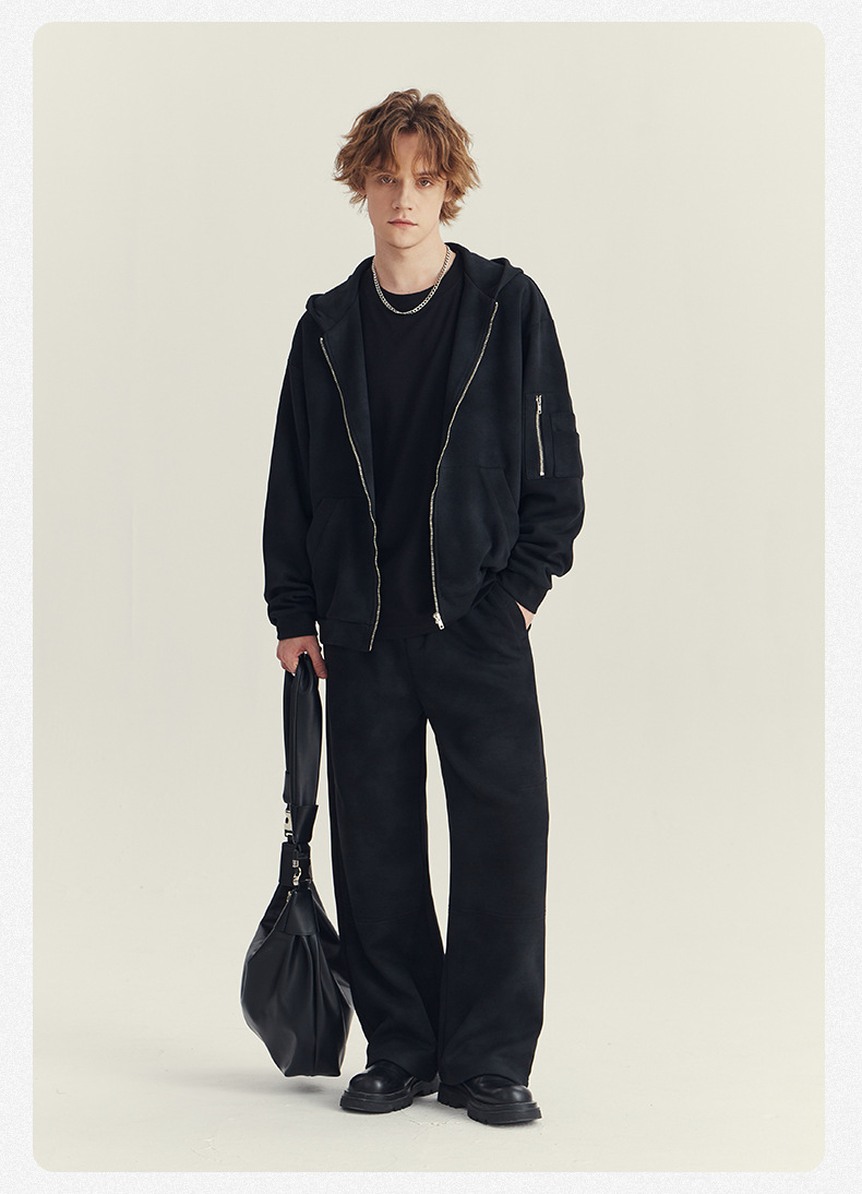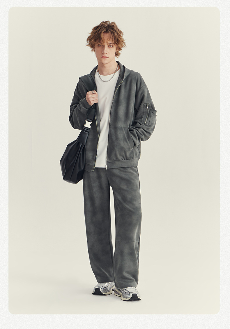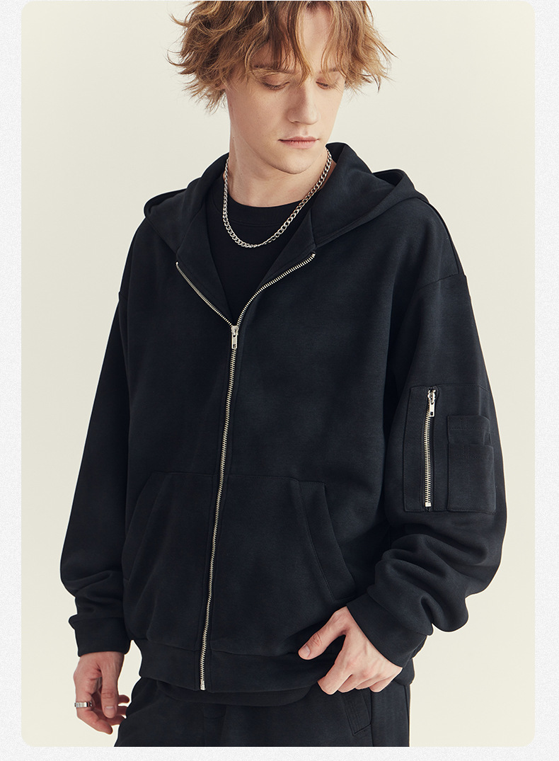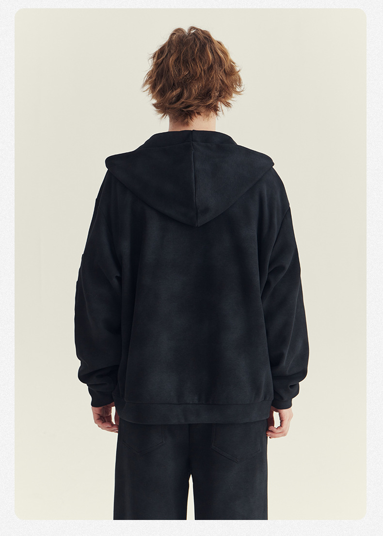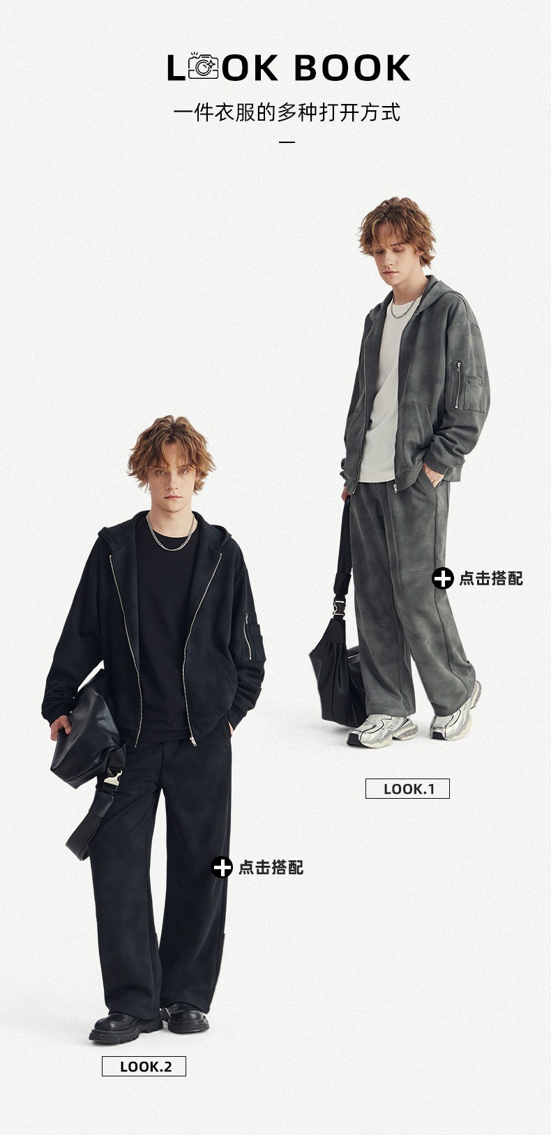APO 남성복 | 남성복 하이 엔드 가을과 겨울 레트로 올드 루즈 지퍼 헤비 후드 카디건 재킷