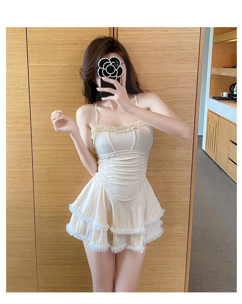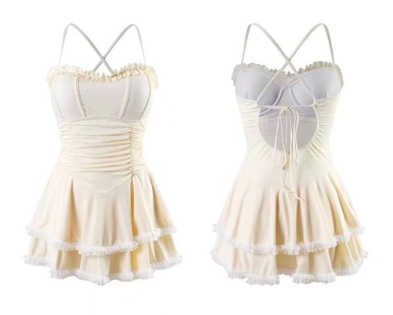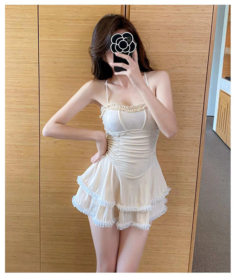 새로운 원피스 슬링 수영복 단색 소녀 순수한 바람 치마 보수적 인 슬림 작은 신선한 온천 수영복