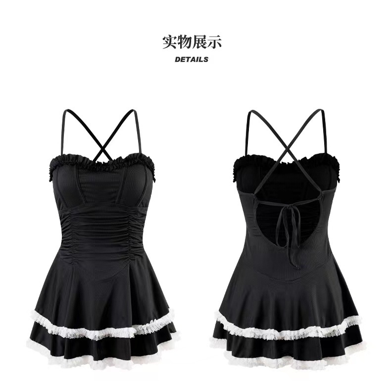 새로운 원피스 슬링 수영복 단색 소녀 순수한 바람 치마 보수적 인 슬림 작은 신선한 온천 수영복스토어 가기
