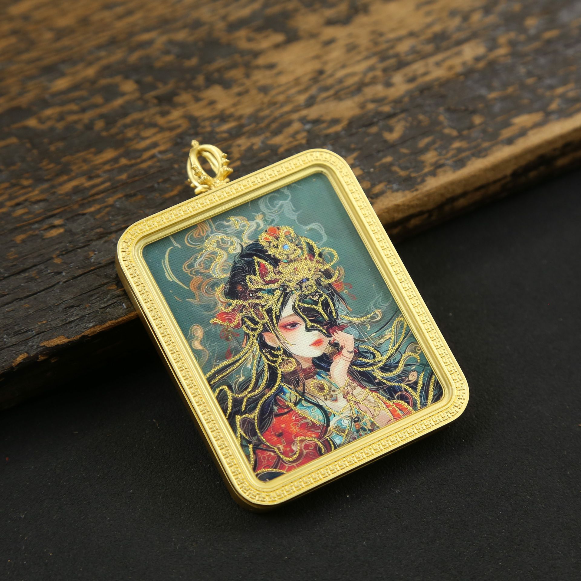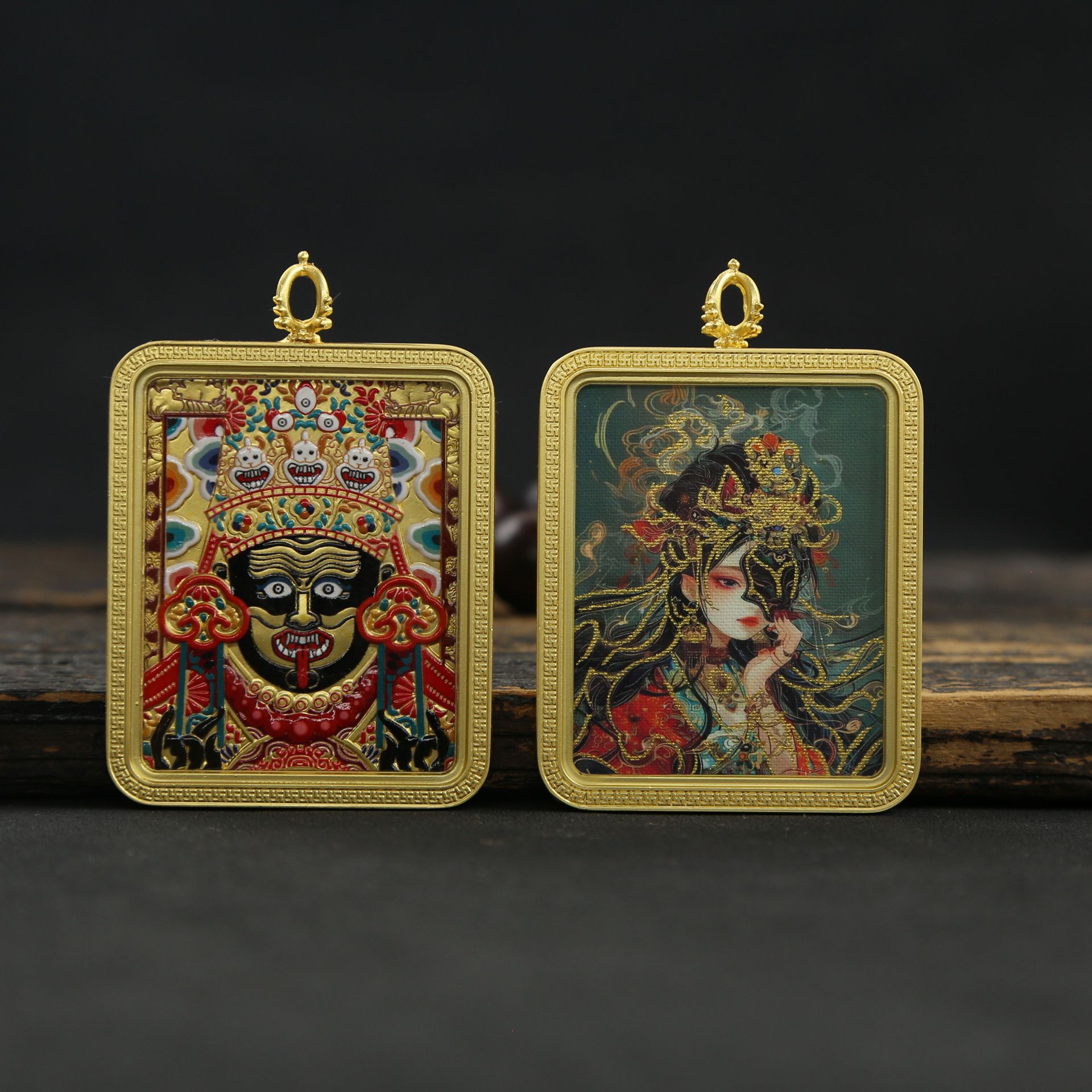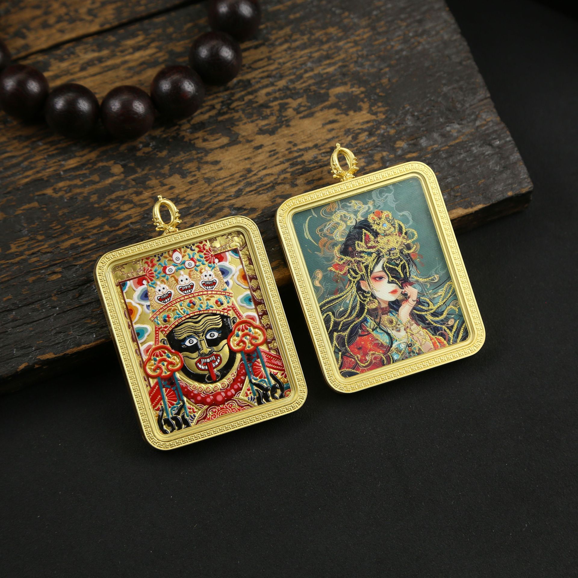Zakilam Xizang Thangka 초상화 손으로 그린 골드 과거와 현재 국가 스타일 3 차원 페인트 펜던트