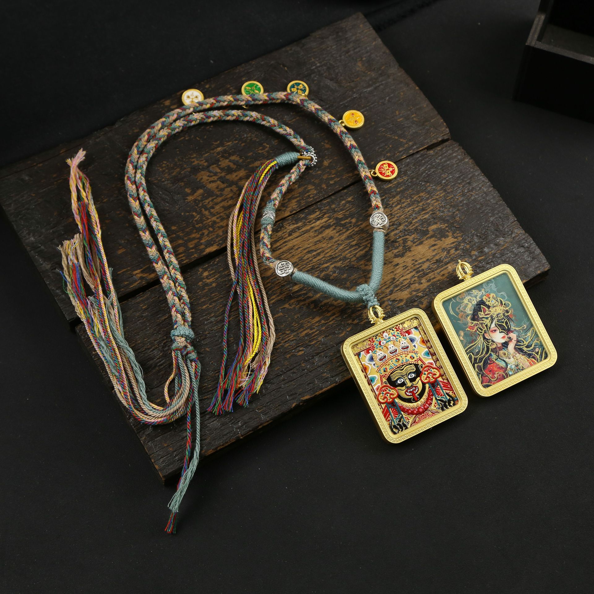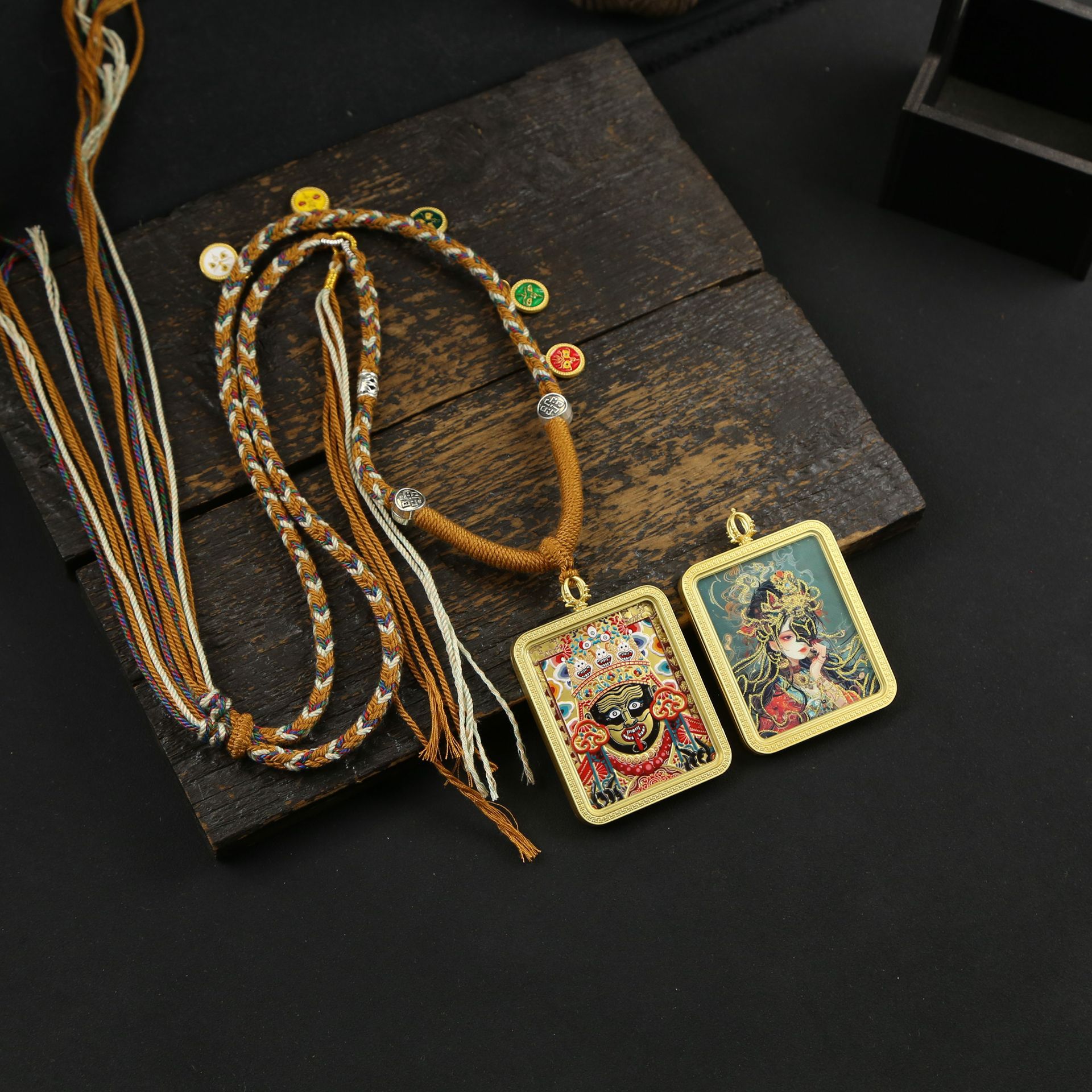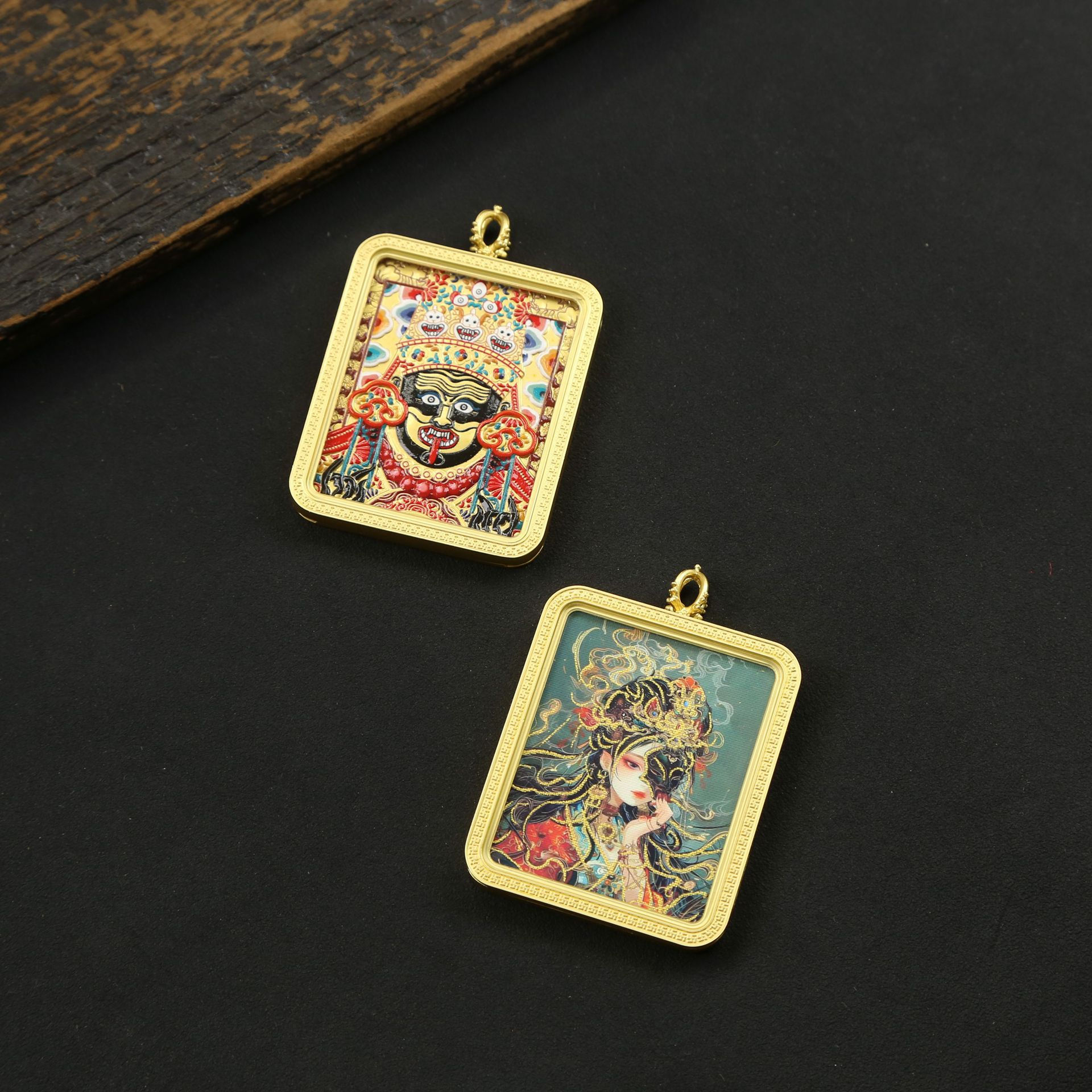Zakilam Xizang Thangka 초상화 손으로 그린 골드 과거와 현재 국가 스타일 3 차원 페인트 펜던트