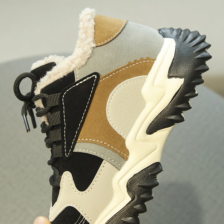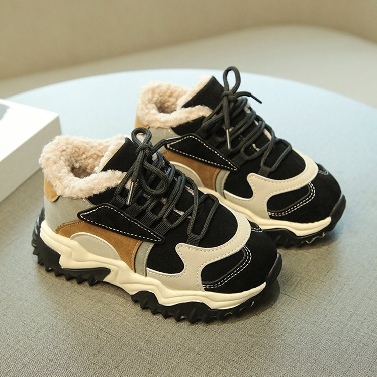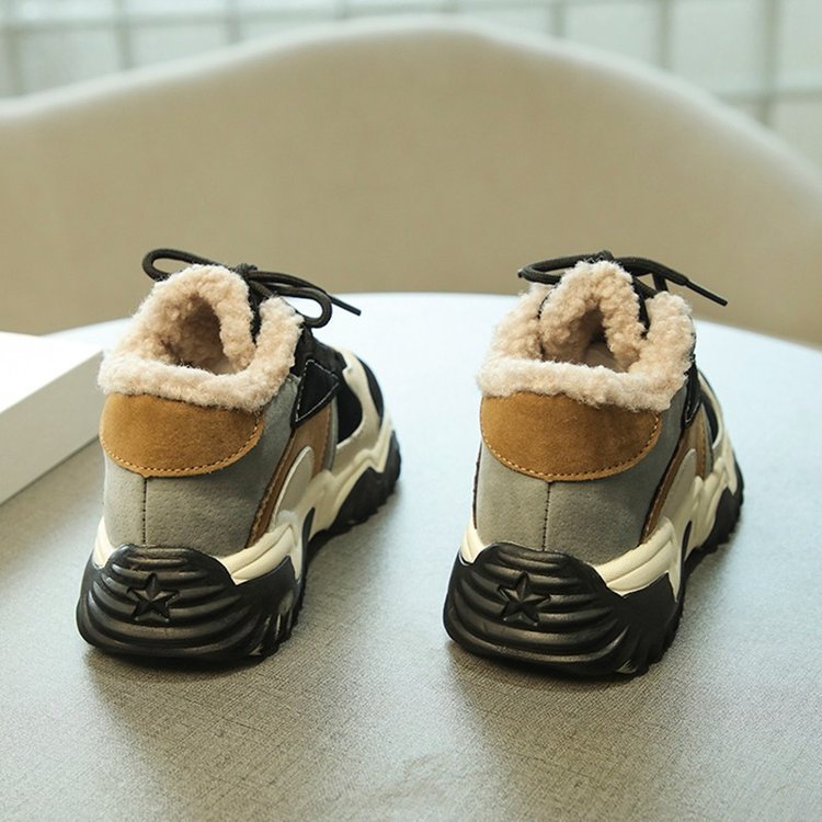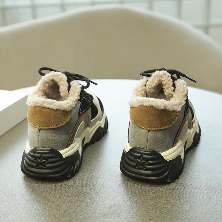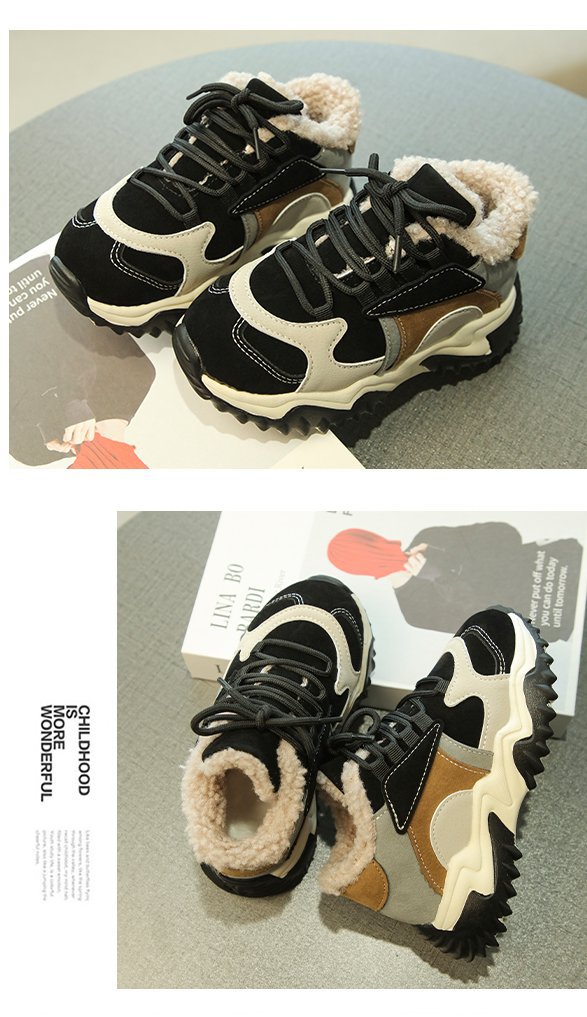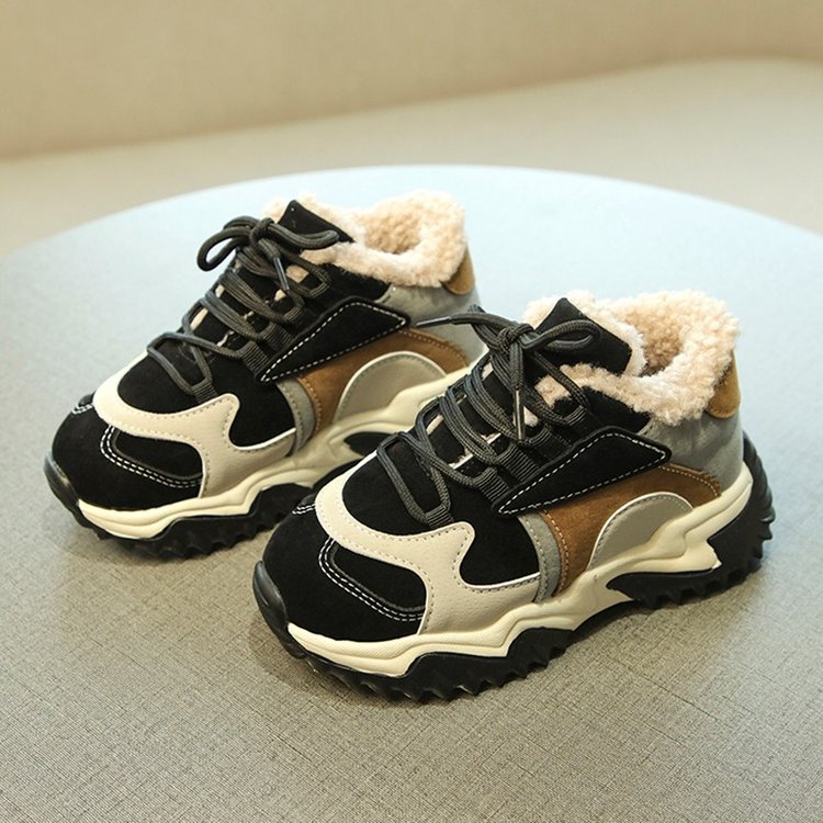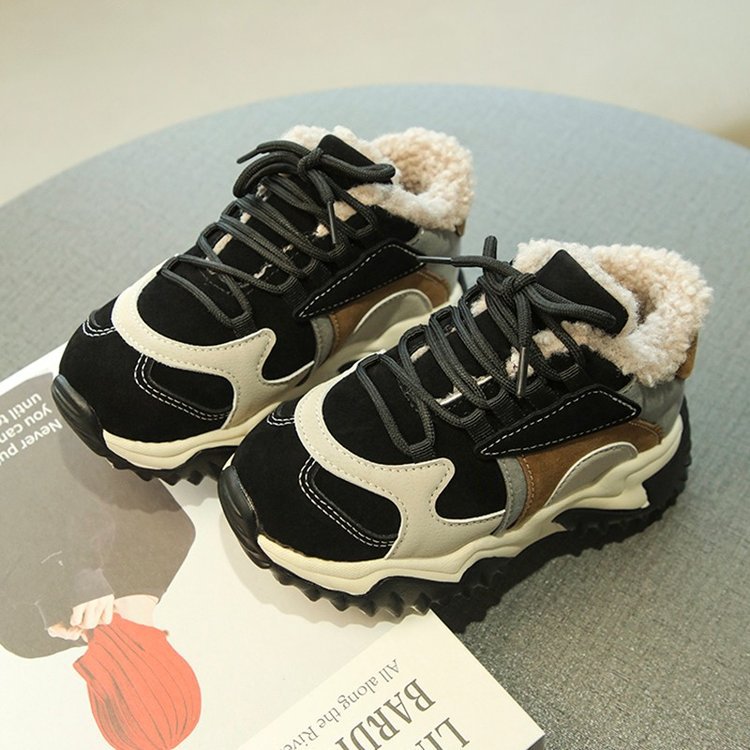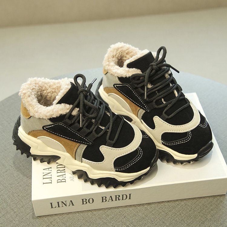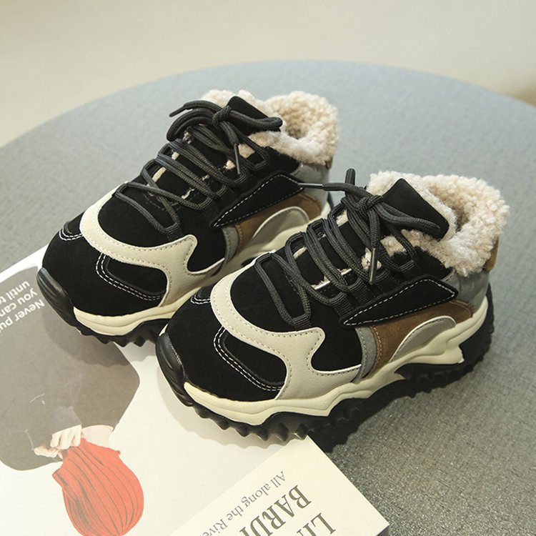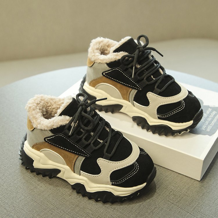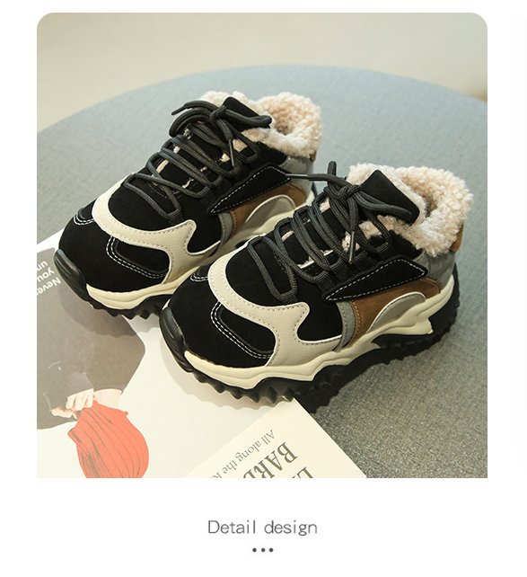소녀 2024 겨울 새 가을 및 겨울 코튼 슈즈 기모 신발 중 및 빅 어린이 운동화 토레 신발 두 코튼 슈즈