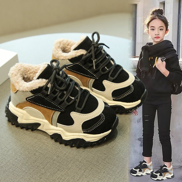 소녀 2024 겨울 새 가을 및 겨울 코튼 슈즈 기모 신발 중 및 빅 어린이 운동화 토레 신발 두 코튼 슈즈스토어 가기